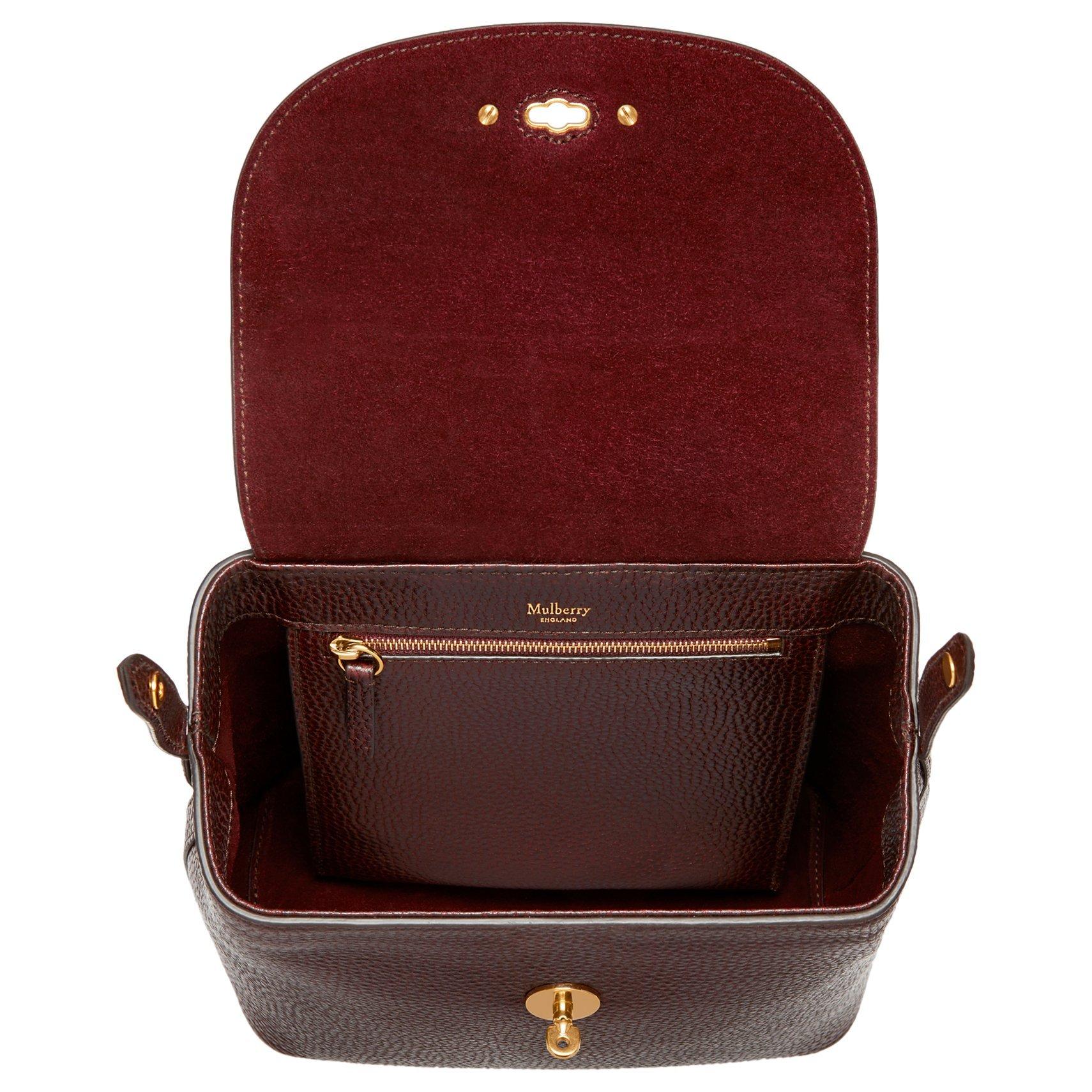 Fastening with a signature metal Postman's Lock, the front flap opens to reveal a beautiful interior with a zipped pocket. The size of the main compartment can be adjusted using the popper tabs on the sides.