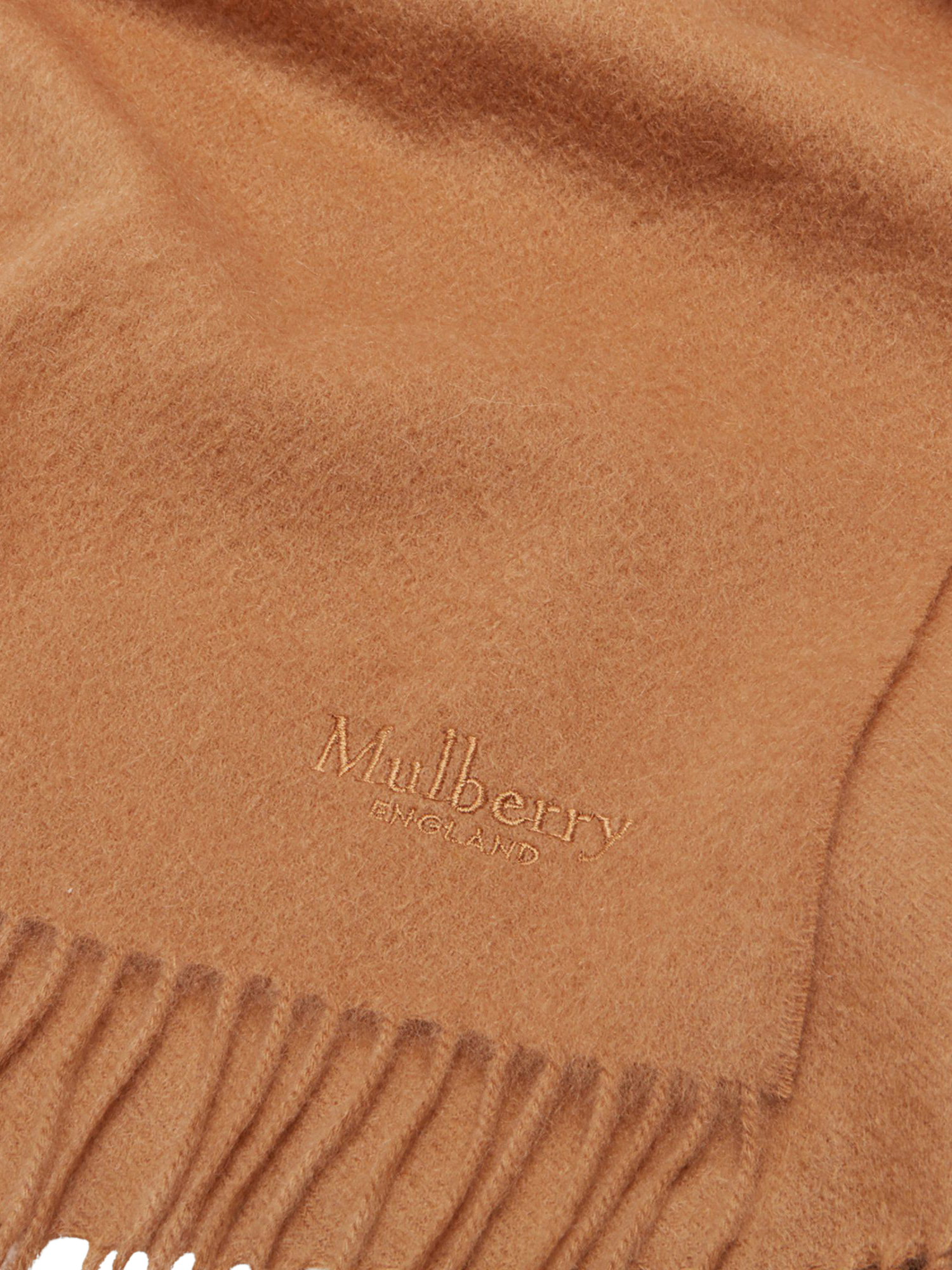 Wrap up in style with this timeless classic from Mulberry. 100% cashmere and luxuriously soft, this is the perfect gift for men or women. Designed with fringing at both ends.