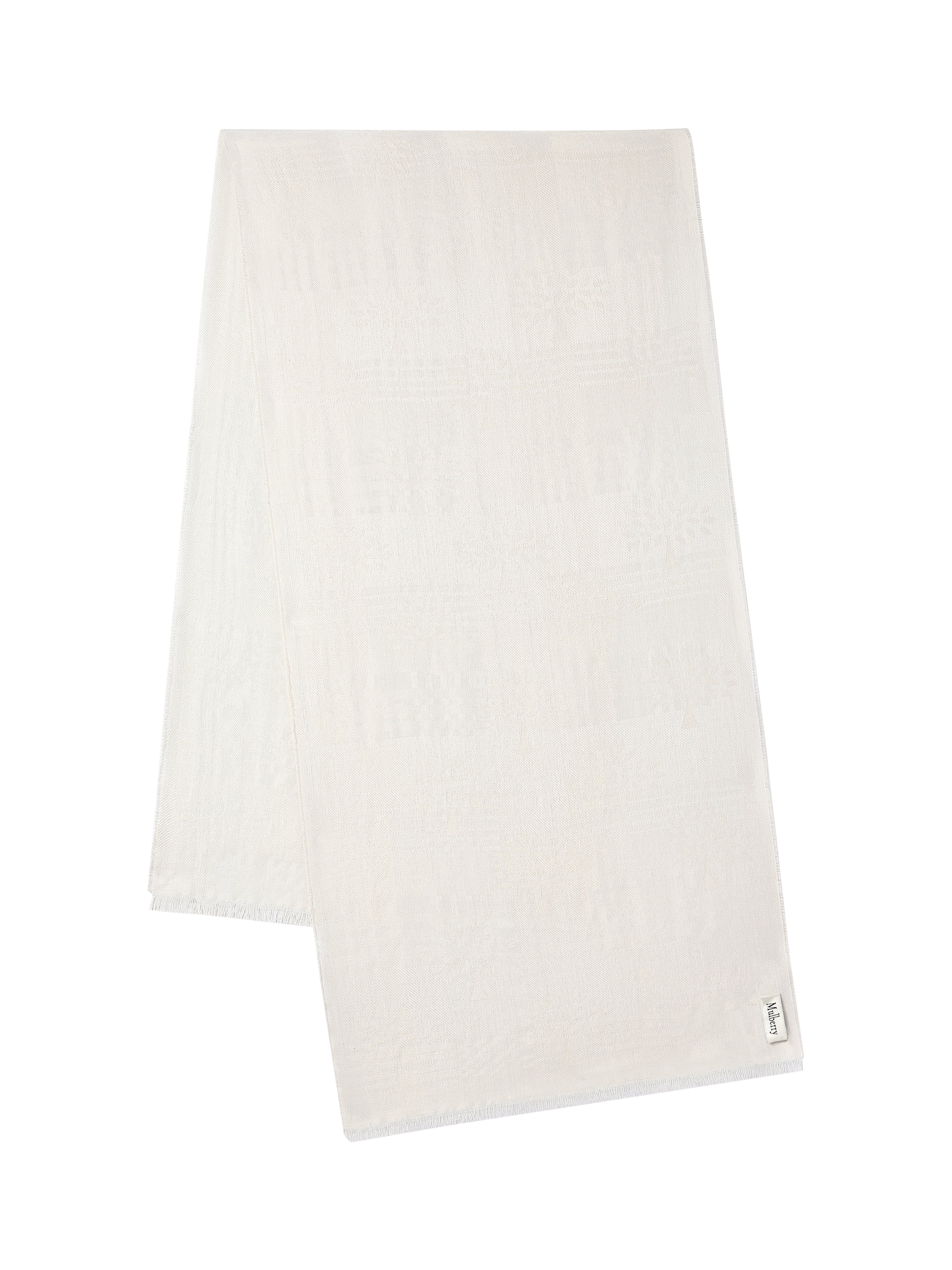 MulberryCheck & Tree Rectangle Silk Blend Scarf, Cream