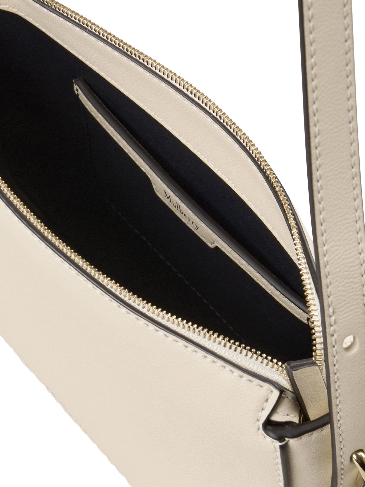 All the minimal, sleek signifiers of the family, but in pouch form: the Clovelly Pouch features a zip closure, interior slip pocket and elegant Mulberry branding. It's big enough to fit all the everyday essentials. Use the adjustable and detachable strap to wear it across the body. Finished with gold hardware and a foil-embossed Mulberry signature.