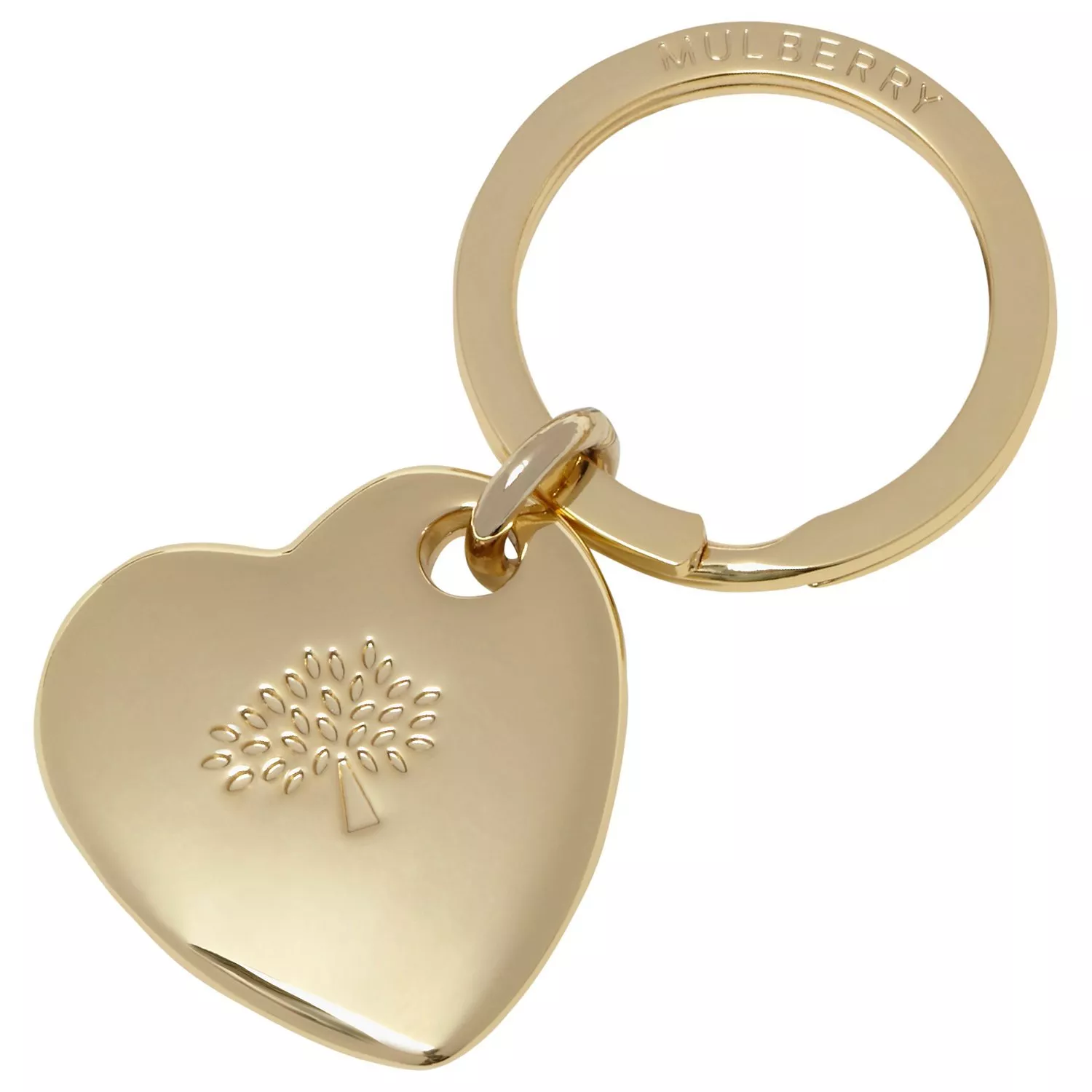 Crafted from polished metal, this gleaming, solid, heart-shaped keyring from Mulberry is engraved with their signature mulberry tree logo, and features the Mulberry brand name on the split ring.