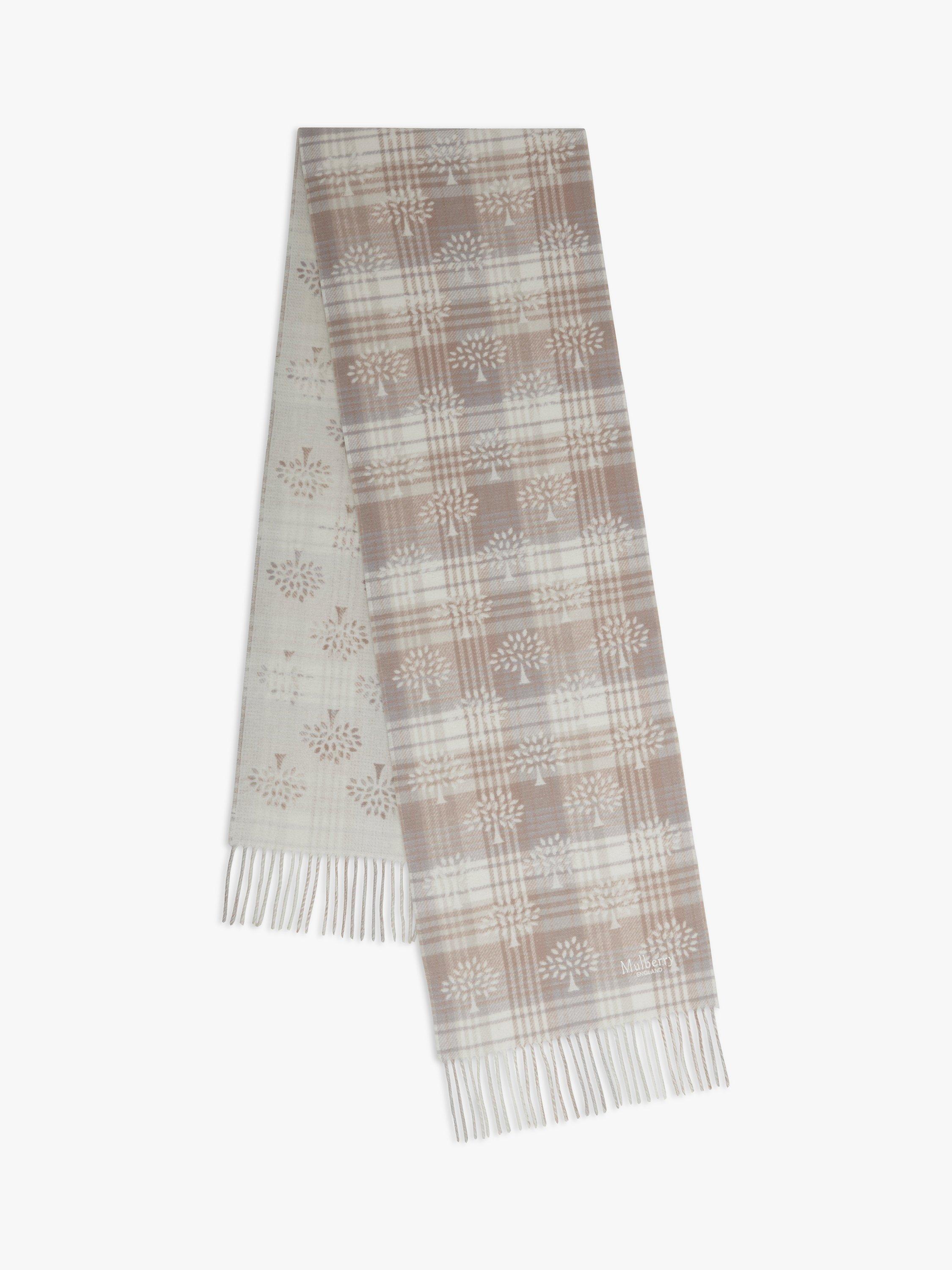 MulberryHeritage Check & Tree Merino Wool Scarf, Maple