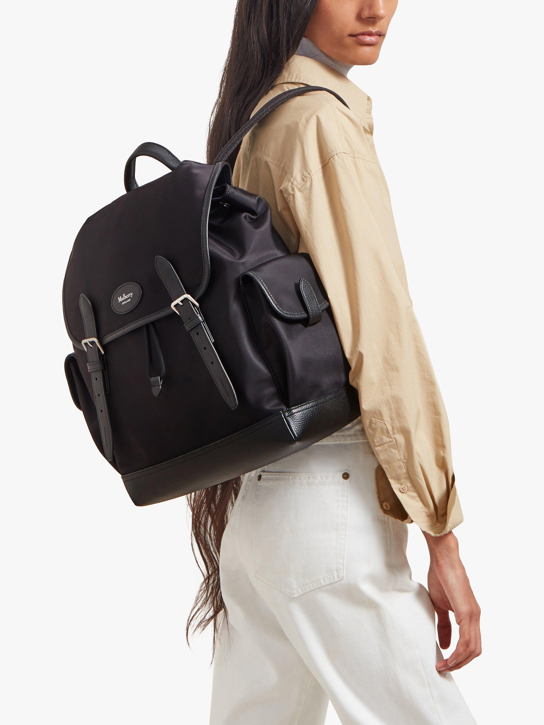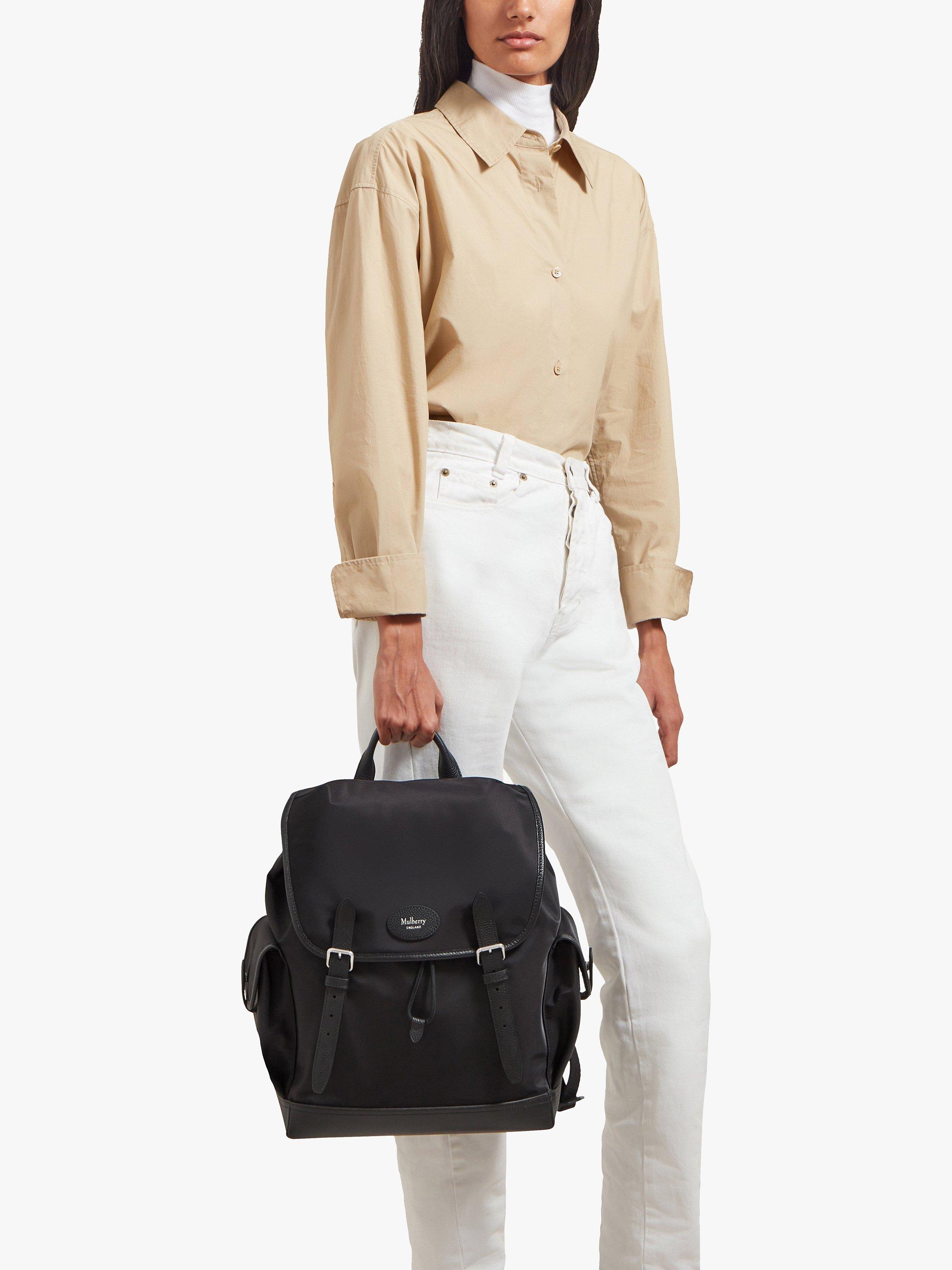 Enjoy hands-free ease with this practical backpack from Mulberry's Heritage collection. The Heritage collection was designed in tribute to the early bags of Mulberry, which were inspired by English country pursuits. In durable nylon, this style features practical pockets, belt and buckle strap detailing and a signature logo plaque. Plus, the straps can be adjusted for a personal fit.