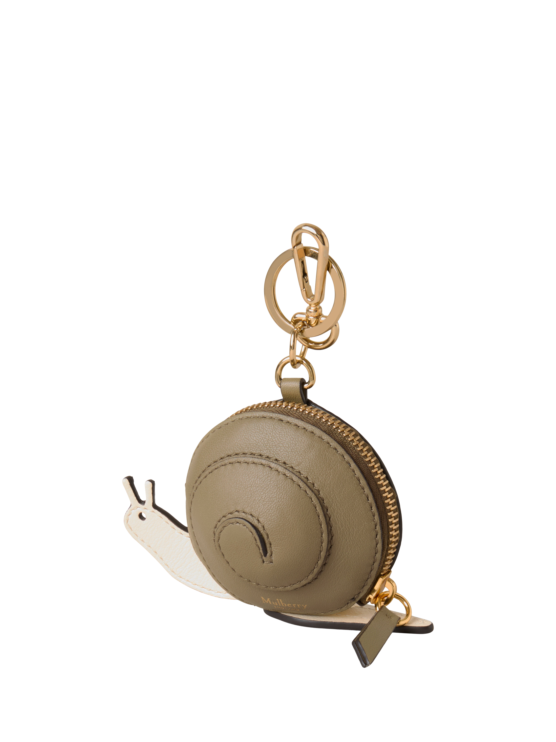 This small snail-shaped cosmetic pouch from Mulberry adds a fun, gastropodic touch to your keys. Clip and split ring attachments.
