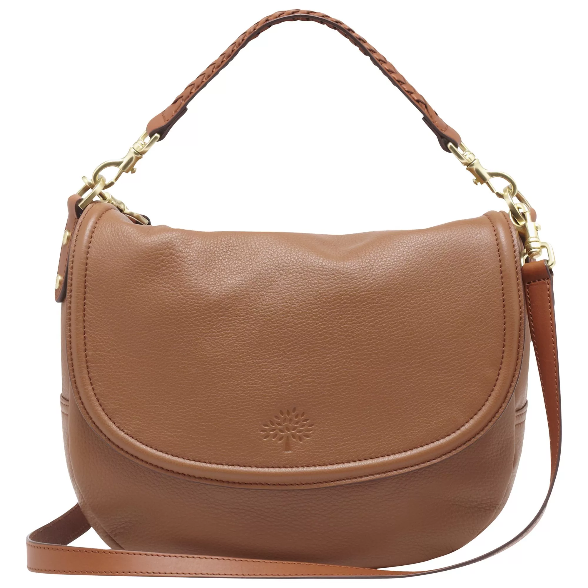 Made from a soft and lightweight Spongy Pebbled leather with a plaited shoulder strap, the iconic Mulberry tree logo is subtly embossed on the front flap. There is a hidden magnetic closure that conceals one main compartment alongside an internal zip and internal slip pocket. Completed with a stylish internal Mulberry plaque.