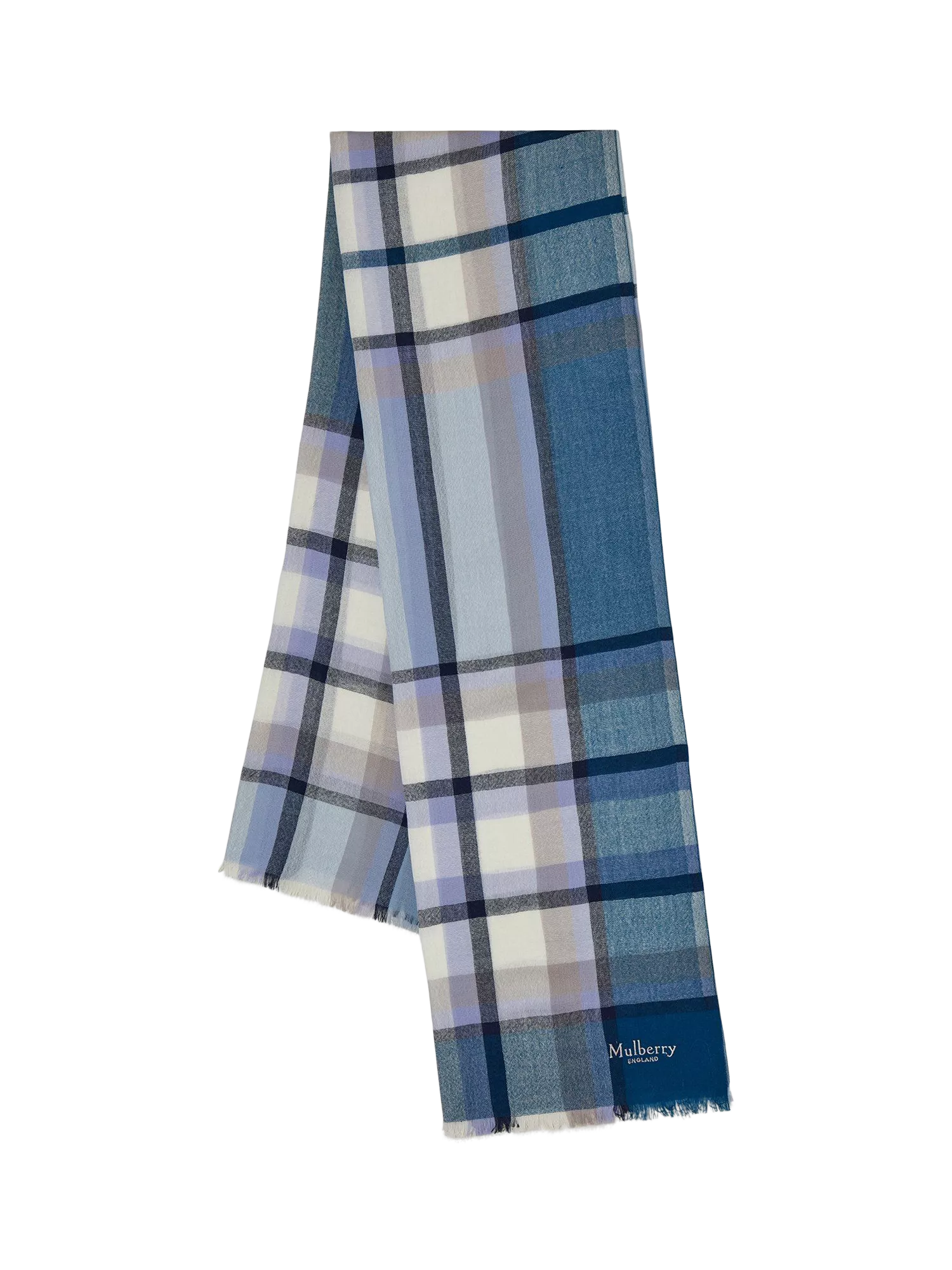 MulberryMega Check Lambswool Rich Scarf, Poplin Blue/Ecru