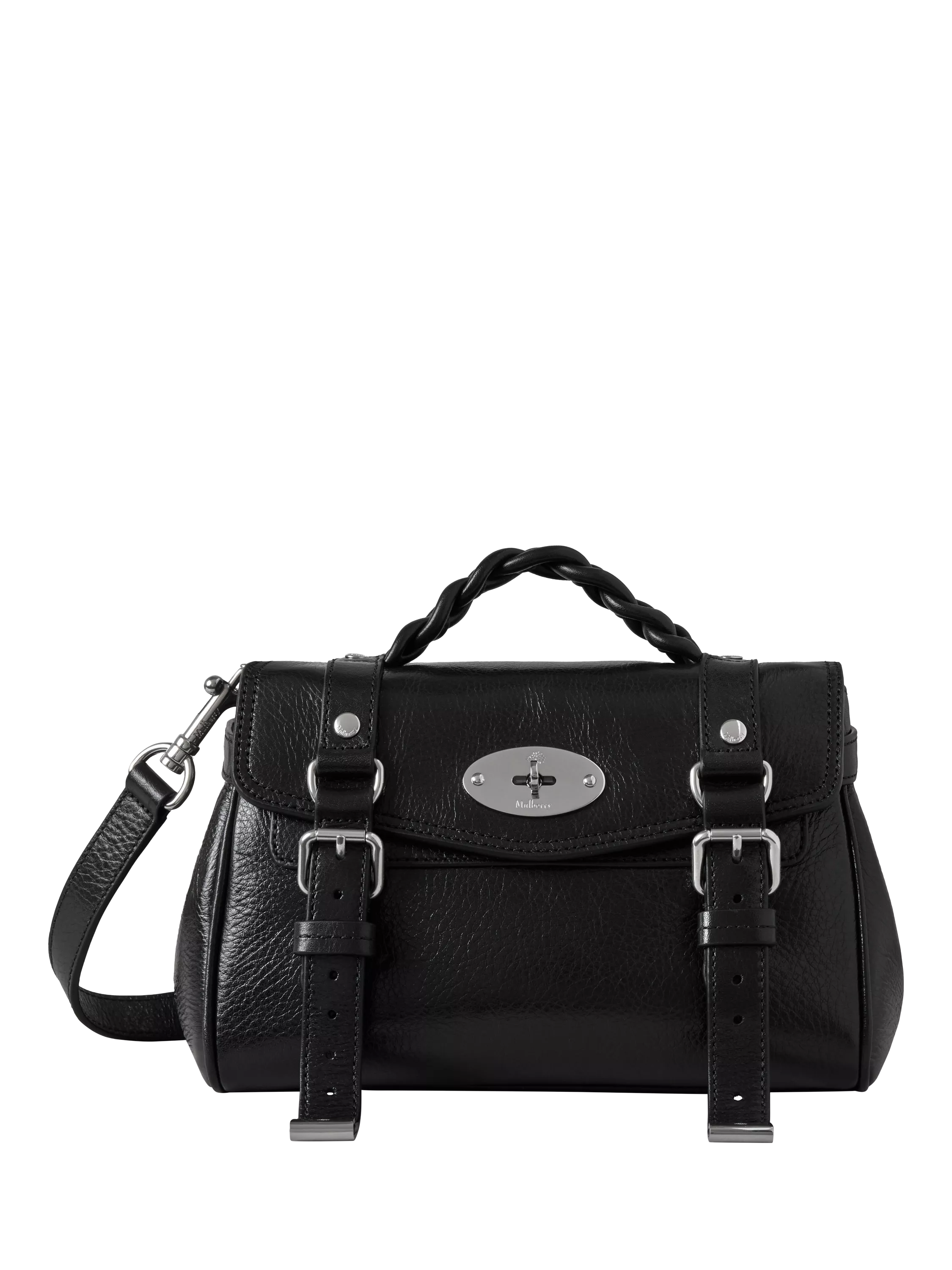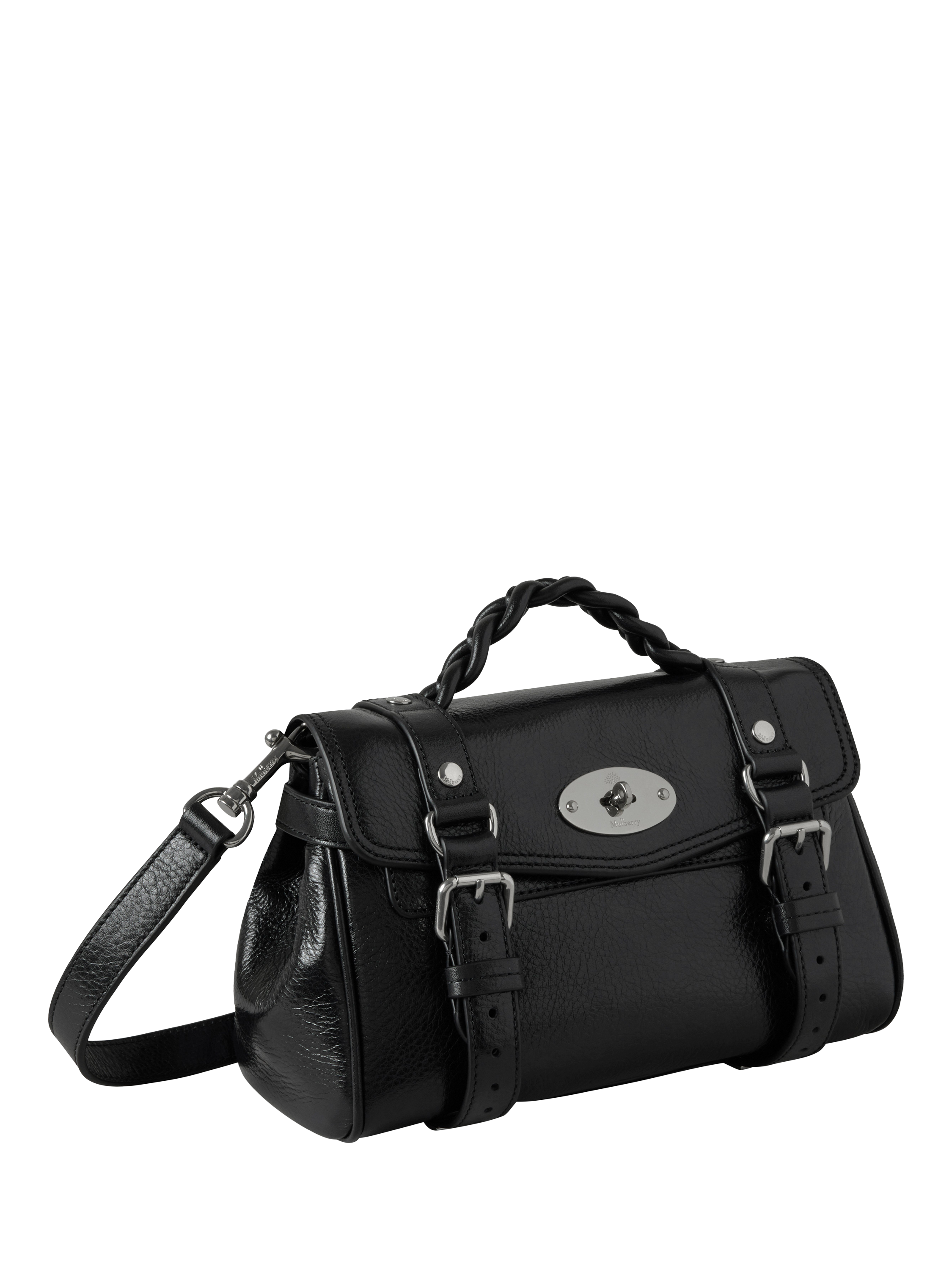 The Mini Alexa effortlessly combines elements from two iconic Mulberry styles: the Bayswater bag and the Elkington briefcase. The result is a miniature version of an understatedly cool satchel, complete with the signature Mulberry Postman’s Lock and belt buckle and strap hardware. Carry by the plaited leather top handle or wear with the adjustable crossbody strap.