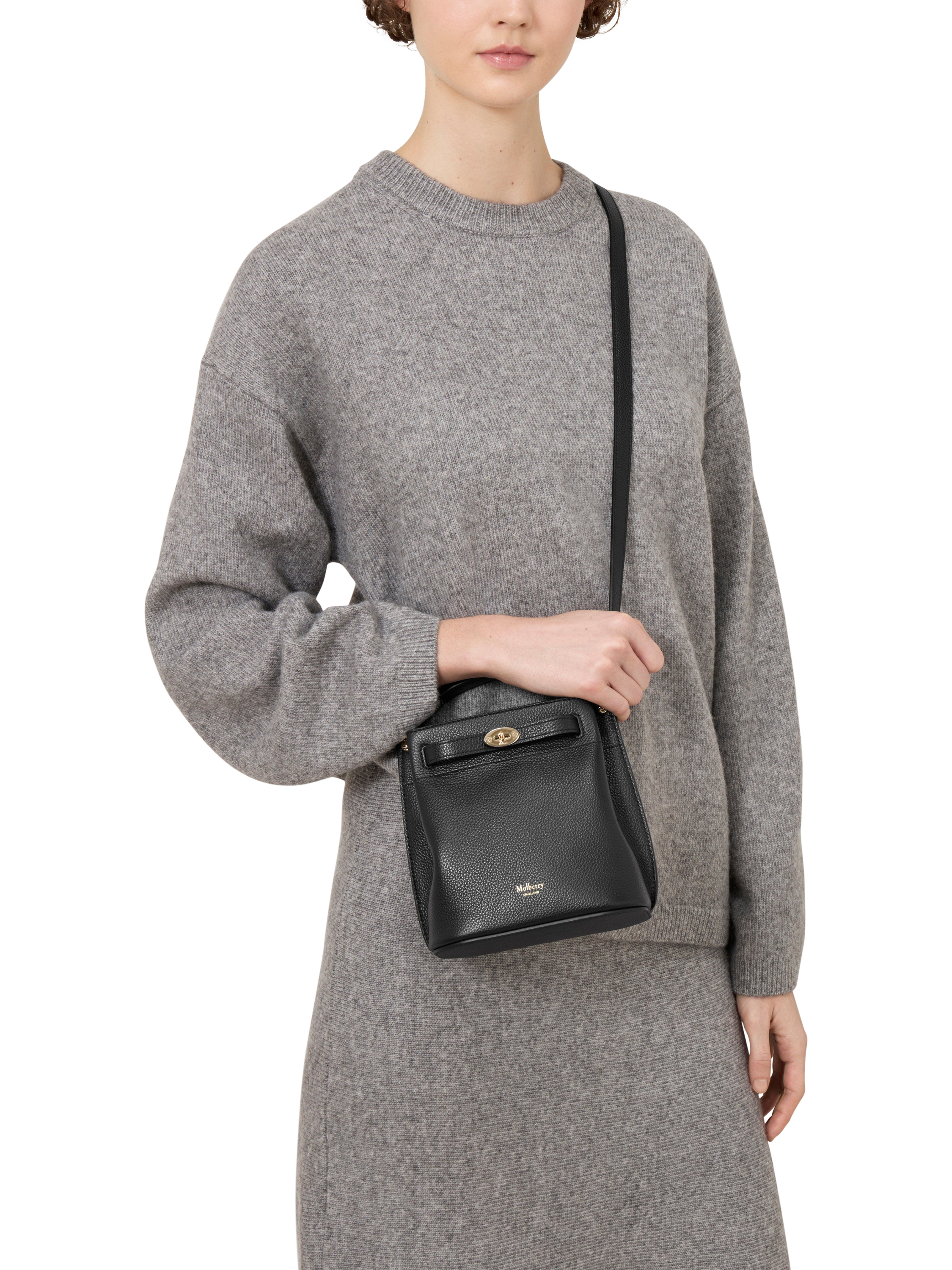 Mulberry's Islington Bucket favourite goes miniature. Named after the vibrant North London neighbourhood, the Mini Islington Bucket is a masterclass in timeless day-to-night dressing. Crafted from sumptuously soft leather with microsuede lining, this easygoing bag features a robust top handle and a long, adjustable and detachable strap for crossbody wear.