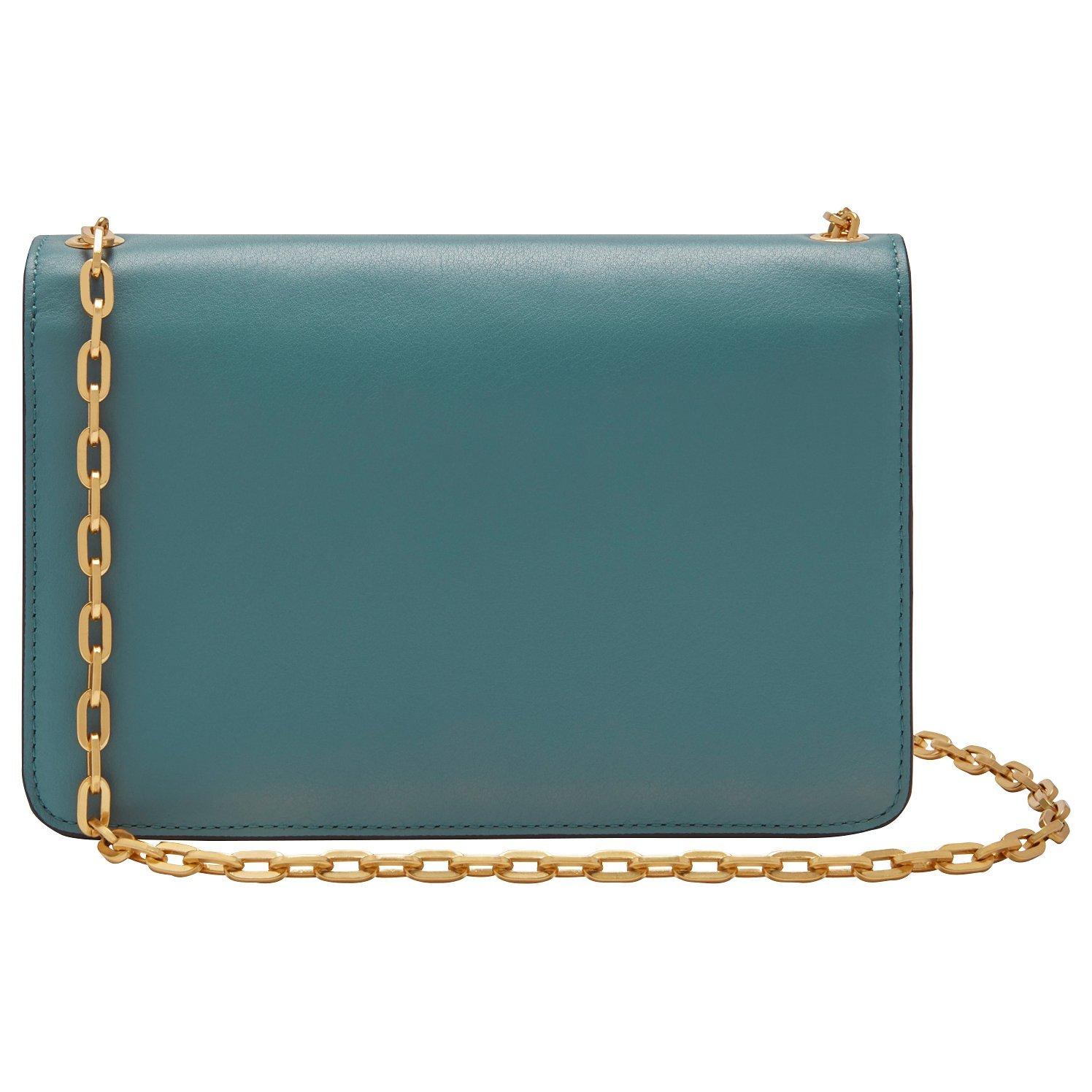 Vibrantly coloured and made from smooth calf's leather for a premium finish, it secures popper fastenings and opens to reveal a luxurious nappa lined interior. Three flaps create two slip pockets and a roomy main compartment featuring eight card slots. The style is accentuated by a chain strap for hands-free carry but it can also be detached for a more authentic clutch effect.