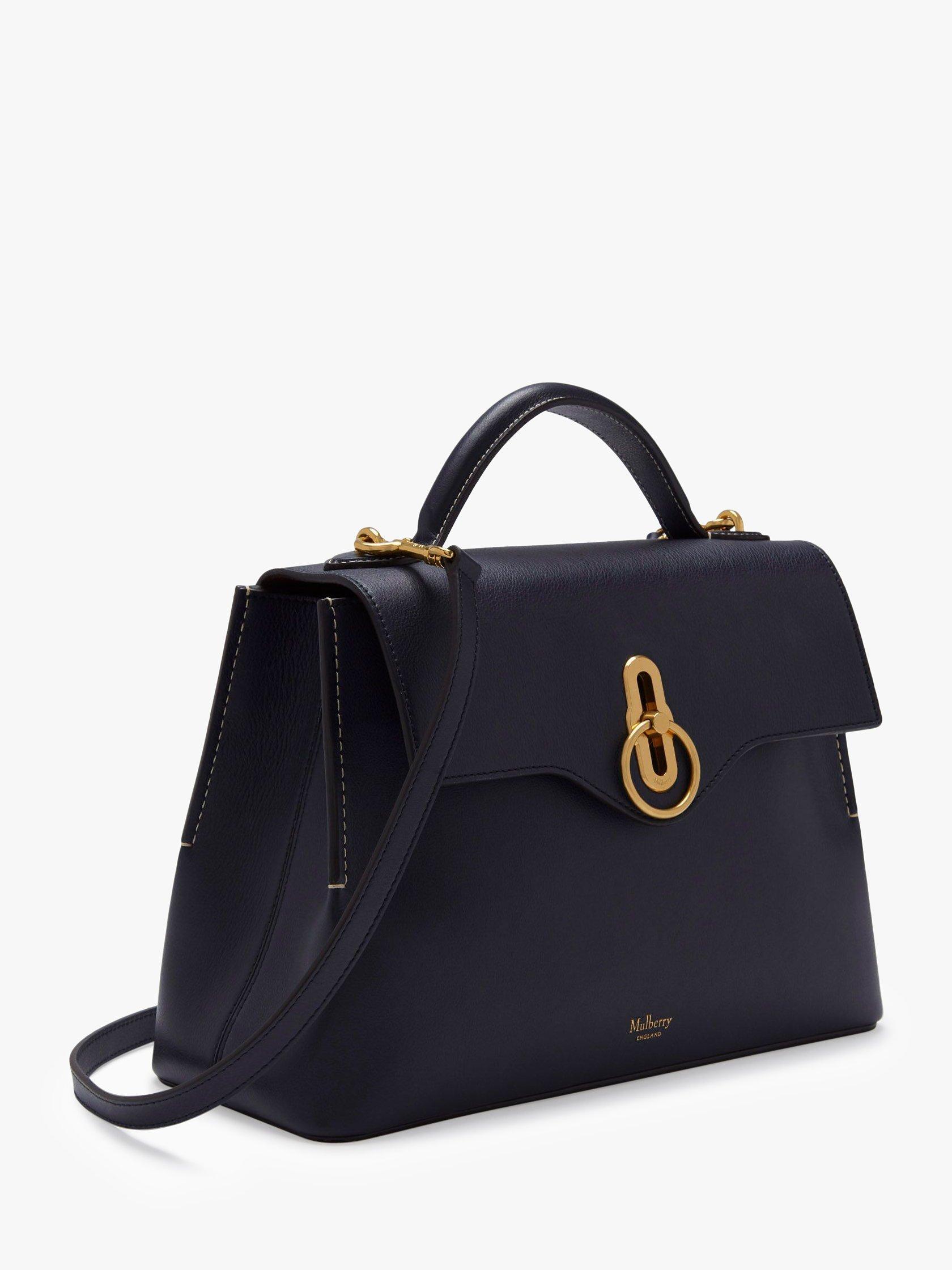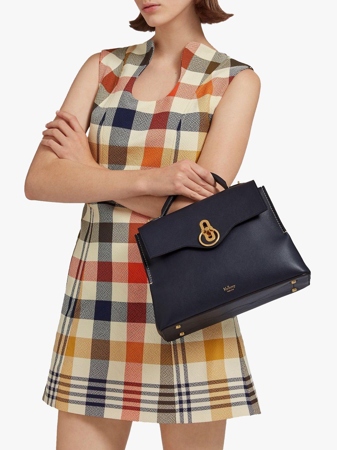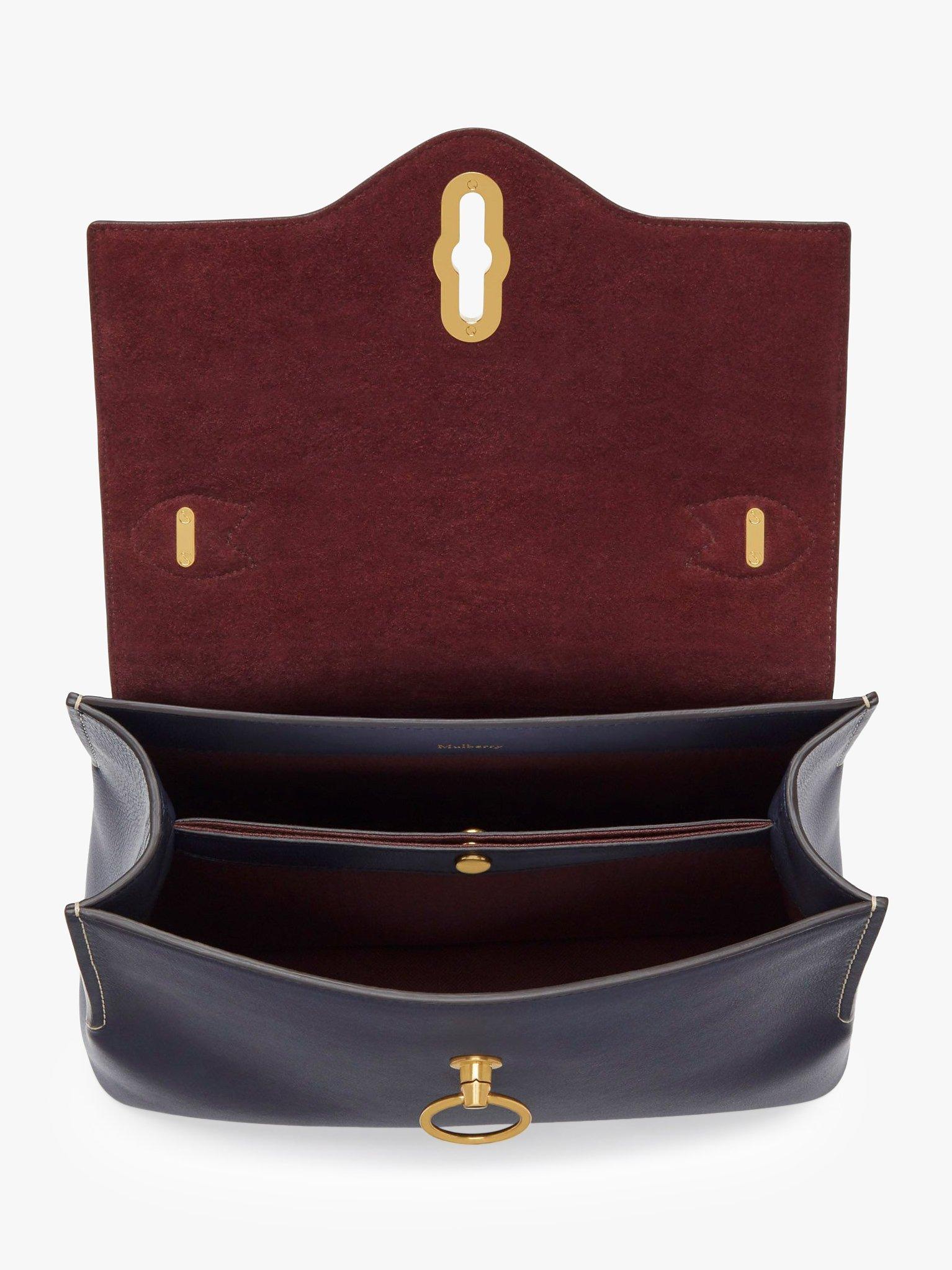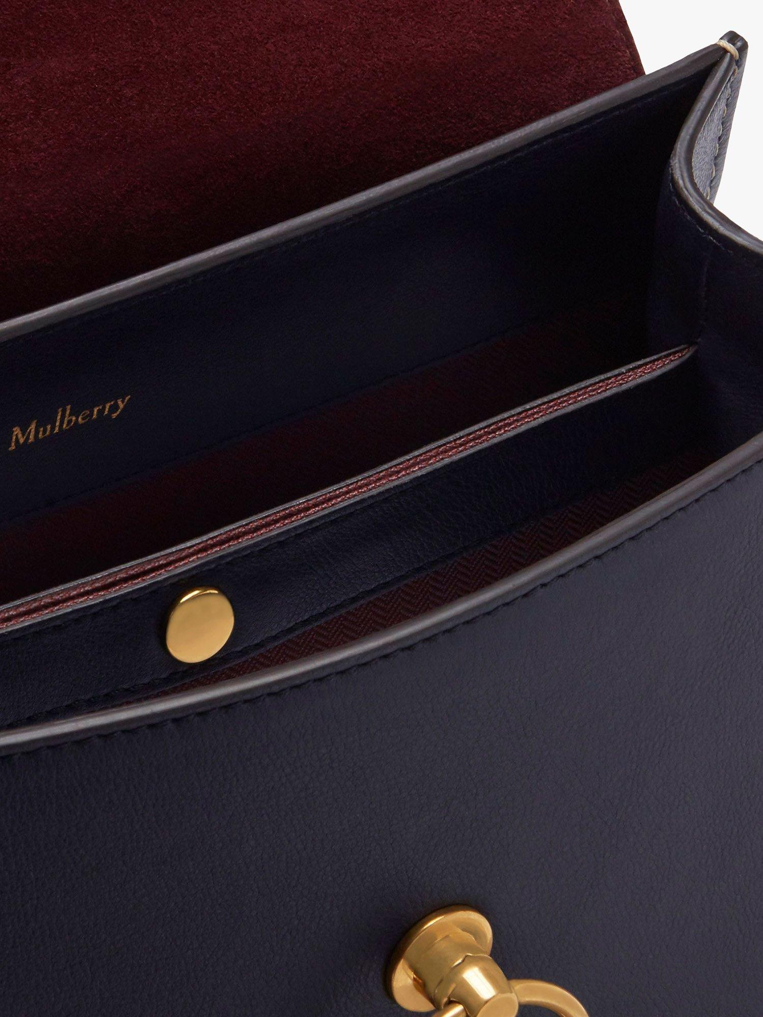 Suede lined, this bag is completed with a foil embossed Mulberry signature on front panel and has metal feet on the base for protection.
