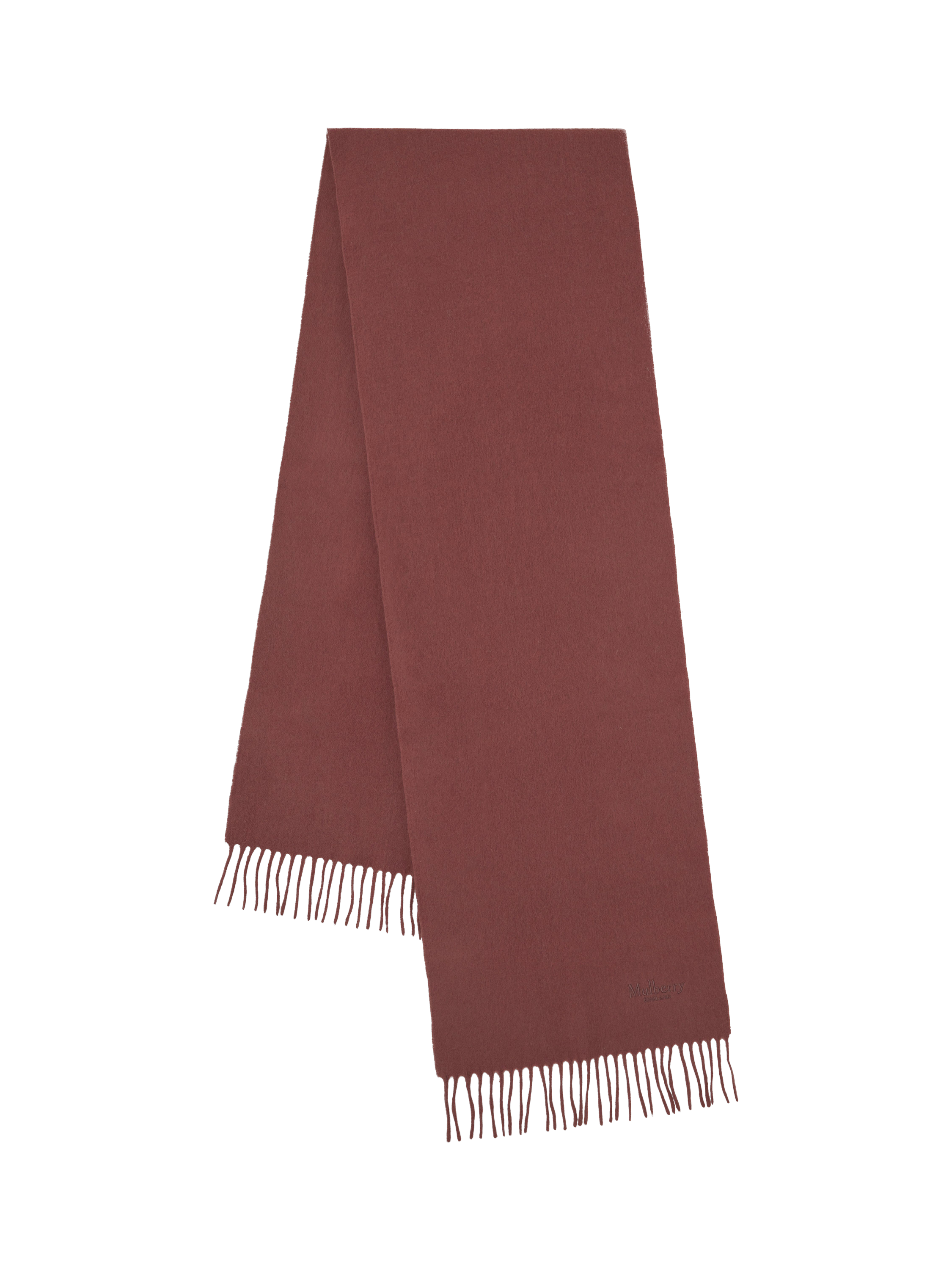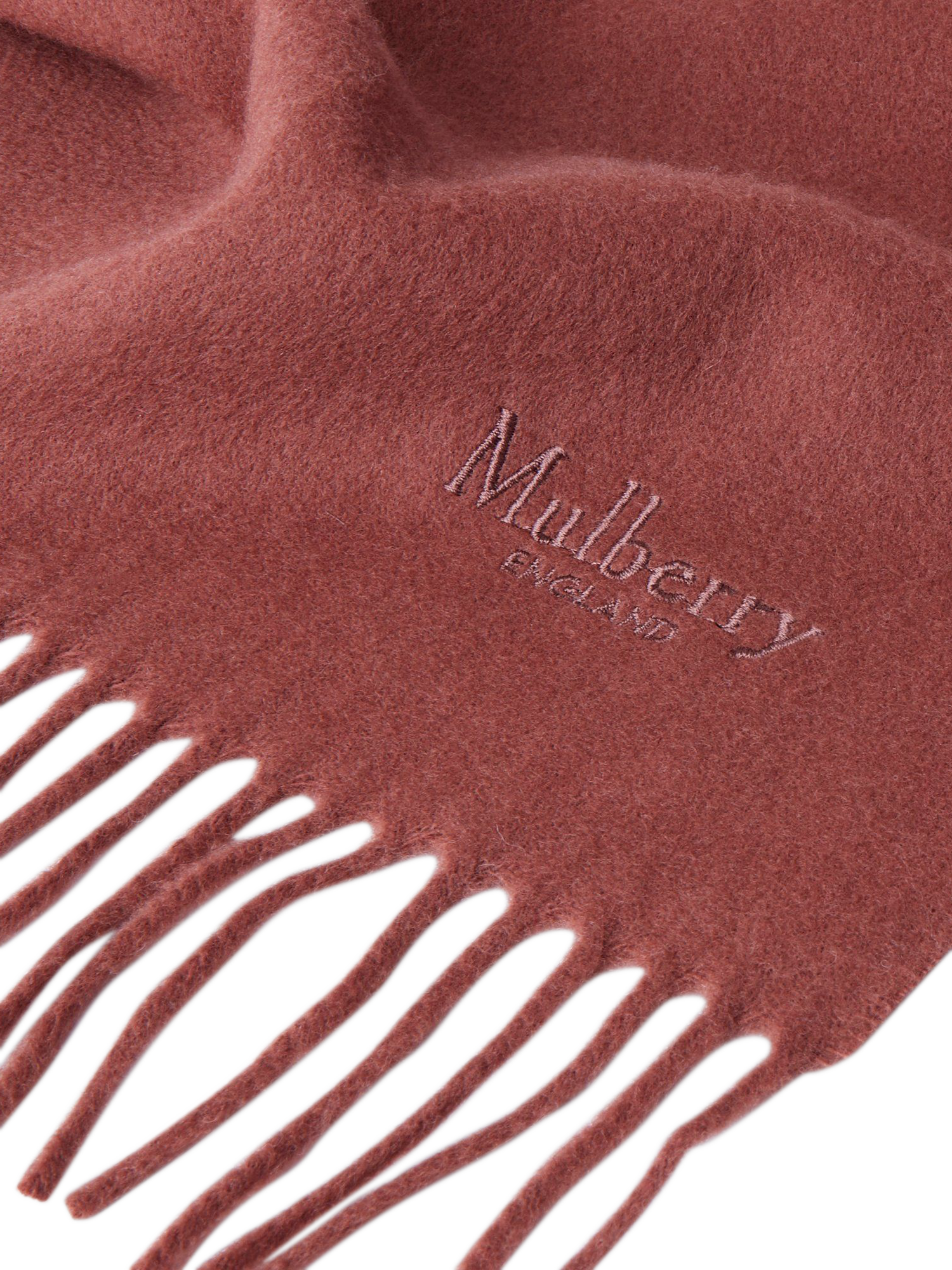 A classic soft wool scarf made in the UK from 100% Lambswool, finished with fringing and an embroidered Mulberry signature.