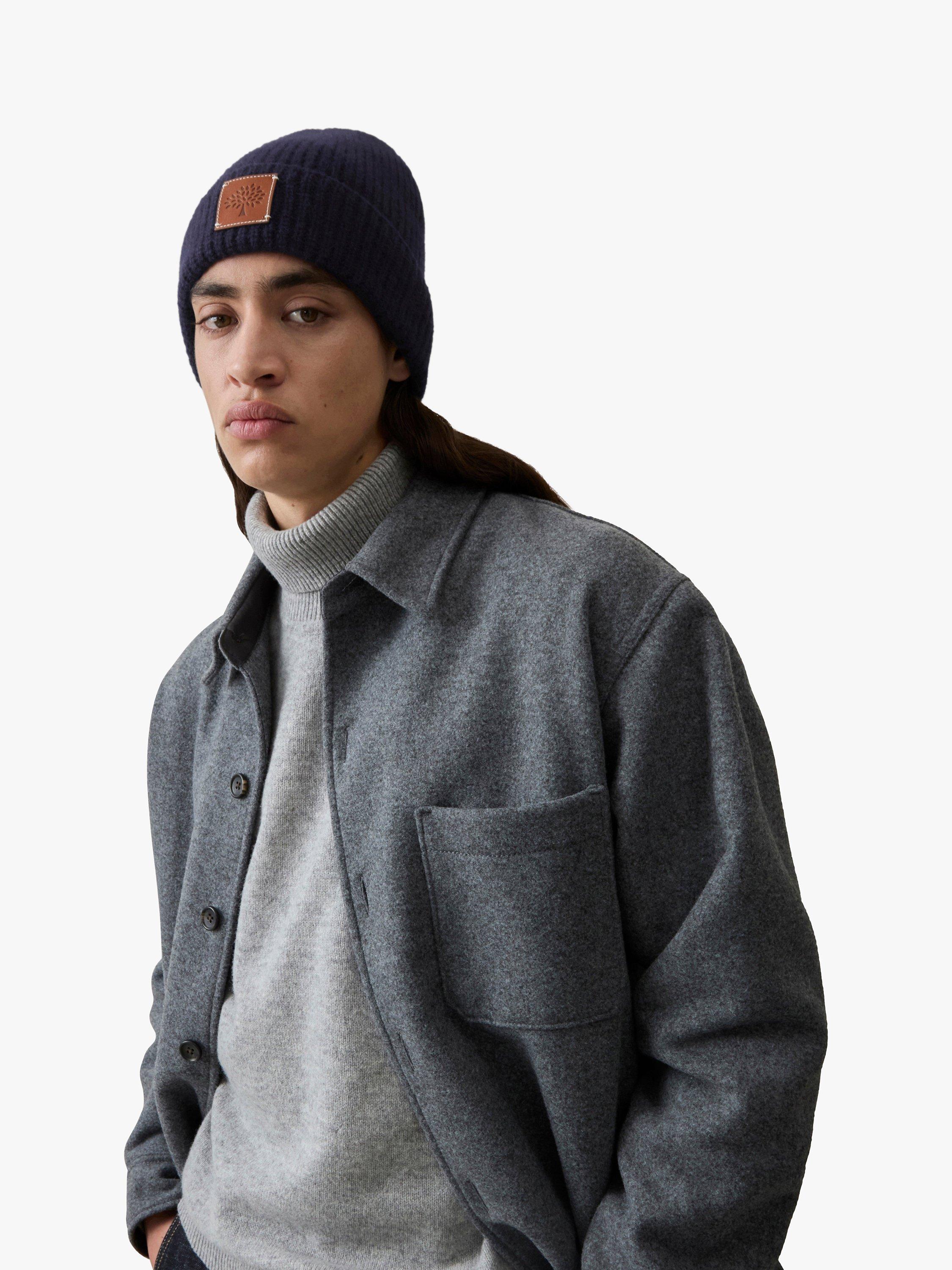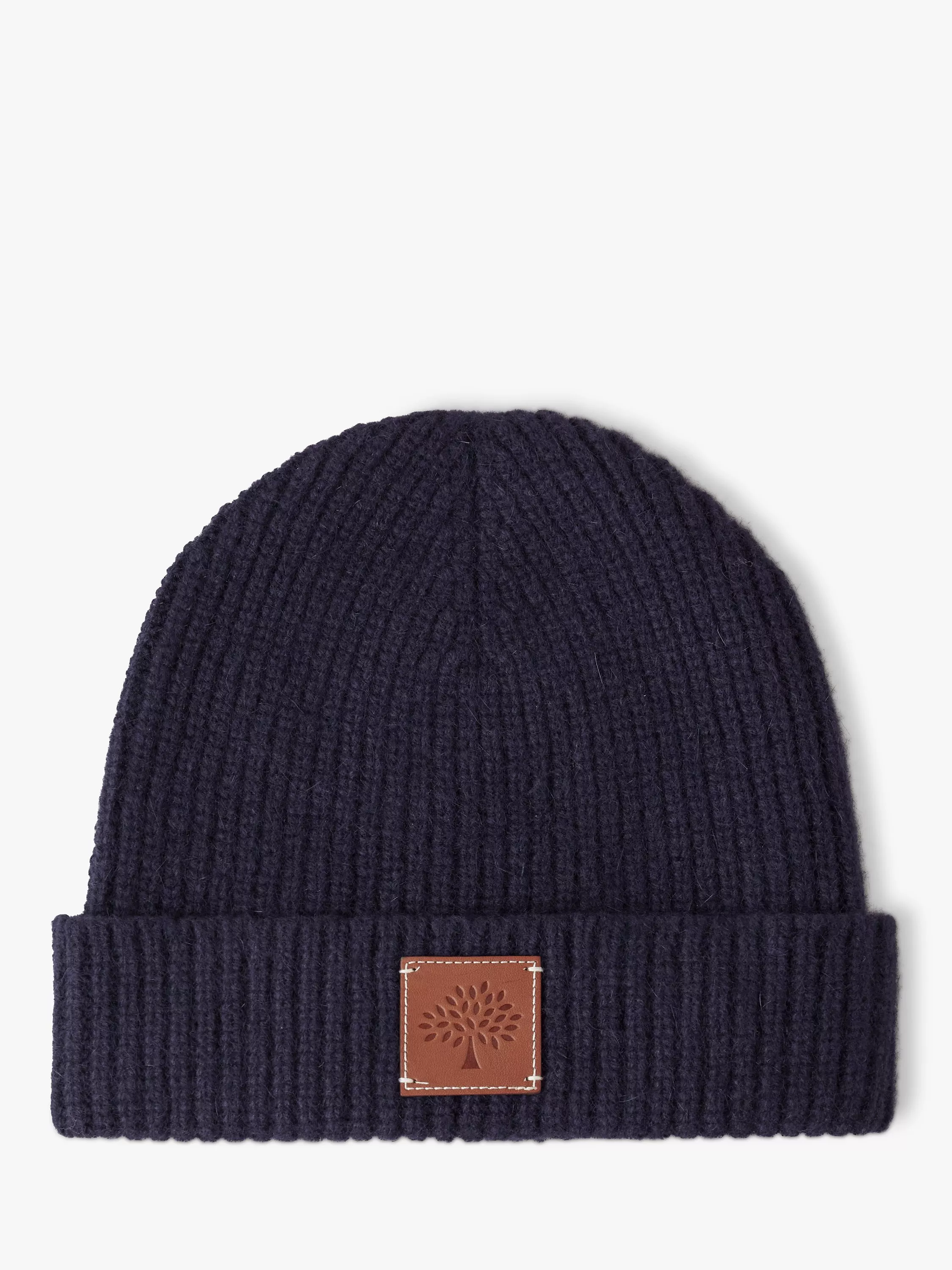 MulberrySolid Wool Blend Beanie Hat, Navy, One Size