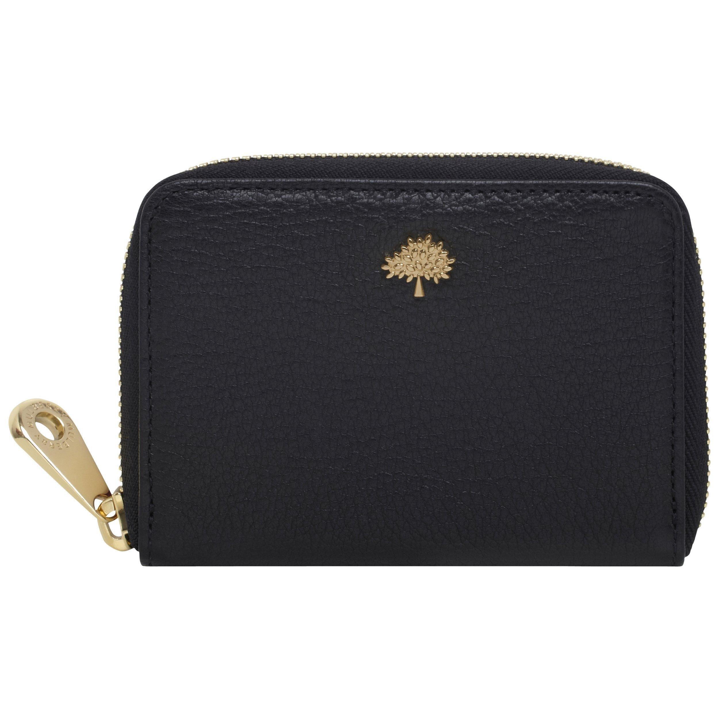 A small and tidy zip around purse with the iconic Mulberry tree on the front in a beautiful golden finish. The inside is lined with beautiful and sturdy fabric, with four credit card slots and three slip pockets.