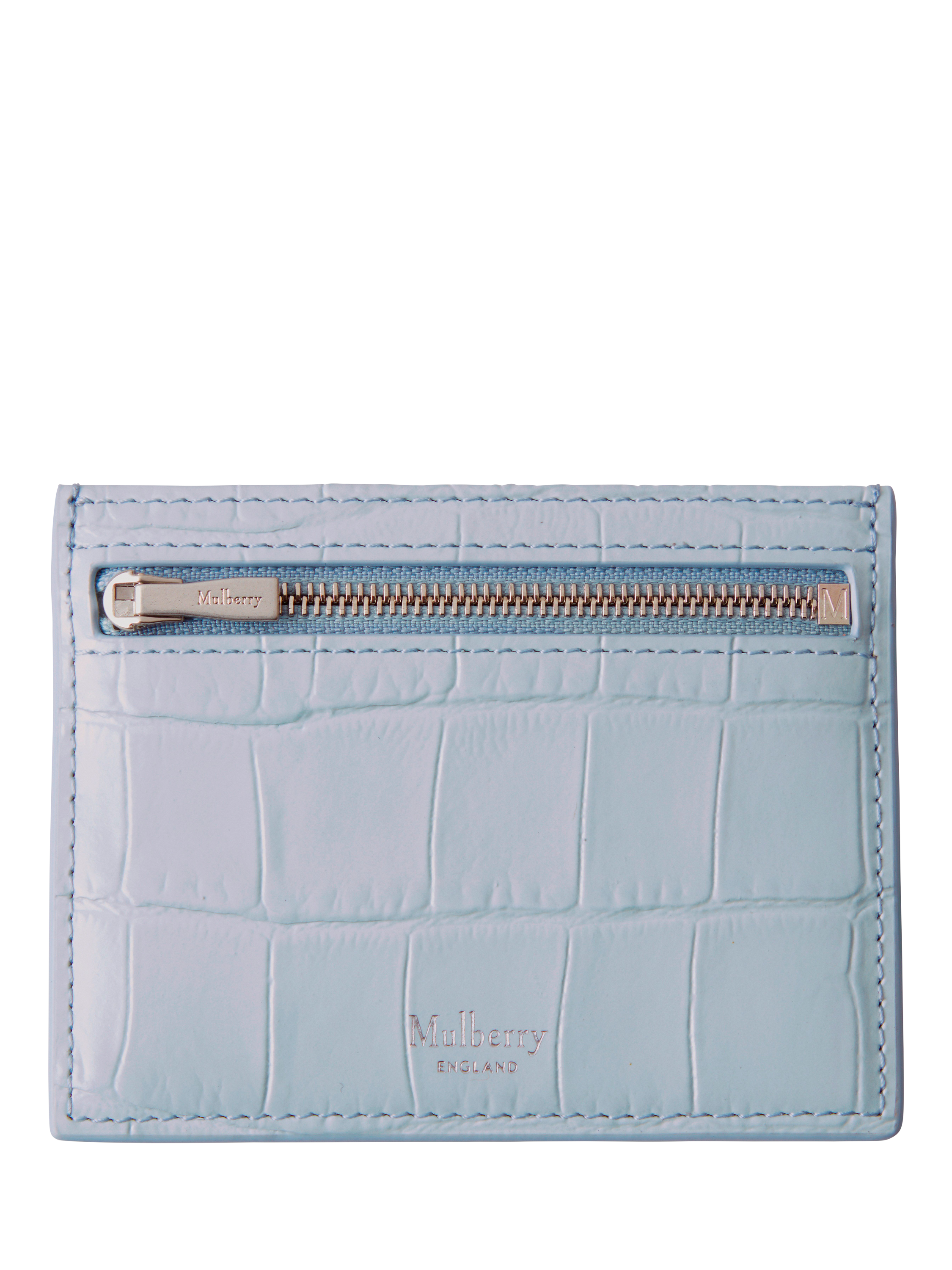 MulberryZipped Shiny Small Croc Leather Credit Card Slip, Poplin Blue