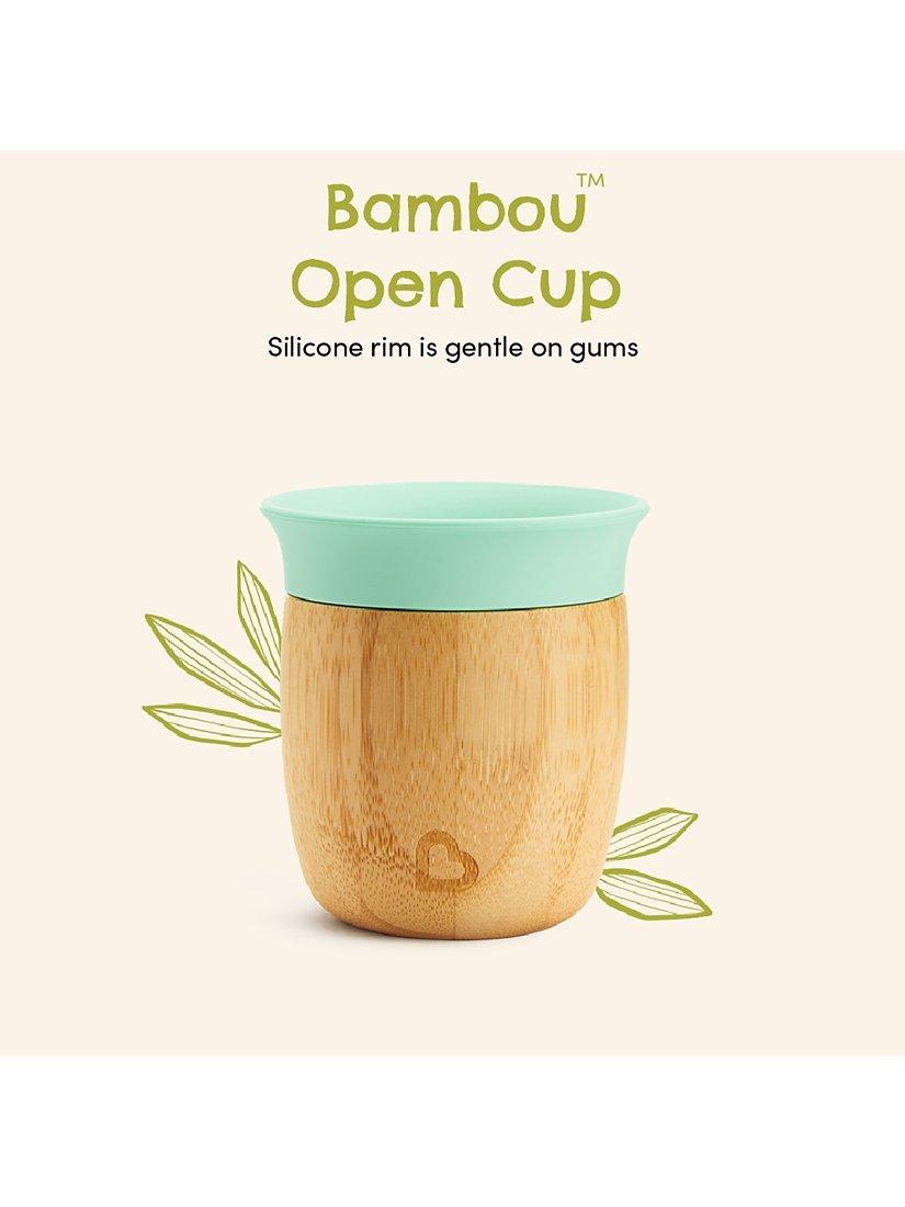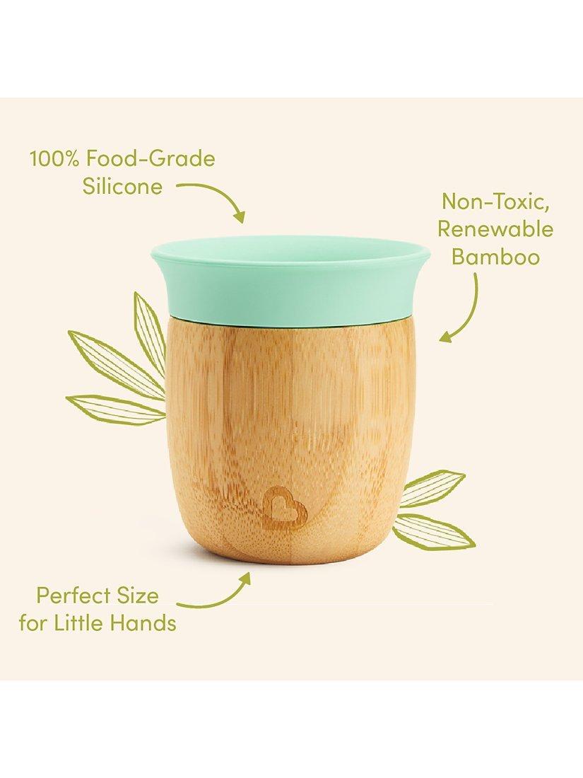 Baby-friendly meets eco‑friendly. Put sustainability on your everyday menu with Munchkin's bamboo mealtime collection, which is designed to cultivate a greener future for our children and the beautiful planet we share. When it's time to ditch the bottle, the Bamboo Open Cup helps baby graduate to independent drinking. Crafted of non-toxic, renewable bamboo with a soft, BPA-free 100% food grade silicone rim that's drinkable on all sides, this adorable sippy cup is sized just right for little hands. It is suitable for little ones 6 months or older.