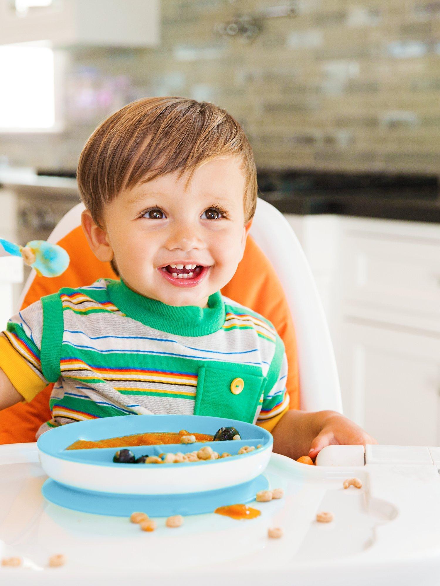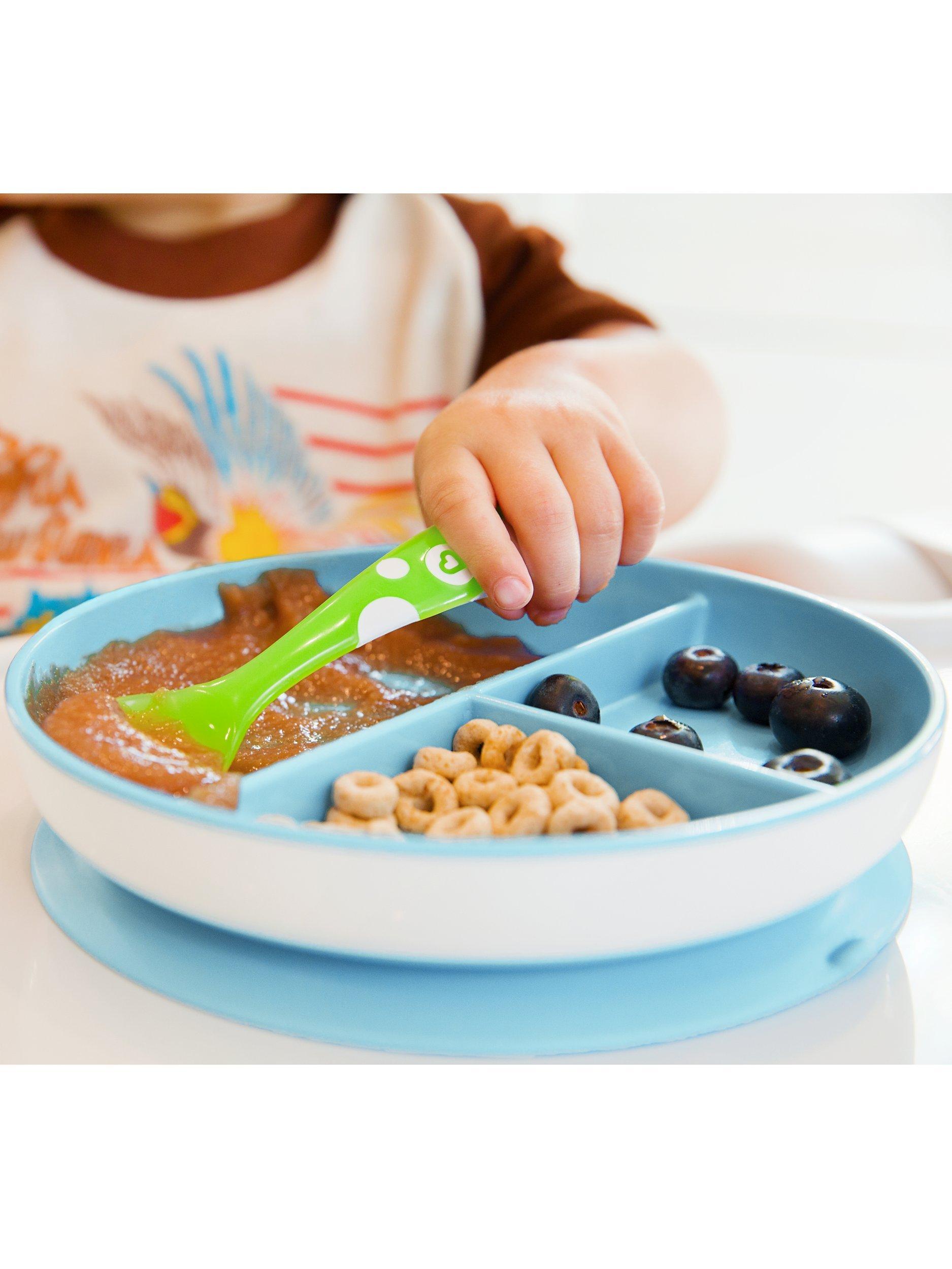 Mealtime can get messy with a new self-feeding baby and toddlers that are learning their strength! The strong suction base on this plate will adhere to most surfaces, and the quick-release tab makes removal easy for adults. Top-rack dishwasher safe, clean up is easy and quick, too. Baby weaning and toddler feeding has never been this easy. Munchkin's kid, toddler and baby suction plates are the perfect non-slip tableware for baby weaning; so, more mealtime fun and less mess.
