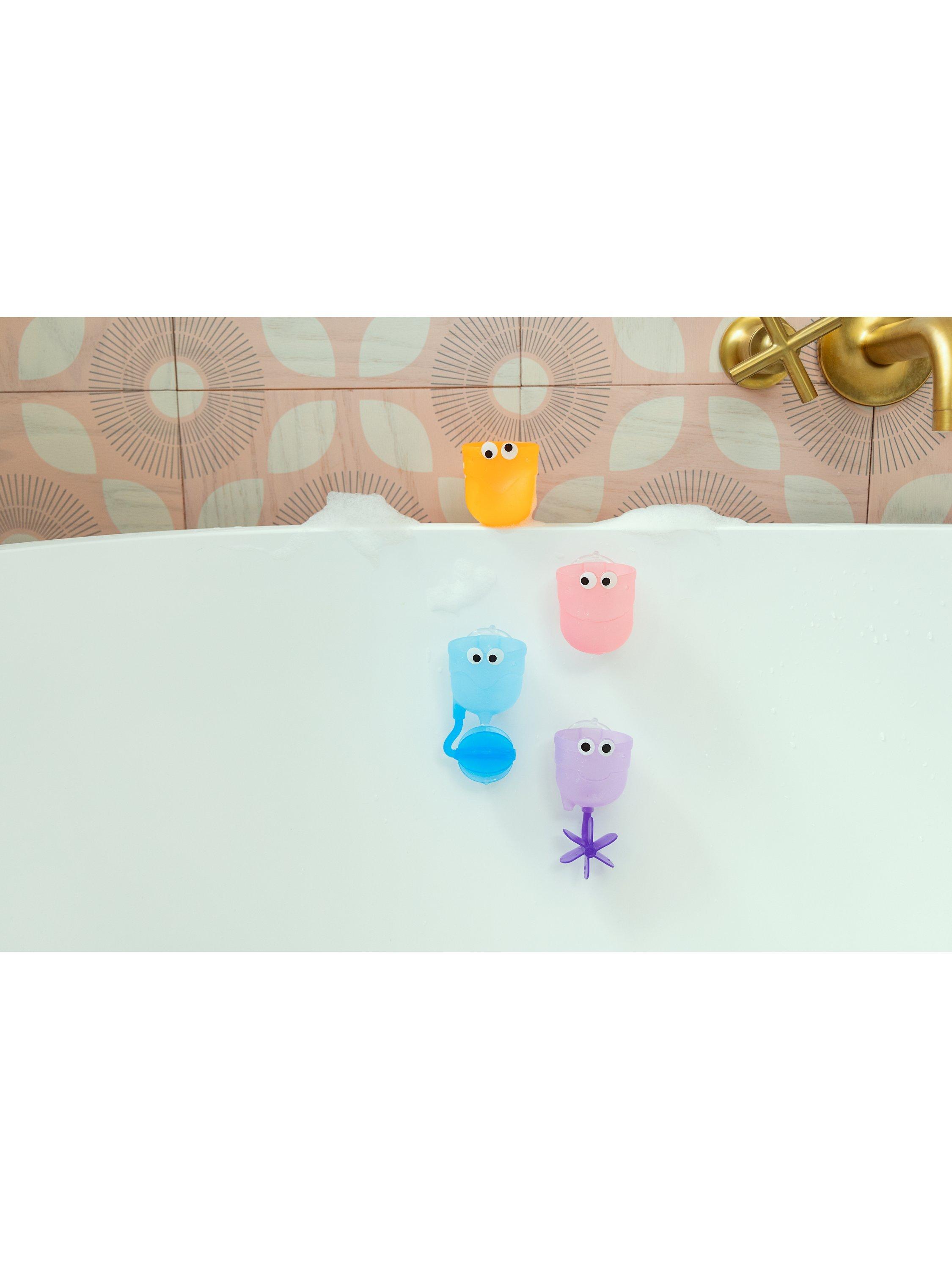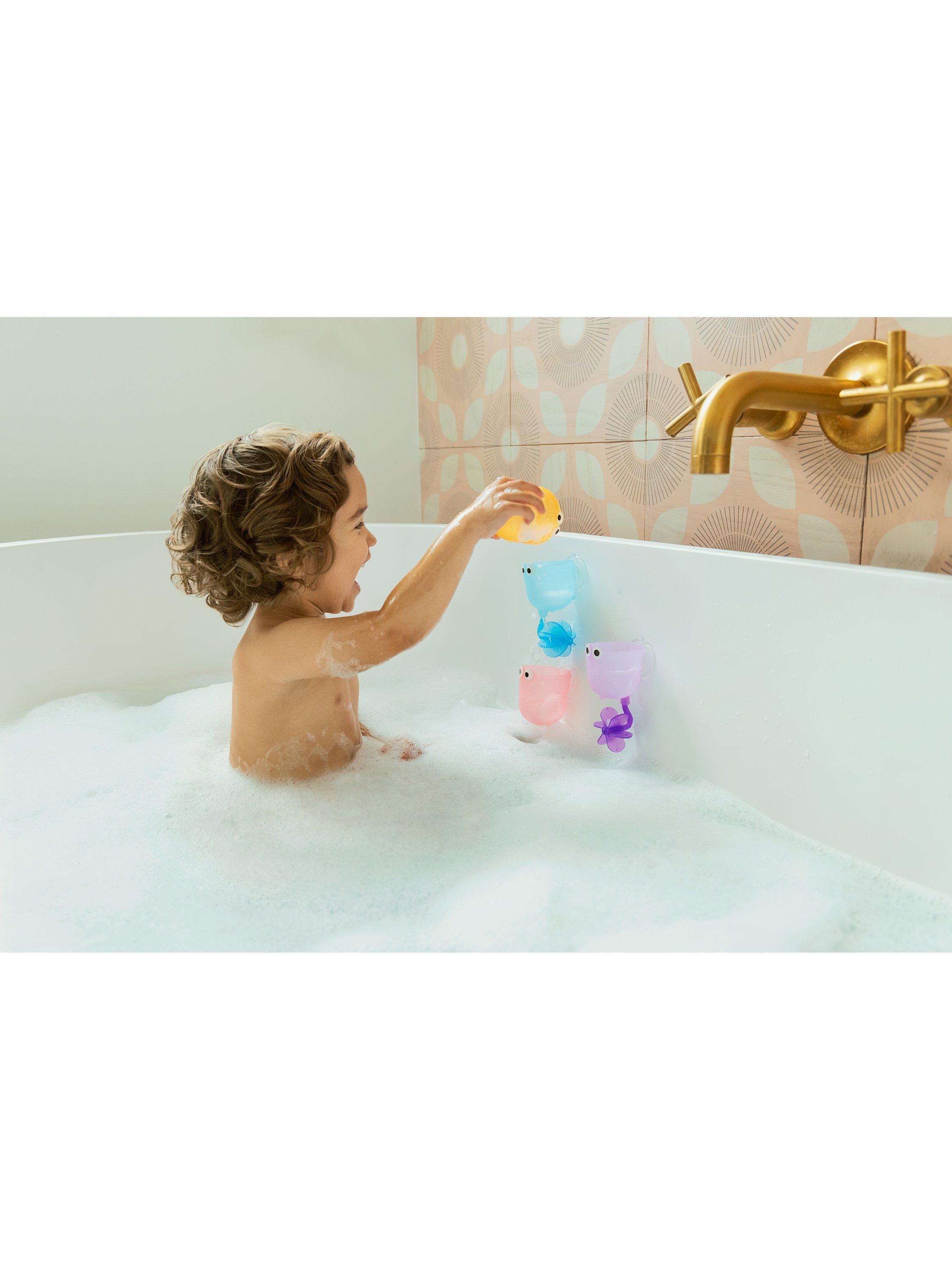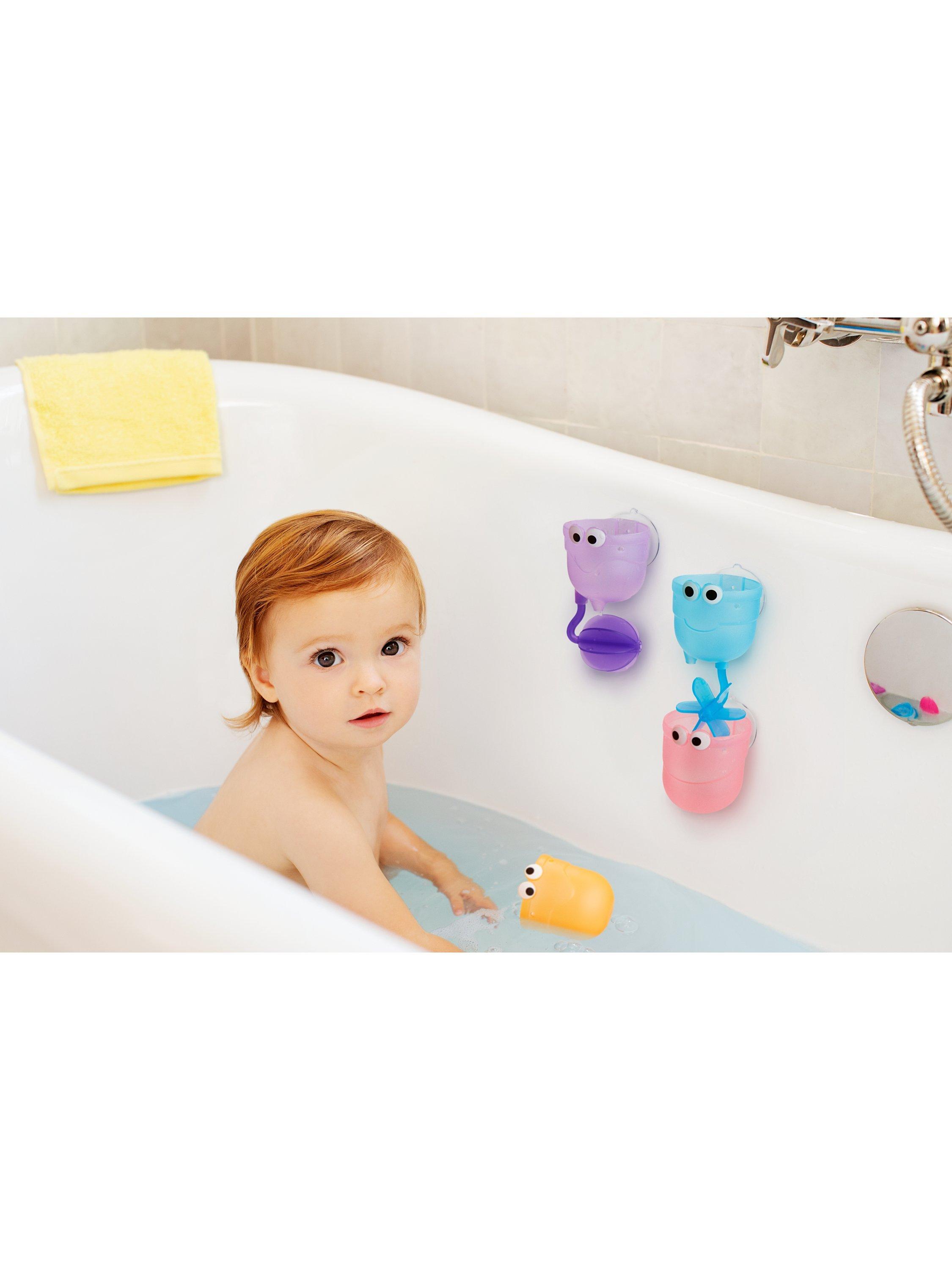 Your child will absolutely fall for these Falls cups from Munchkin. Who said all the bath time fun has to come from in the tub? Why can’t it be ON the tub (walls, that is)? This creative bath toy comprises 1 cup to scoop and pour water, as well as 3 toy cups which the water is to be poured through (2 come with spinner wheels, and 1 is a straining cup).
