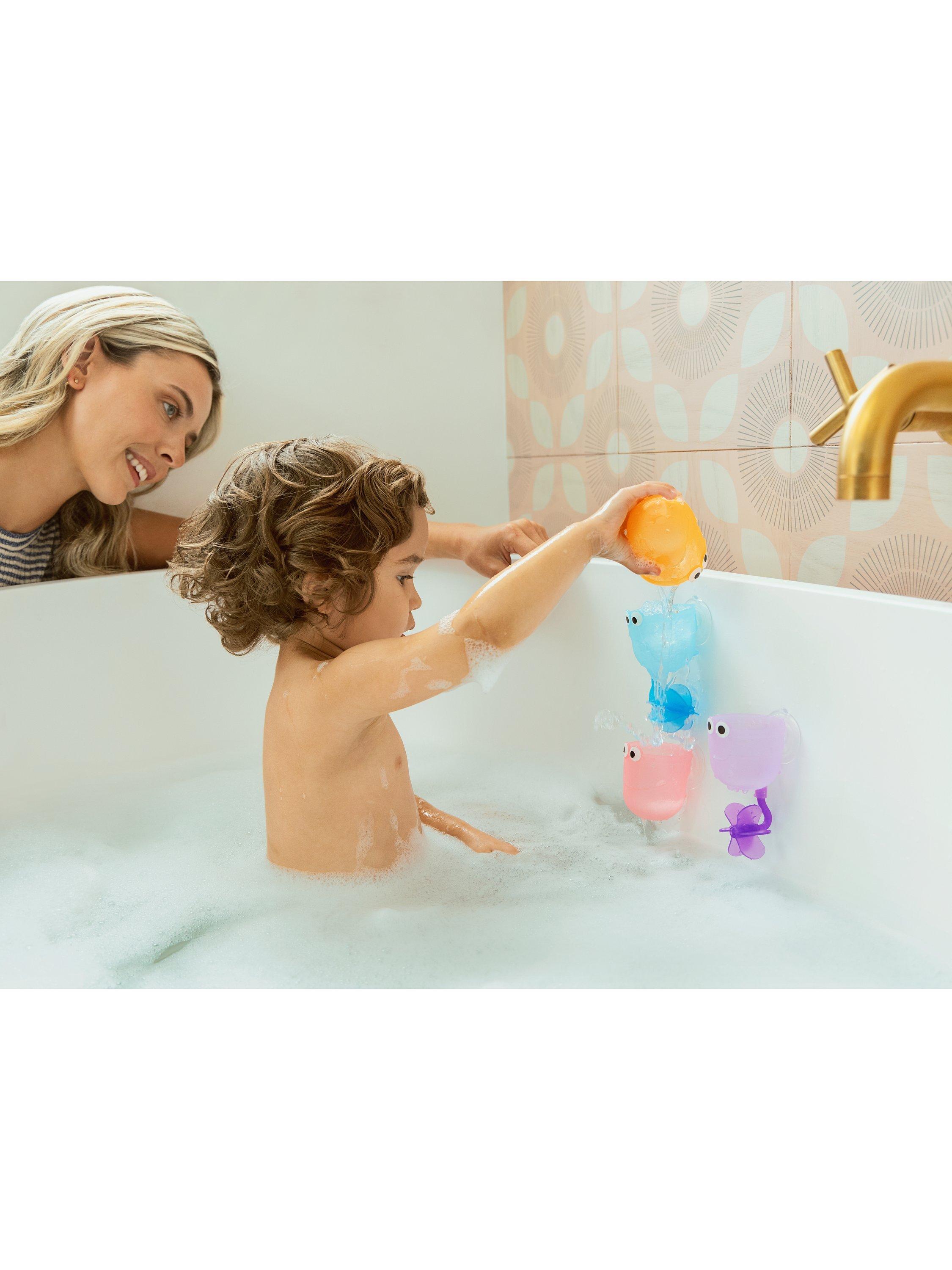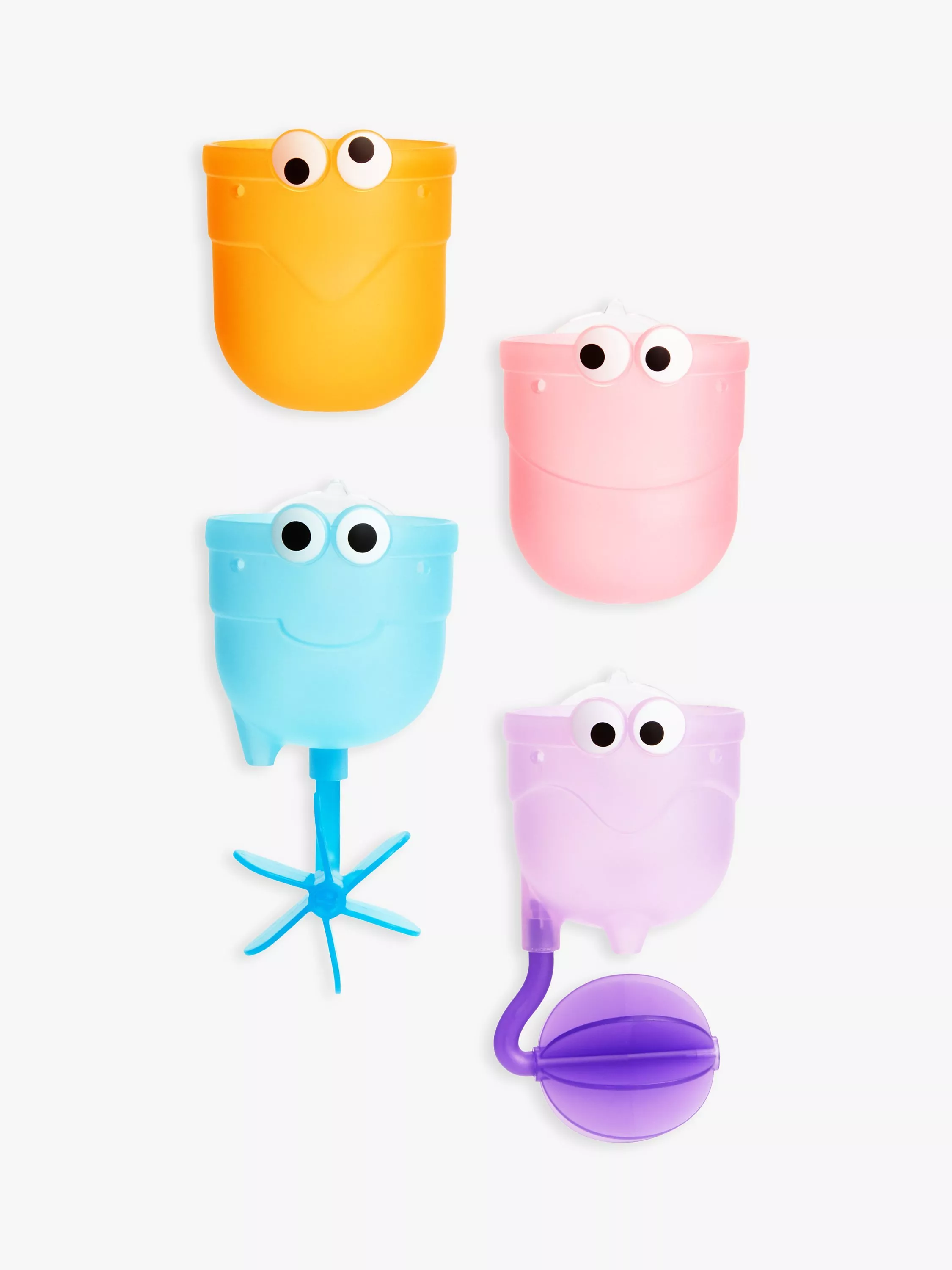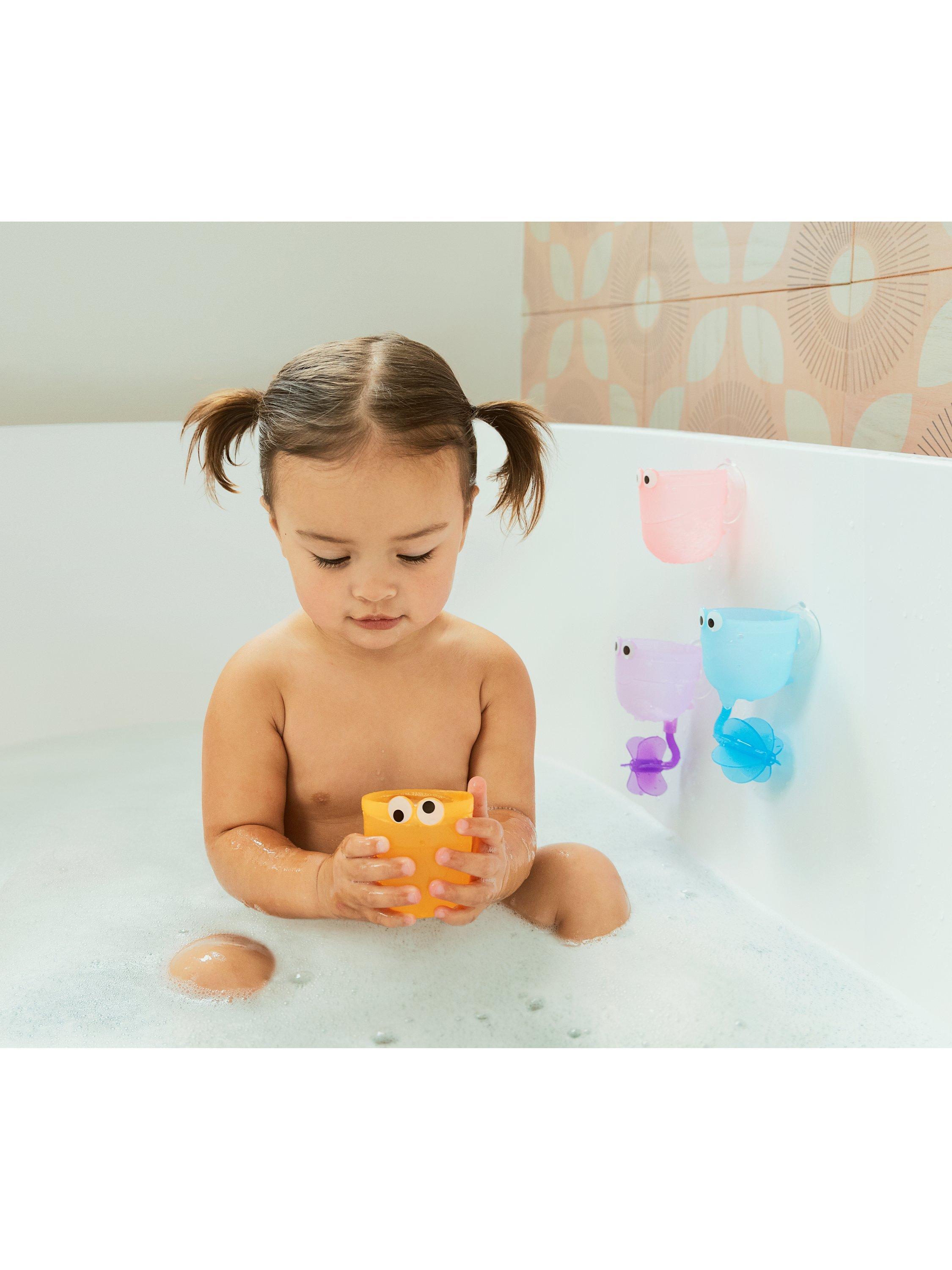 Your child will absolutely fall for these Falls cups from Munchkin. Who said all the bath time fun has to come from in the tub? Why can’t it be ON the tub (walls, that is)? This creative bath toy comprises 1 cup to scoop and pour water, as well as 3 toy cups which the water is to be poured through (2 come with spinner wheels, and 1 is a straining cup).