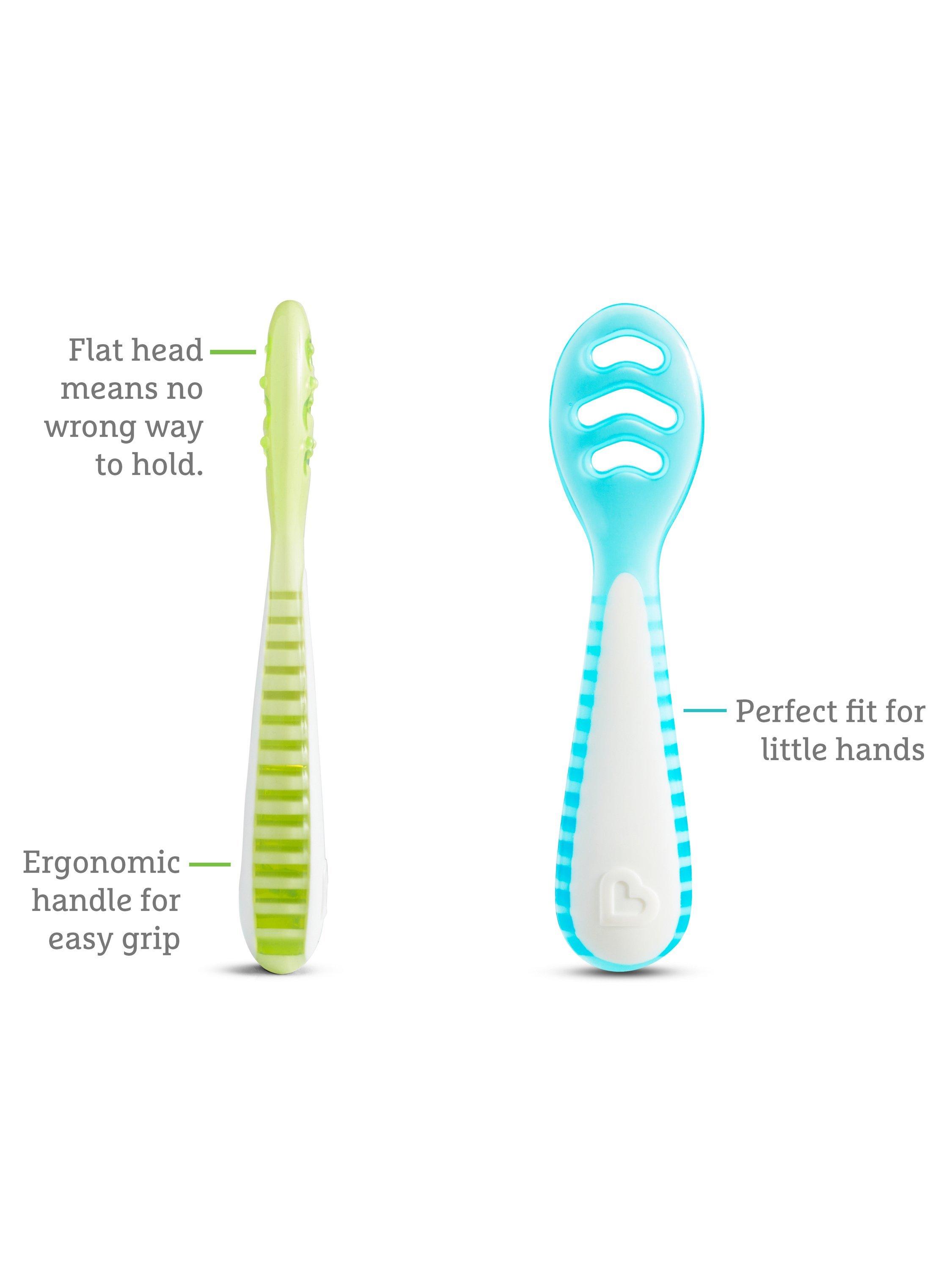 Ergonomic and versatile design: Each spoon features an ergonomic design with a flat head, making it easy for babies to dip and eat. There's no right or wrong way to hold these spoons, encouraging independent eating from a young age.