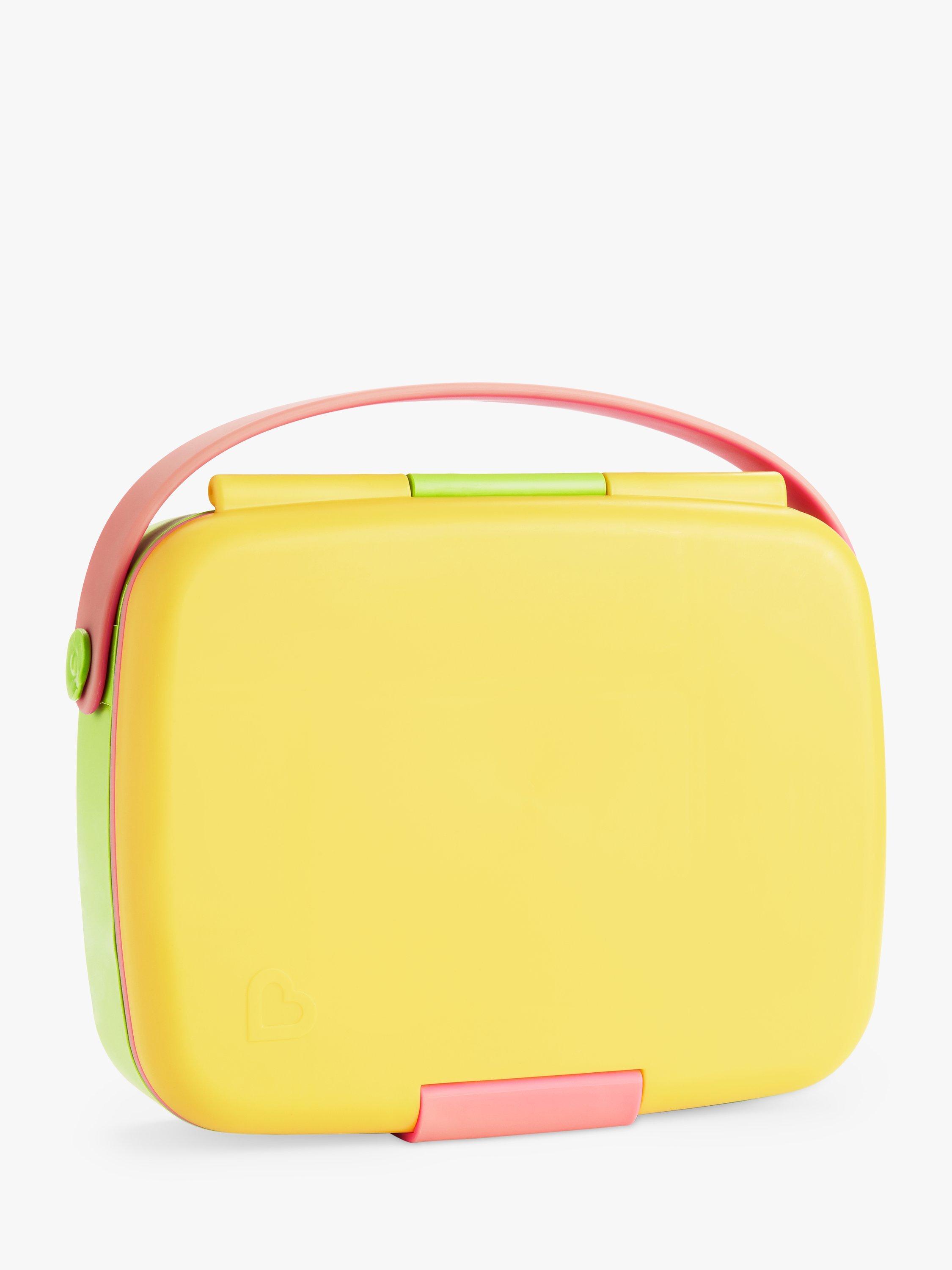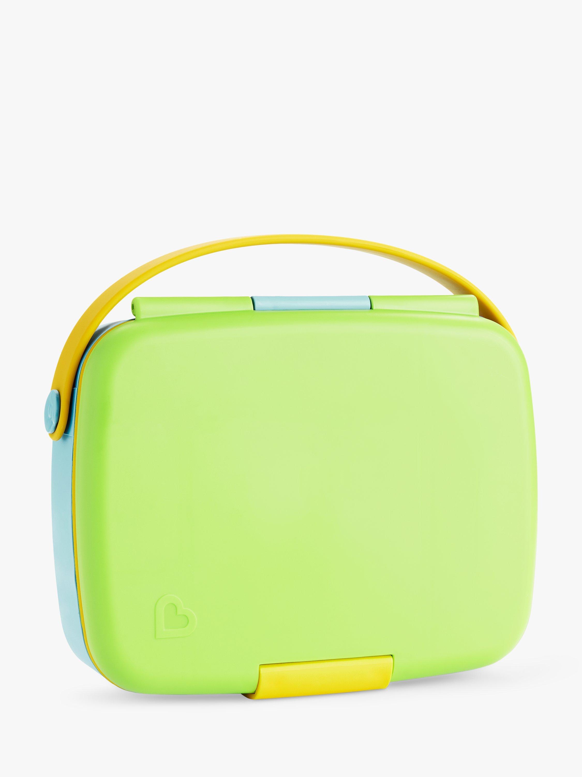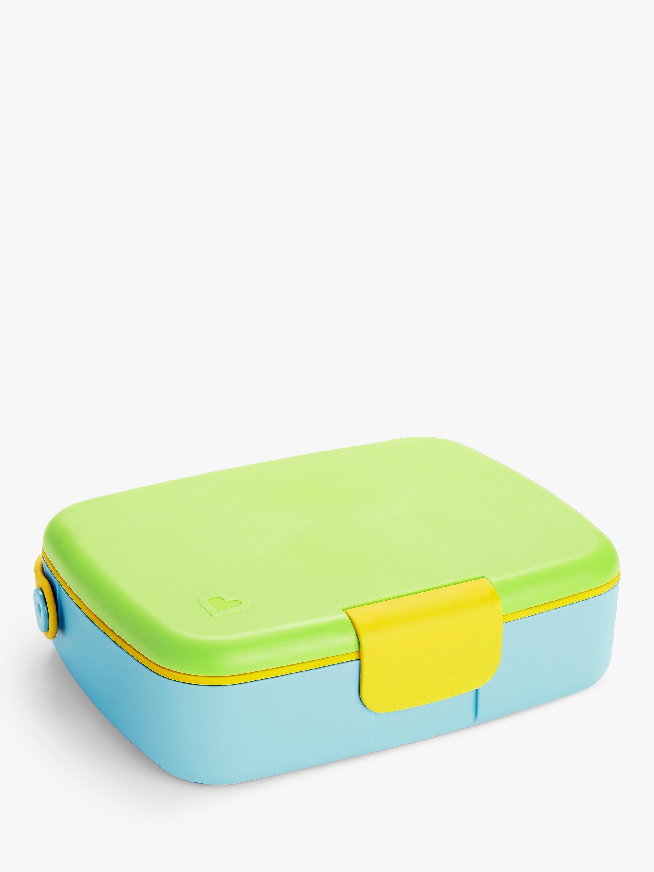 Munchkin's lunch bento box with stainless steel utensils is the perfect step up for toddlers and bigger kids that want to keep food fresh and have a grown-up snack box of their own! The box comes with neatly divided areas that keep food fresh and looks great too!