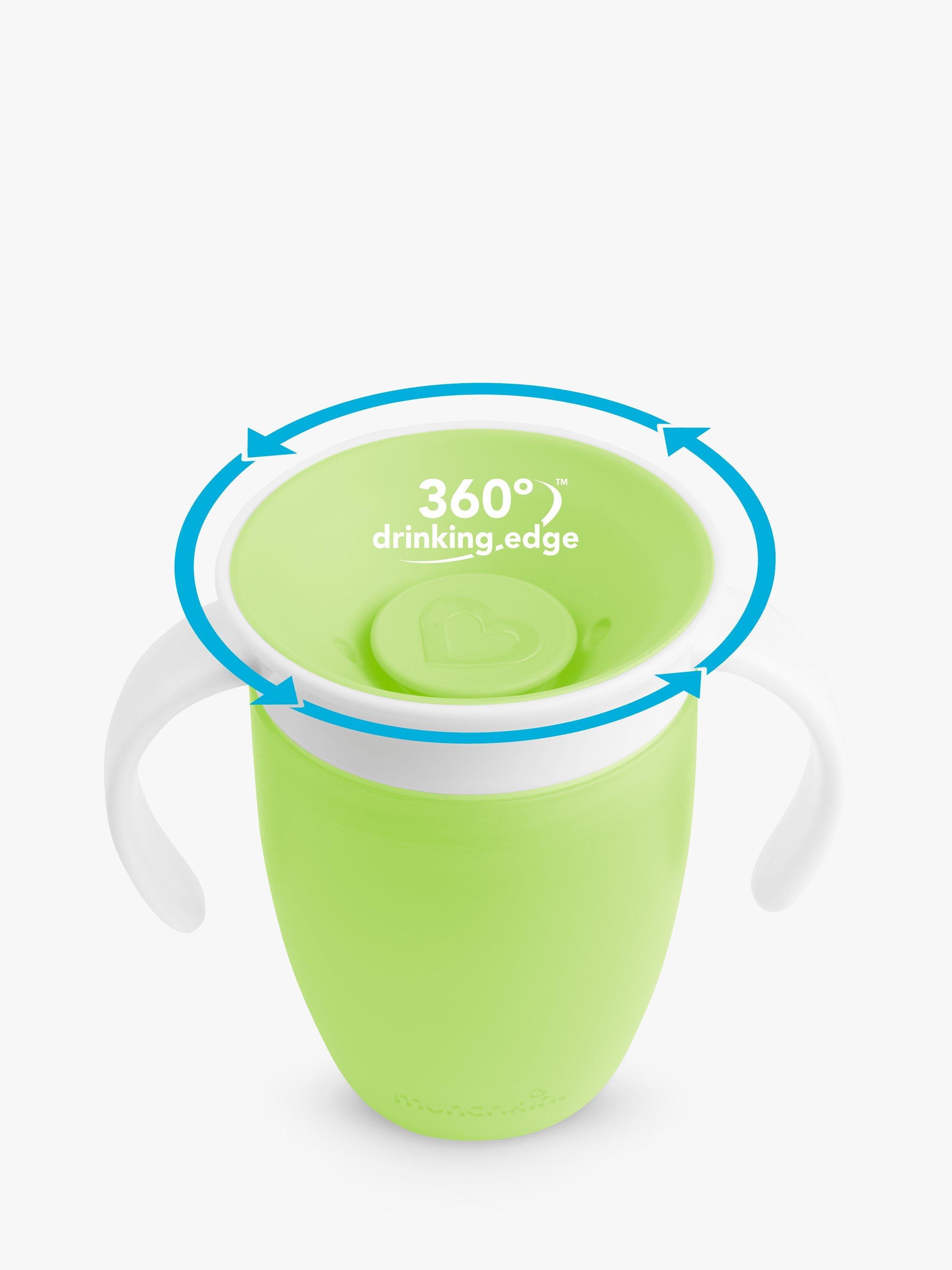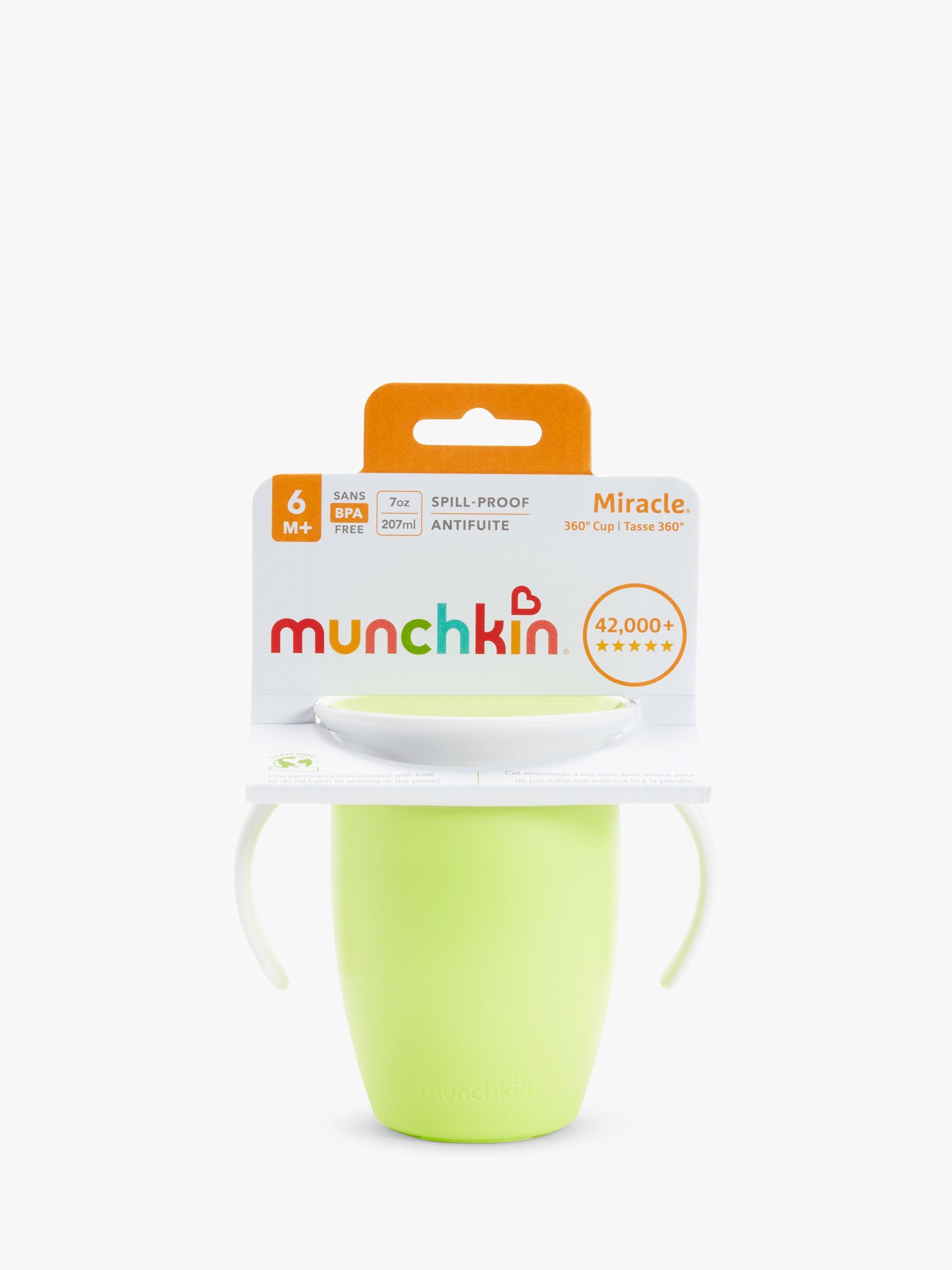Let's face it: toddlers are a messy bunch, especially when first navigating sippy cups. Now imagine a world in which drinks didn't spill at all - not in your nappy bag, not on your nightstand, and not even onto your eager-to-learn child. No, it's not a miracle - it's Munchkin's Miracle® 360° Cup. The first sippy cup invented with both parents and kids in mind, the Miracle® 360° Cup eliminates messes and supports kids' dental health all at once. Drinking from anywhere around the rim, like a regular cup, helps support normal muscle development in a child's mouth. And with no extra spouts, straws or pieces, the Miracle® 360° Cup is easy to use and even easier to clean. We'll say cheers to that!