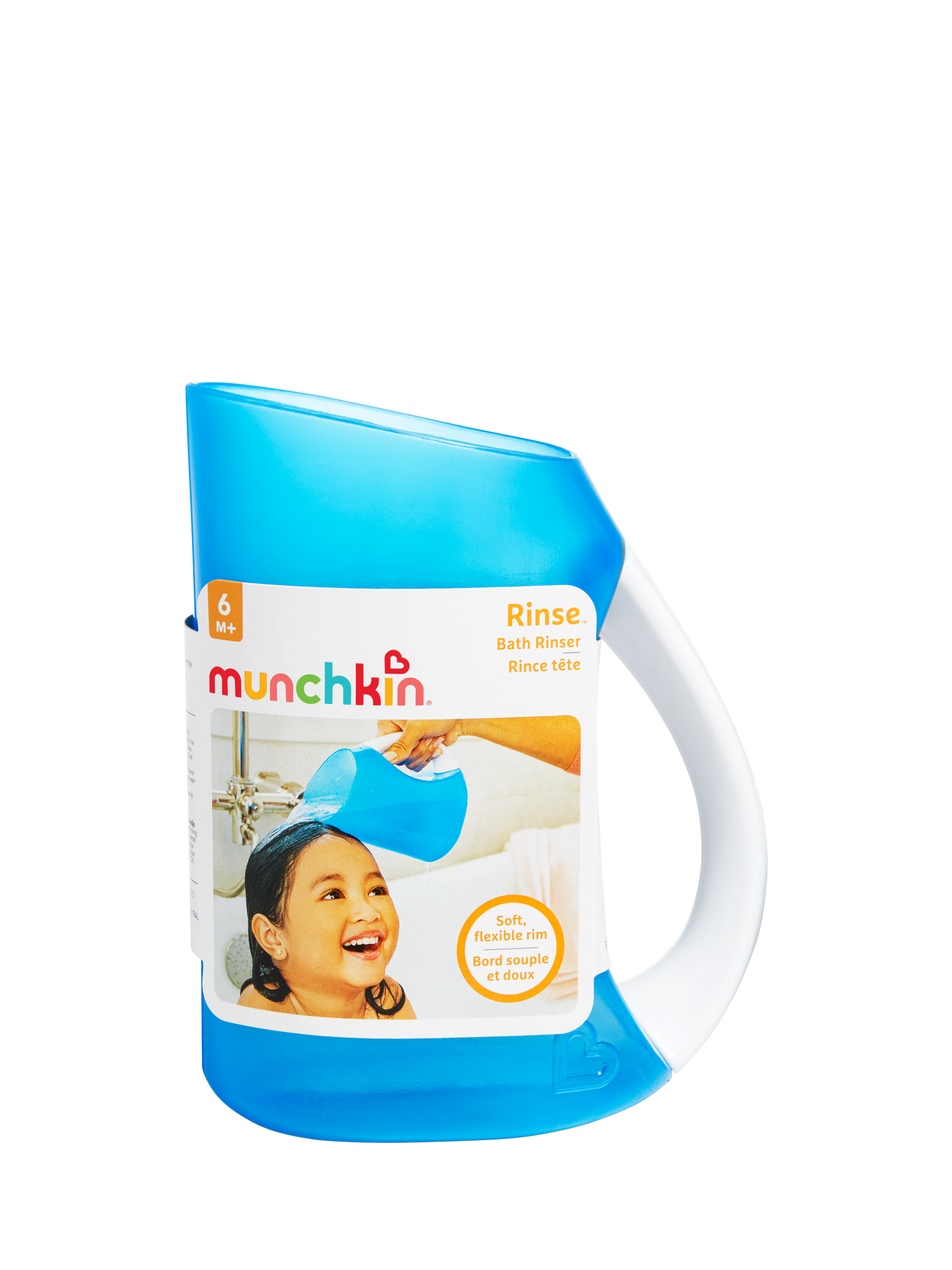 Soft contoured rim gently hugs child's forehead and keeps soap and water out of eyes. Unique, easy-grip handle for complete control. Large water capacity for fewer rinses.