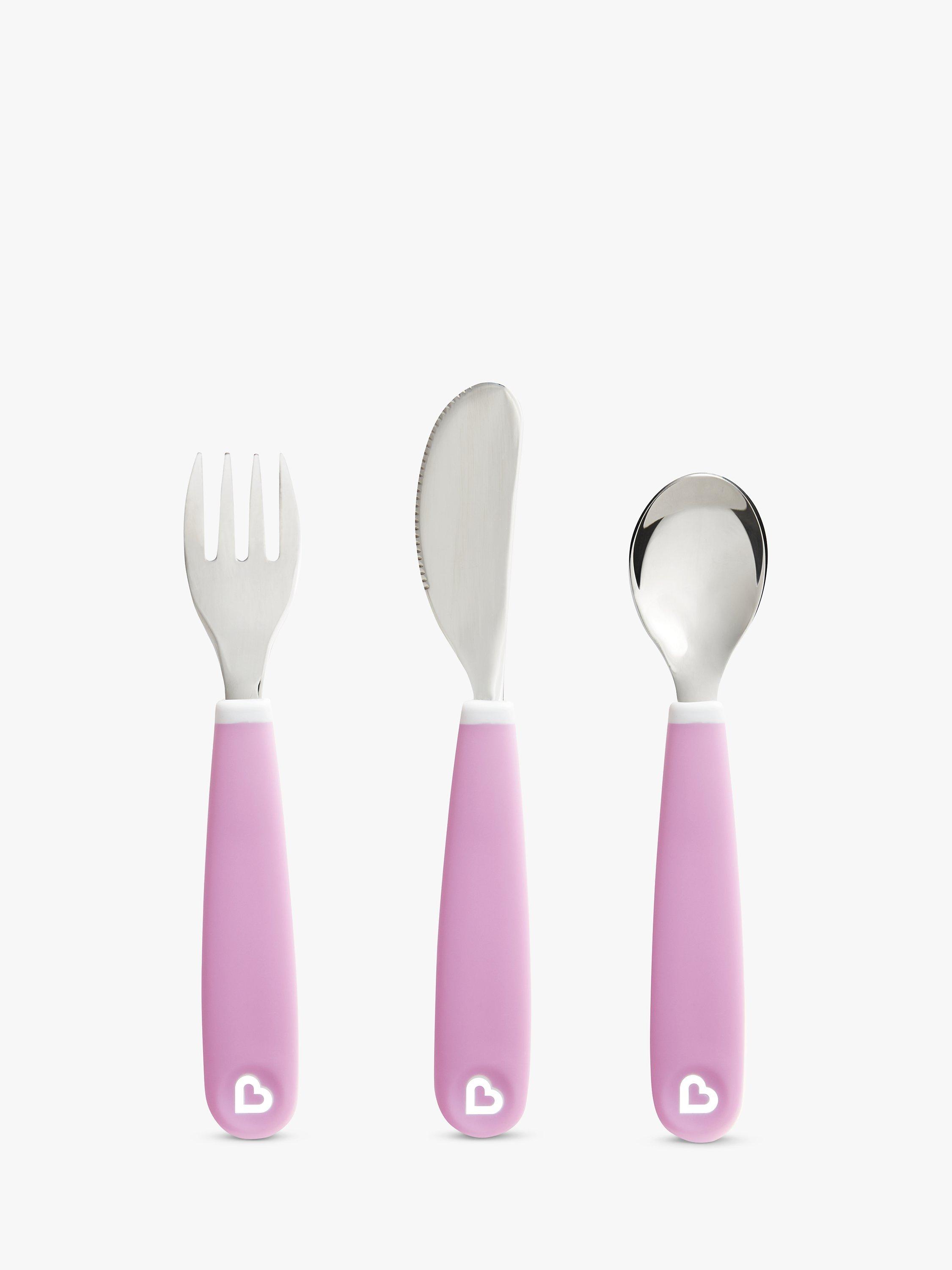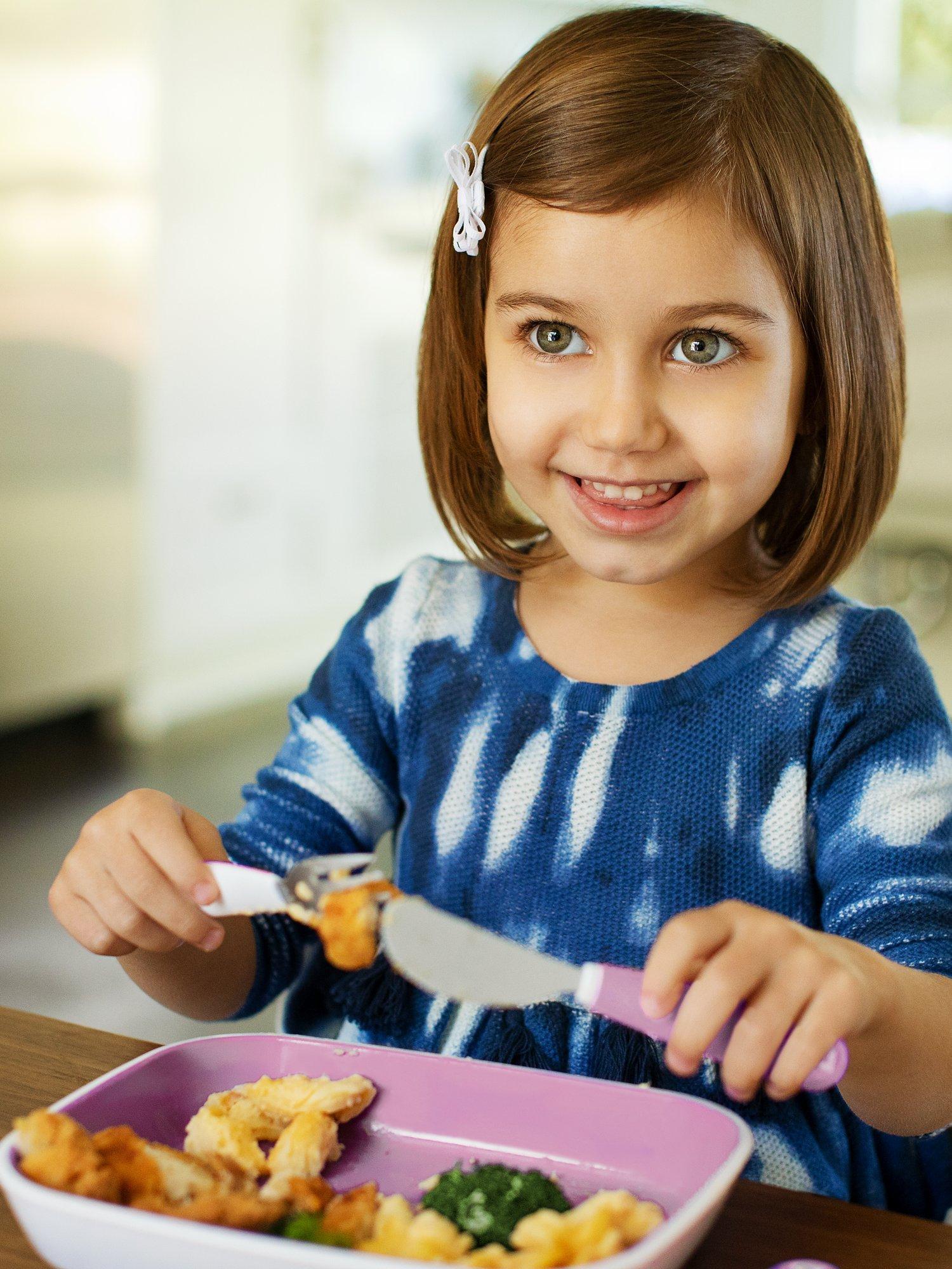 Self-feeding is a multifaceted milestone. Once they feel comfortable enough to eat on their own, they need to master using utensils, too! Nudge them in the right direction with Splash™ toddler flatware. Designed especially for little mouths and hands, this fork, knife and spoon set brings self-feeding up a notch with comfy, easy-to-grip handles and an array of fun colours. Toddlers will love eating like grown-ups at the dinner table, and because these kid-friendly utensils were created with their safety and size in mind, they’ll embrace independent eating with ease. Hooray for that!