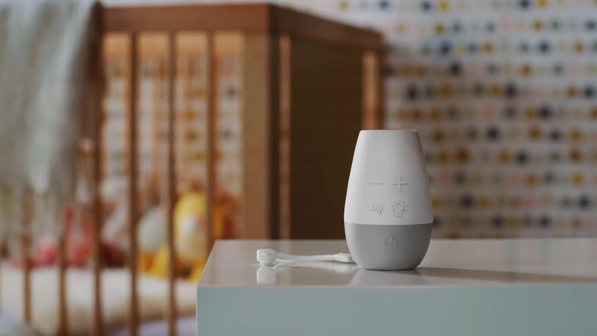More sleep, less crying. This sound machine features (3) different sounds - shushing, heartbeat and white noise. The handy timer will automatically turn off the unit after a period and the soft night light can glow solid or pulse.