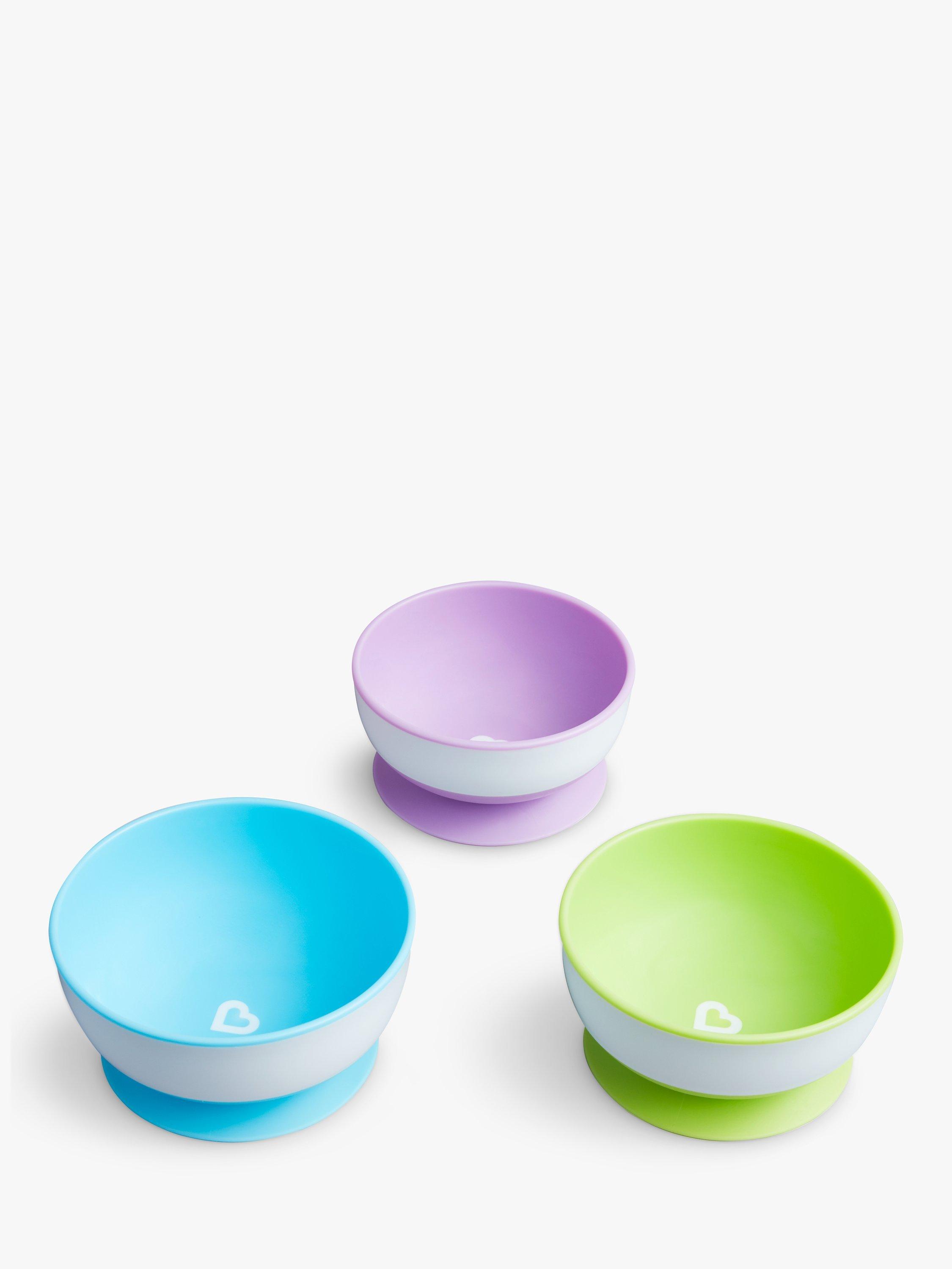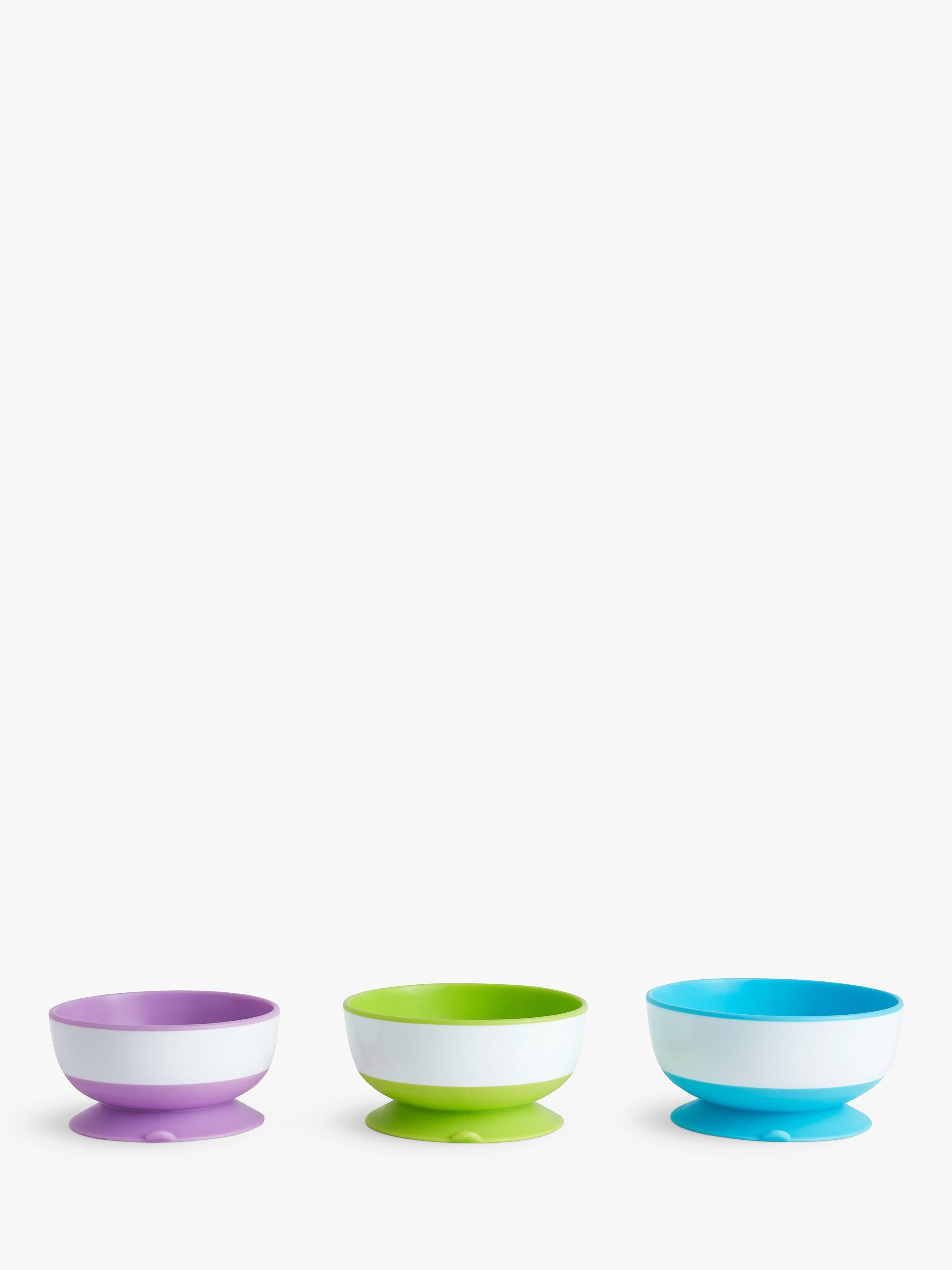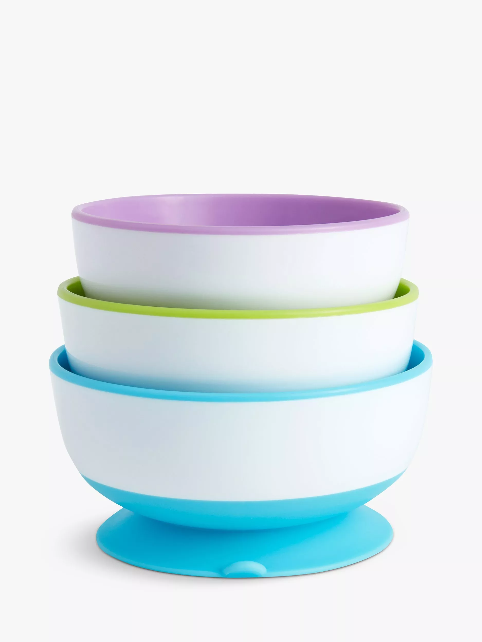Let's face it, toddlers can get a little rambunctious at dinner time (make that all the time), but you no longer have to duck for cover from a flying bowl of macaroni and cheese. Minimise unnecessary messes with this convenient three-pack of Stay Put™ suction bowls, designed with kids, toddlers, and babies in mind. The strong suction base will adhere to most surfaces, and the quick-release tab makes removal easy for adults. Microwave and top-rack dishwasher safe, food prep and clean up are easy and quick, too. Baby weaning has never been easier.