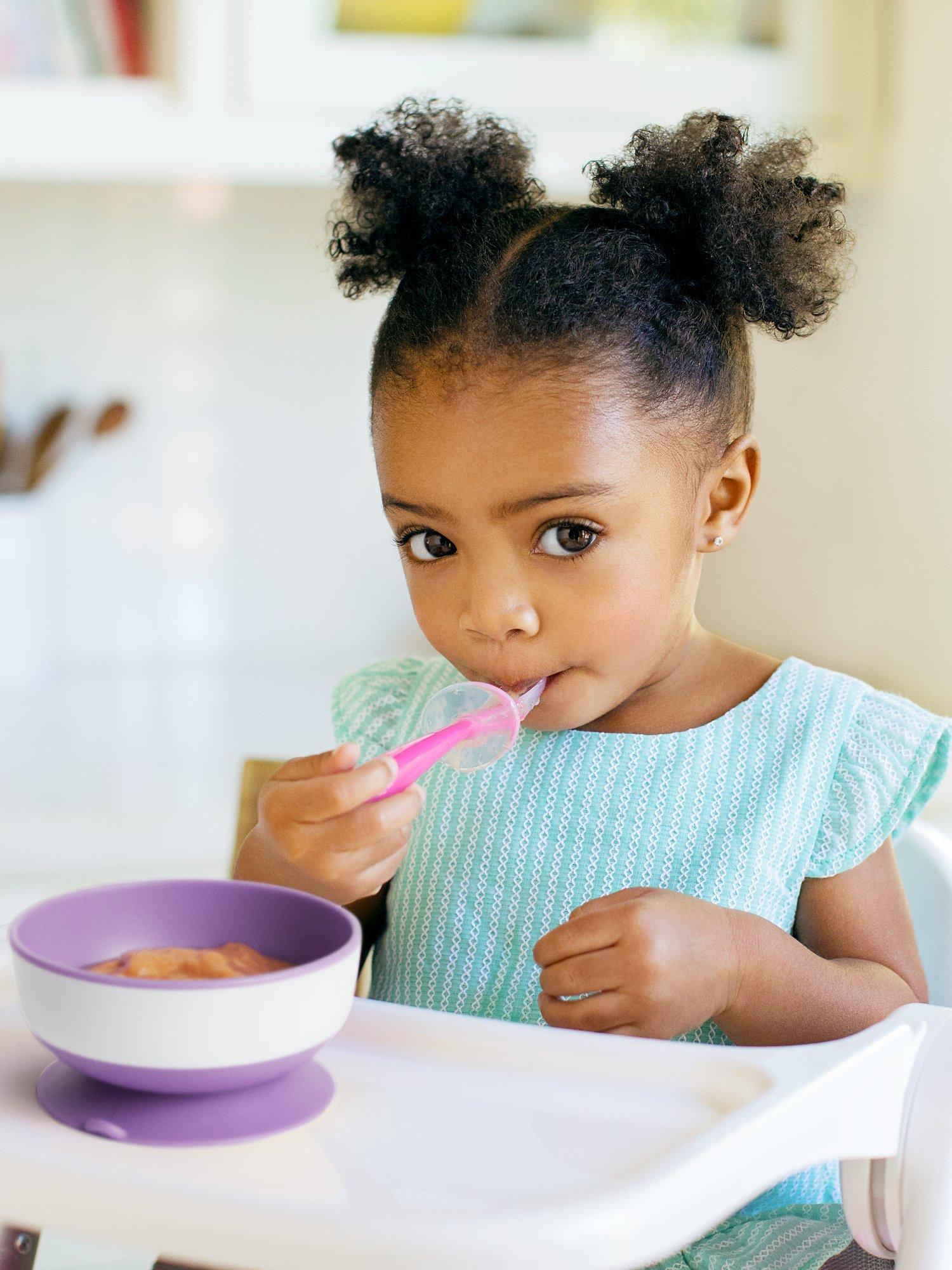 - Strong suction base helps prevent messes and spills while baby is weaning