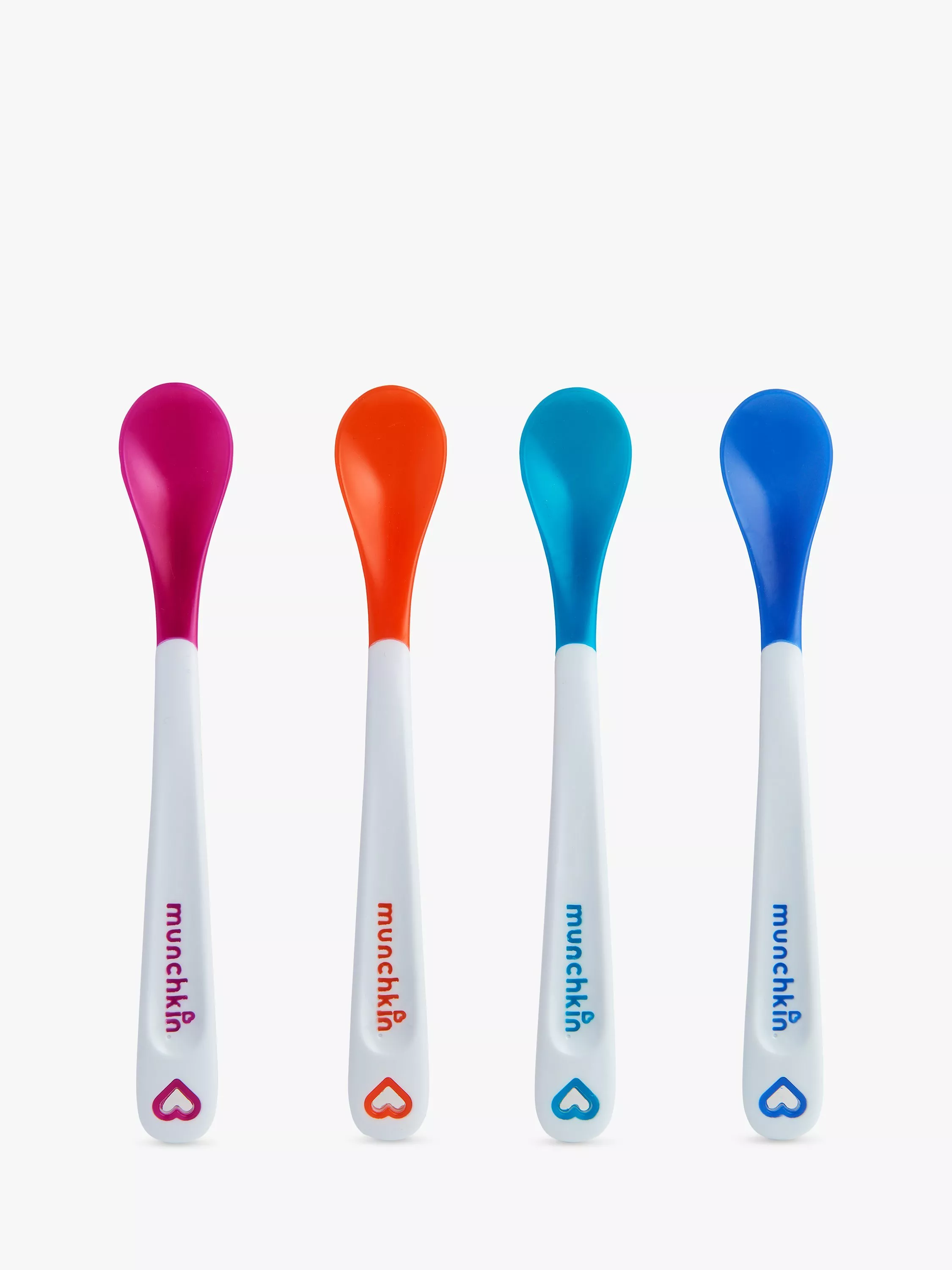 Starting solids? It's a fun, but at times tricky milestone to figure out - you're constantly questioning whether food is too hot, too cold, or just right. Munchkin's innovative White Hot® Safety Spoons can help make those first feedings easier to swallow for both of you. Simply dip the tips of the spoons in heated pureed baby foods to check if it's too warm. If the tip turns white, the food is too hot for baby to eat. Wait for it to cool, dip again, and if the tip is no longer white - voila! You can feed your little one without worrying about a thing.