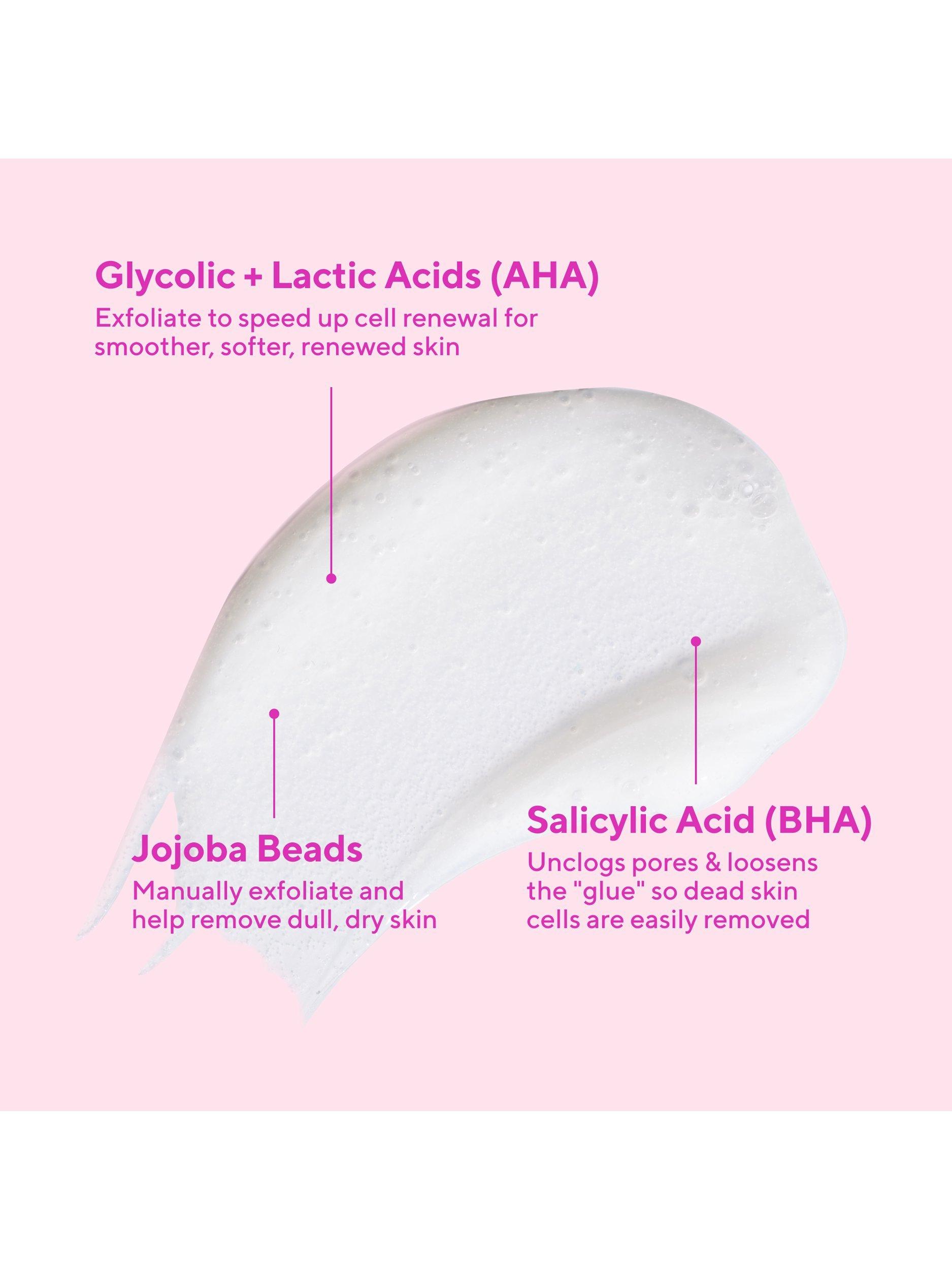 This unmatched formula has been enriched with an acid blend (salicylic, lactic, glycolic) to encourage cell turnover and reveal smoother, softer skin. The Jojoba beads help manually exfoliate and remove dry and dull skin. Sodium and liquorice extract help retain moisture and soothe.