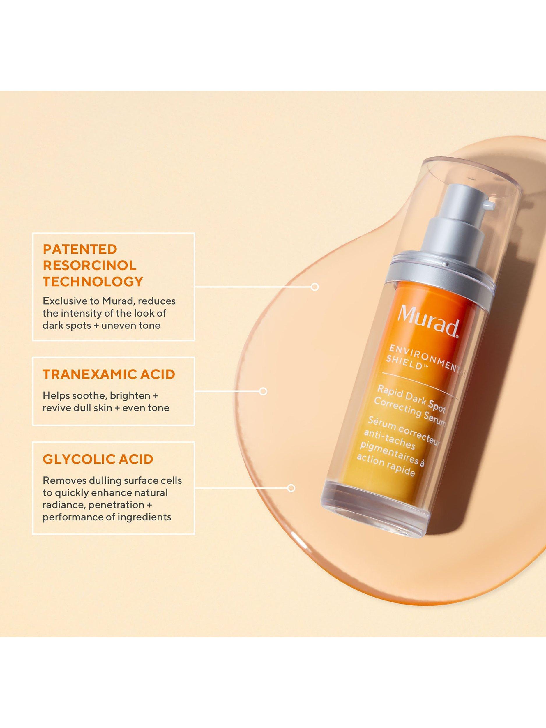 Dr. Murad's next generation of powerhouse brightening ingredients takes on the look of the most stubborn dark spots while treating your skin with the same care that a dermatologist would. This transformative, daily use serum goes one step beyond correction with antioxidant resorcinol that helps prevent the look of dark spots for more even skin tone in the future. Glycolic acid, one of the first and most sought-after exfoliants in Dr. Murad’s dermatology practice, removes dulling surface cells to quickly enhance natural radiance, penetration and performance of ingredients for better results.