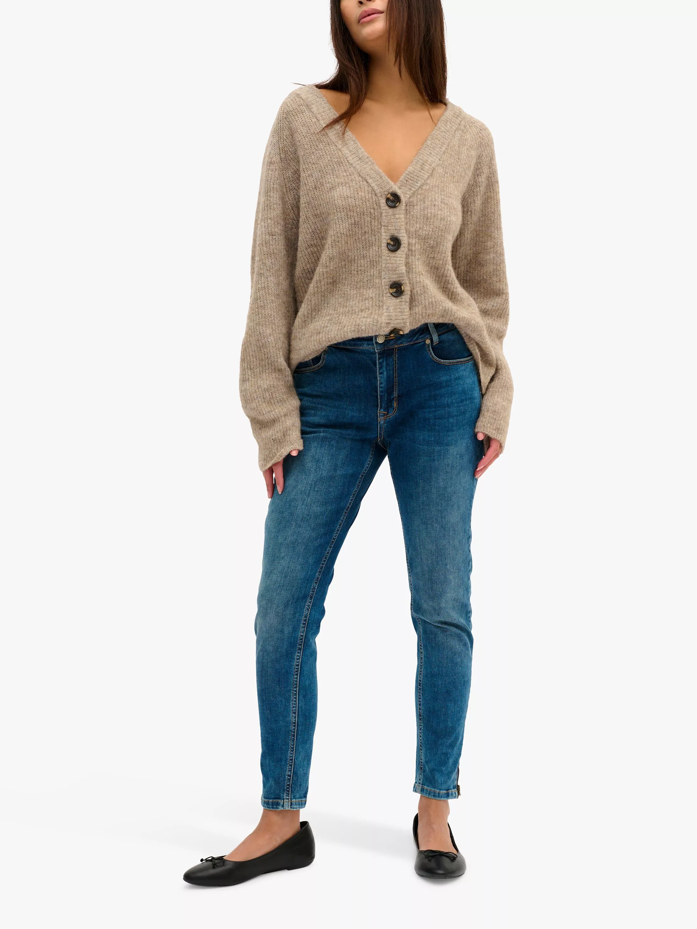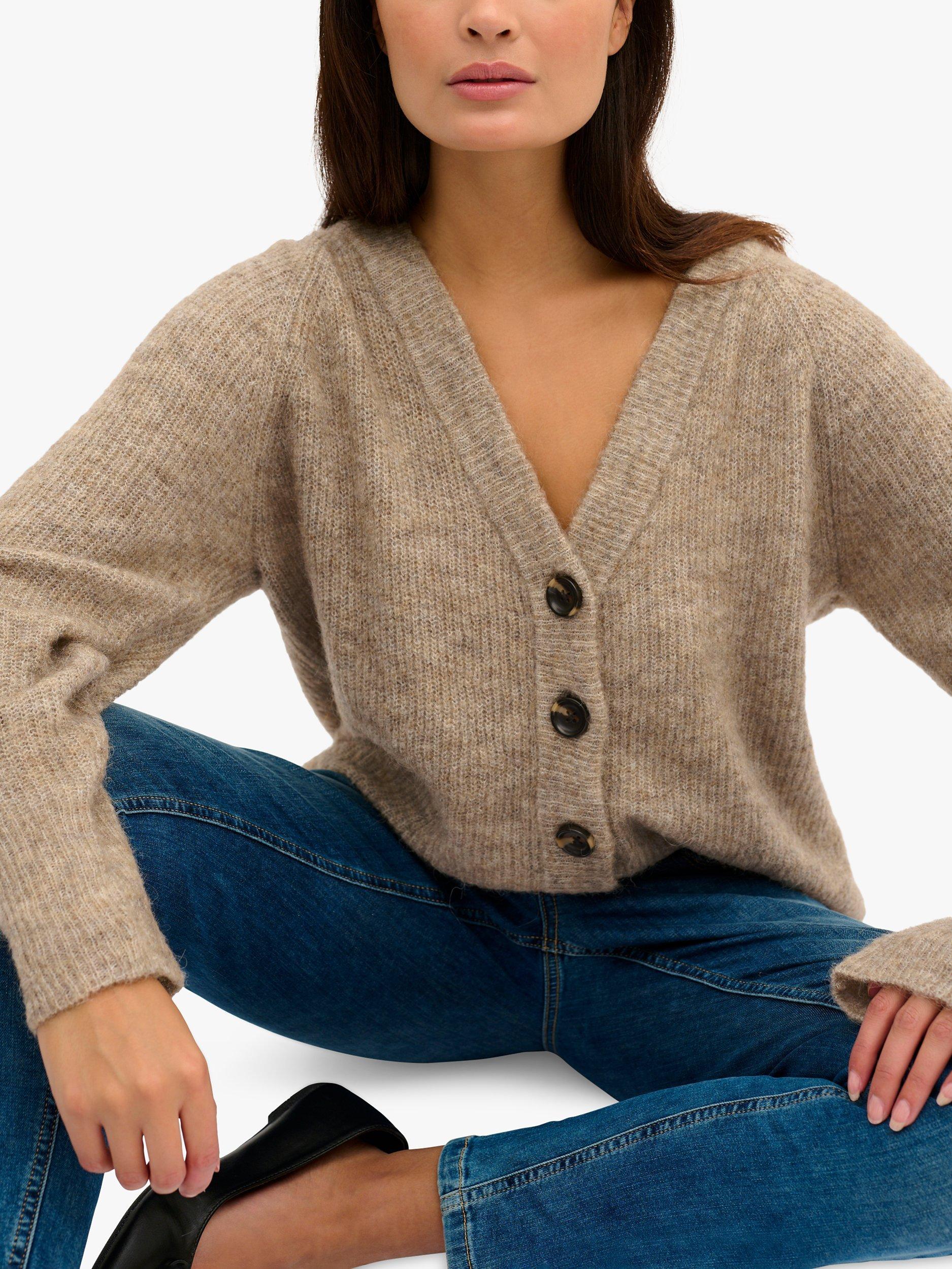 This knitted cardigan is a soft and cosy option in a rib knit fabric. It has a casual fit and a deep V-neck whilst the relaxed fit sleeves come down below the knuckles for added warmth. The cardigan is fastened with five large buttons.