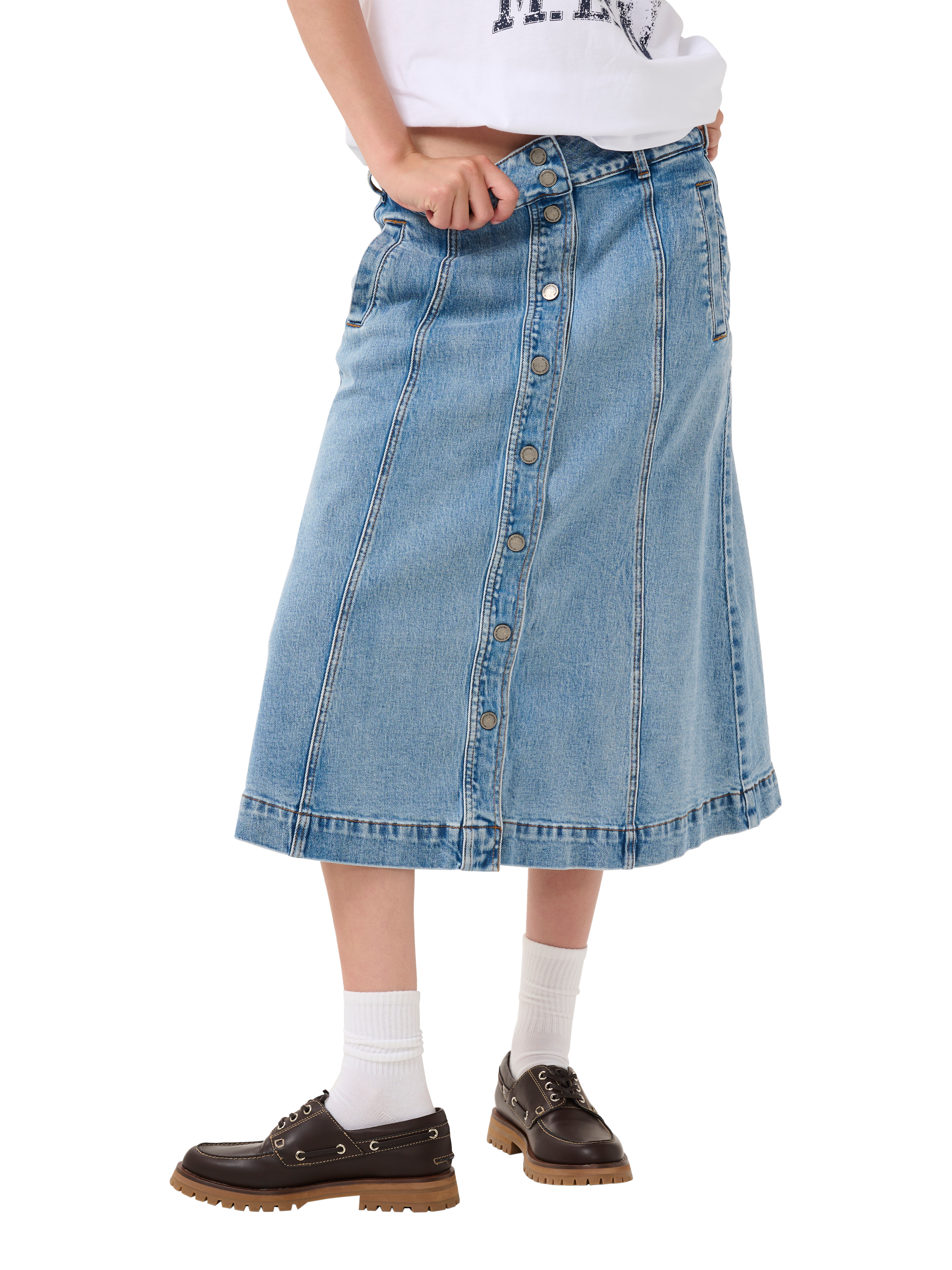 MY ESSENTIAL WARDROBEDango Button Front Denim Skirt, Light Blue Retro Wash