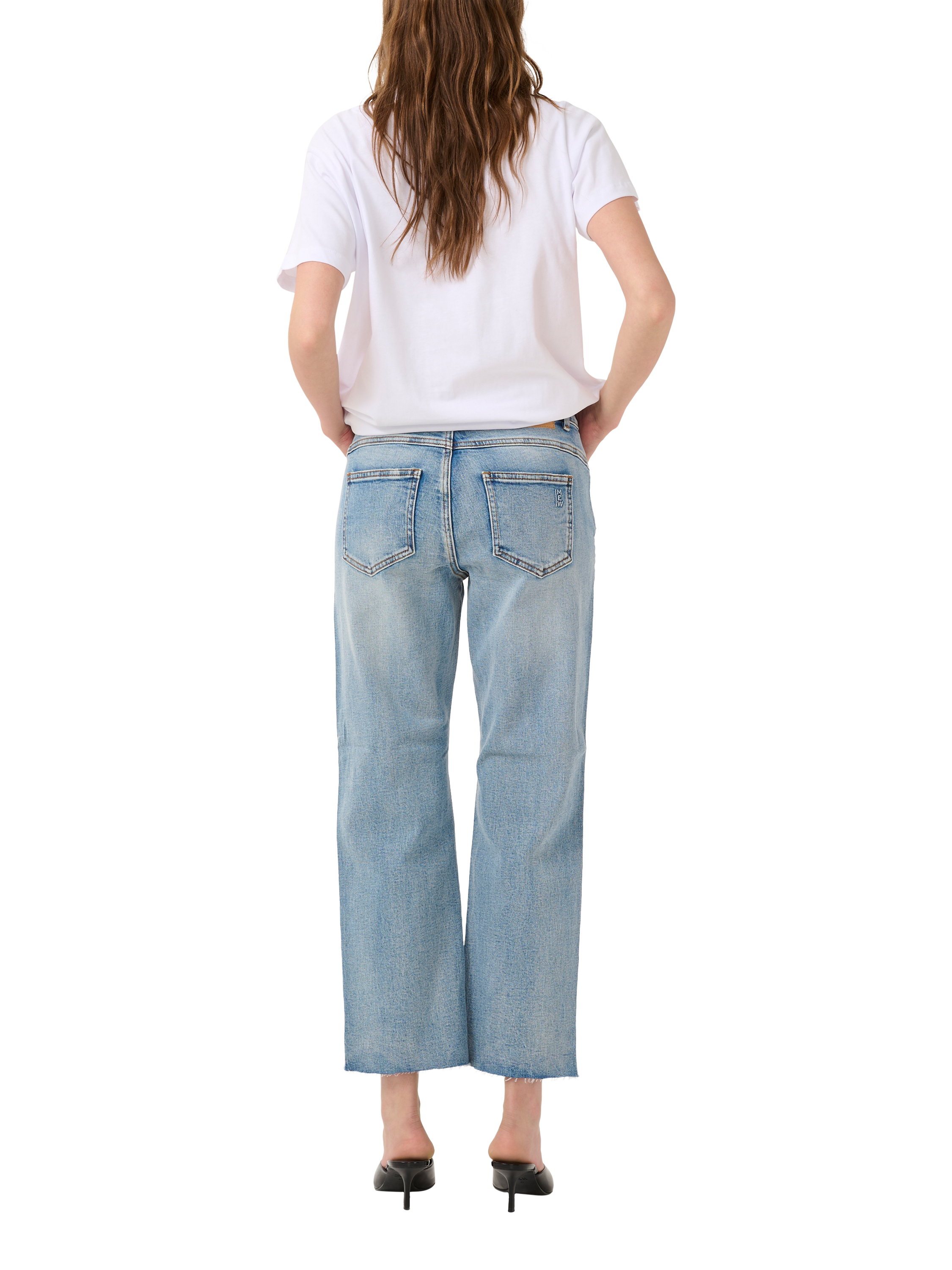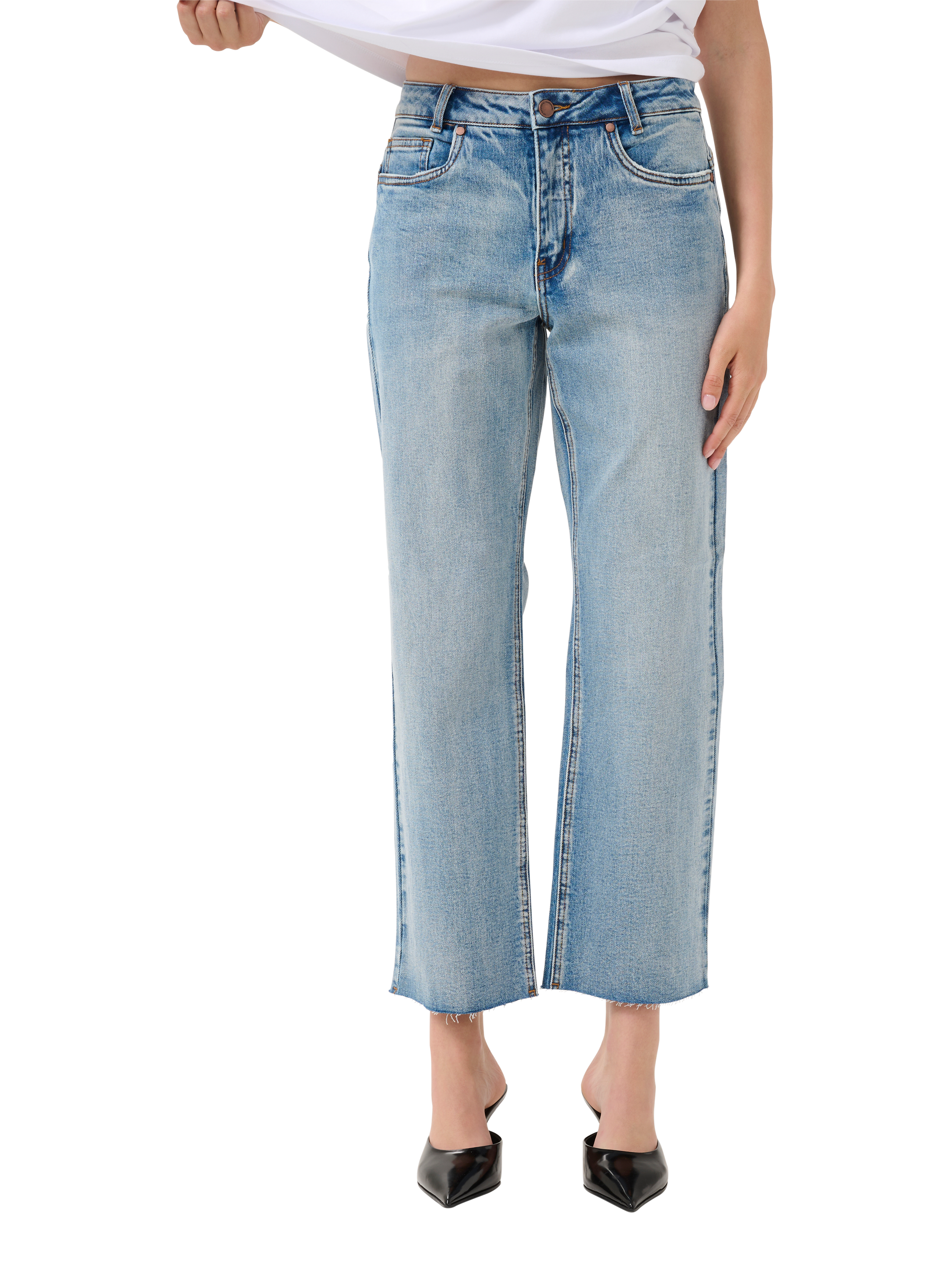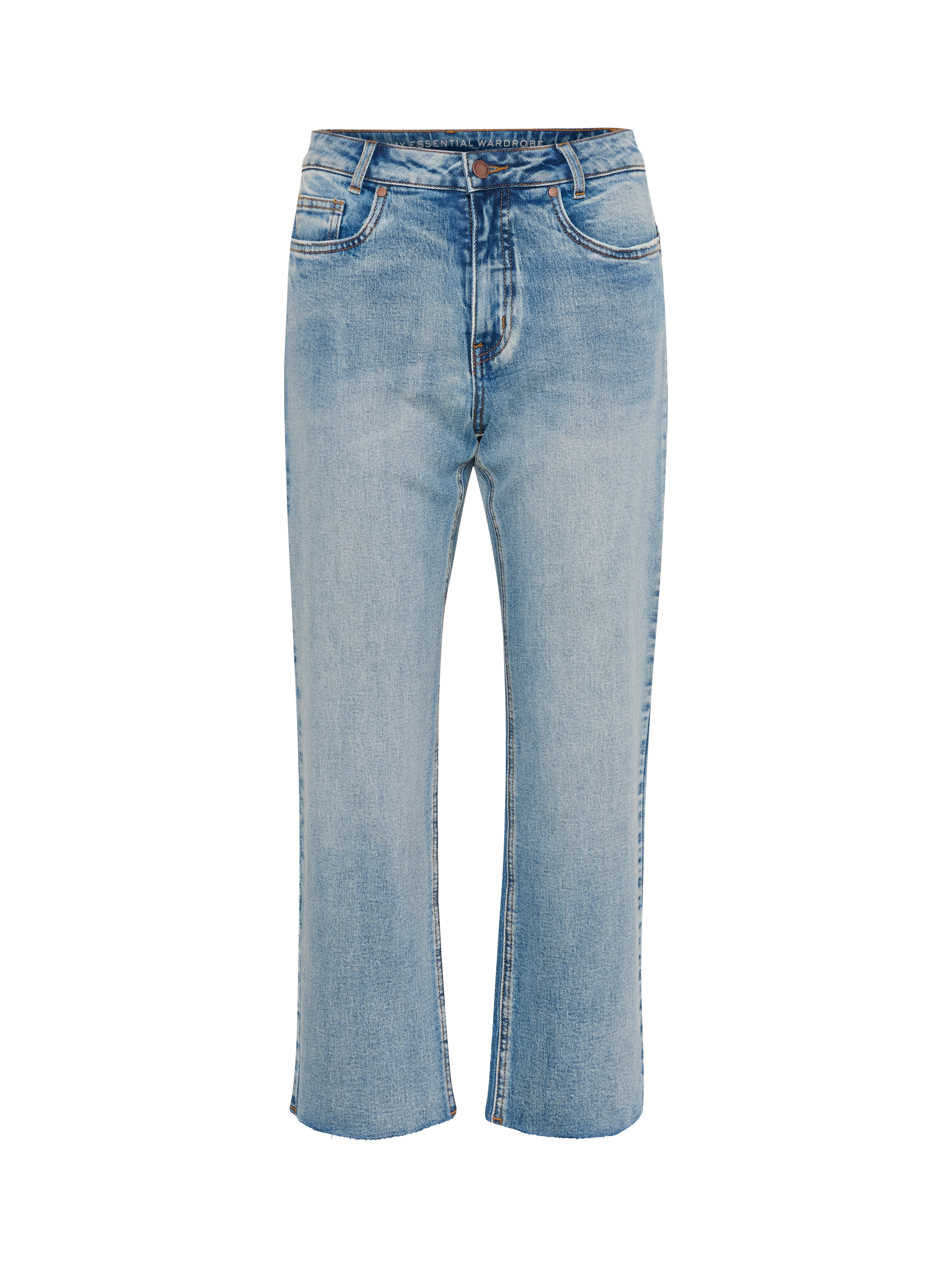 This pair of retro high-waisted jeans from MY ESSENTIAL WARDROBE is made from a cotton blend for breathable wear and is cropped at the hem.