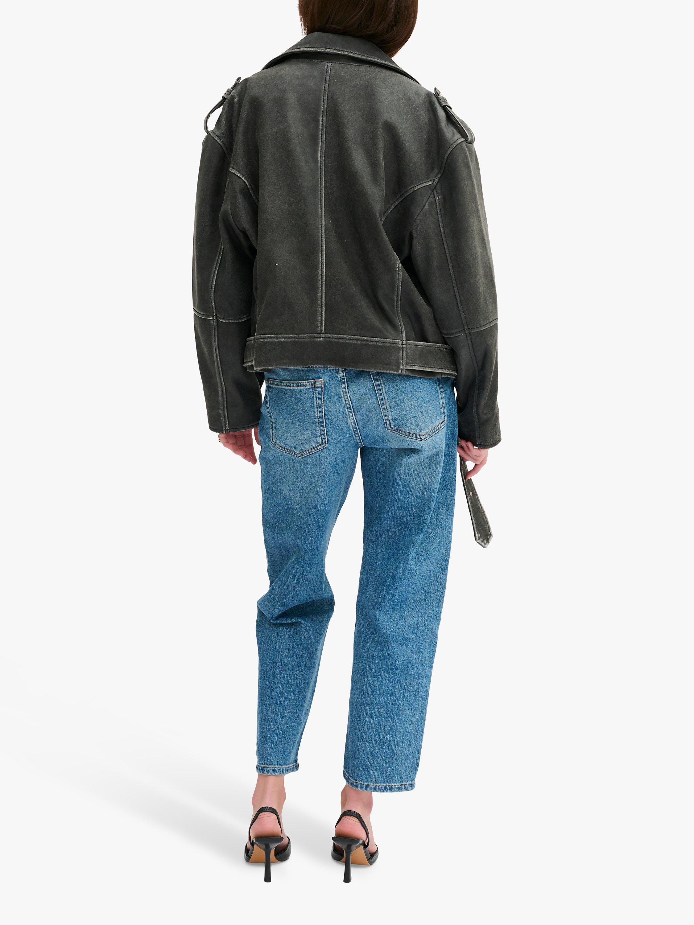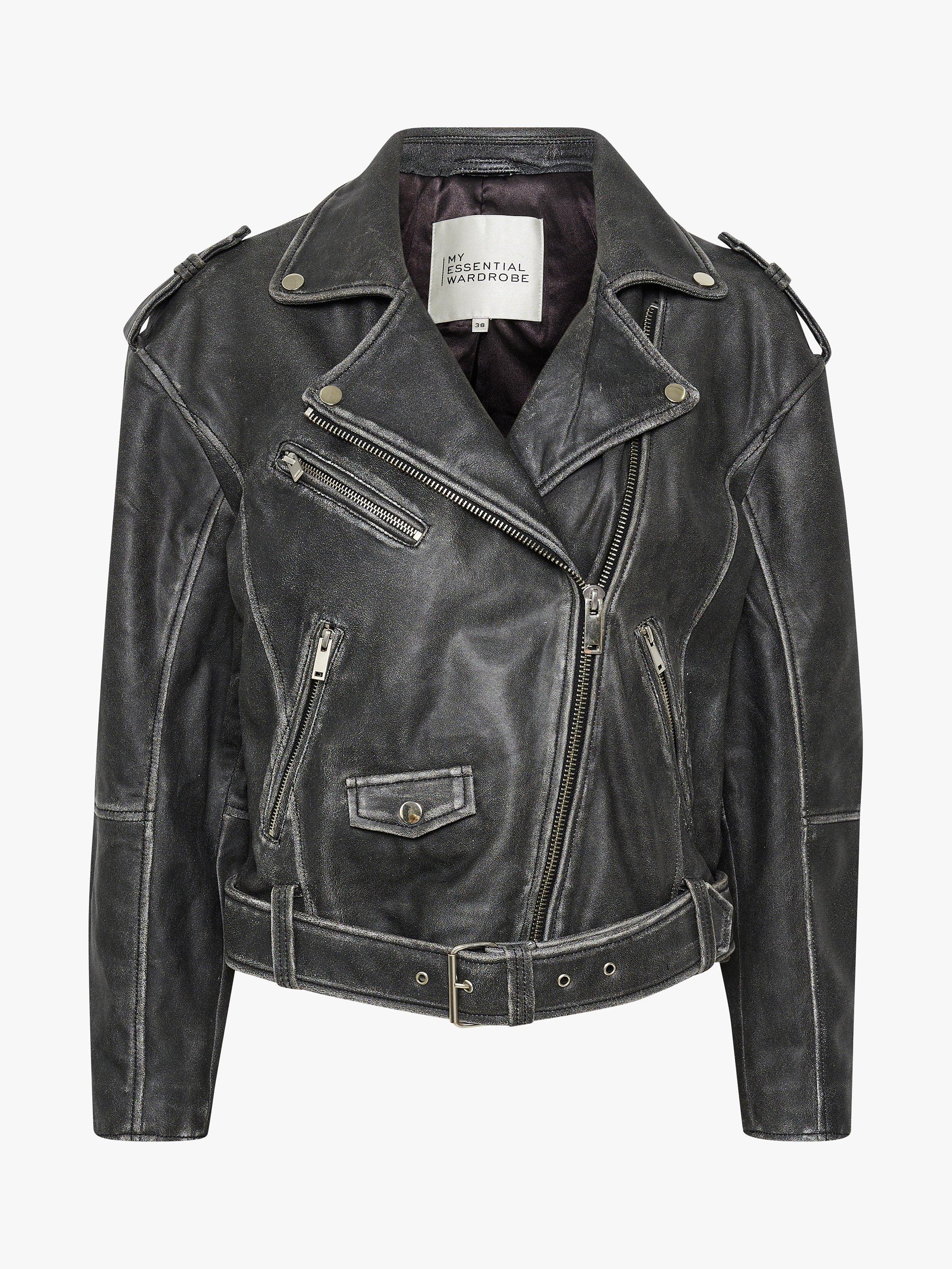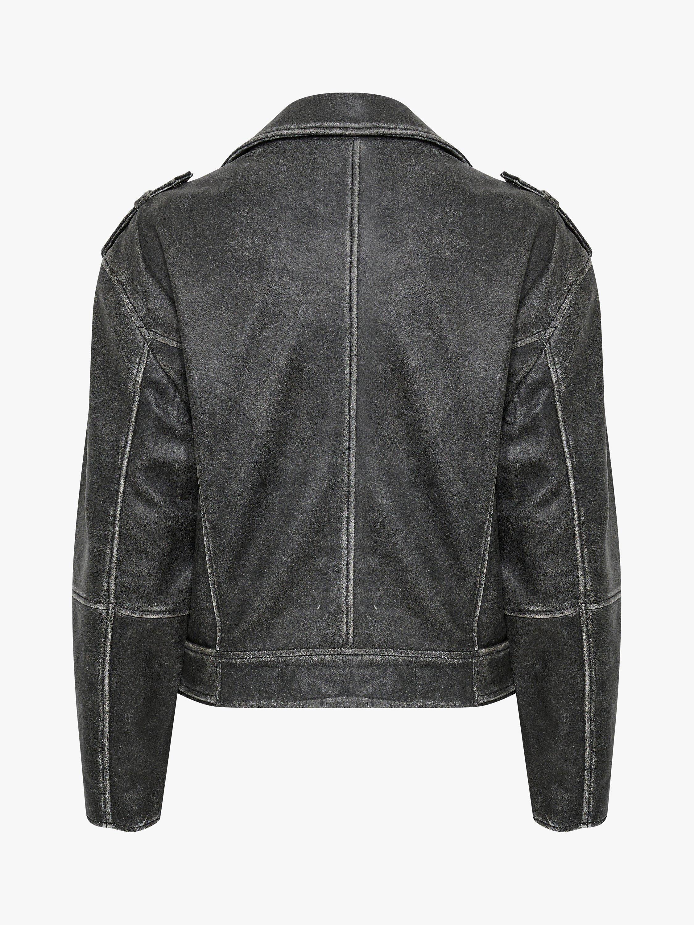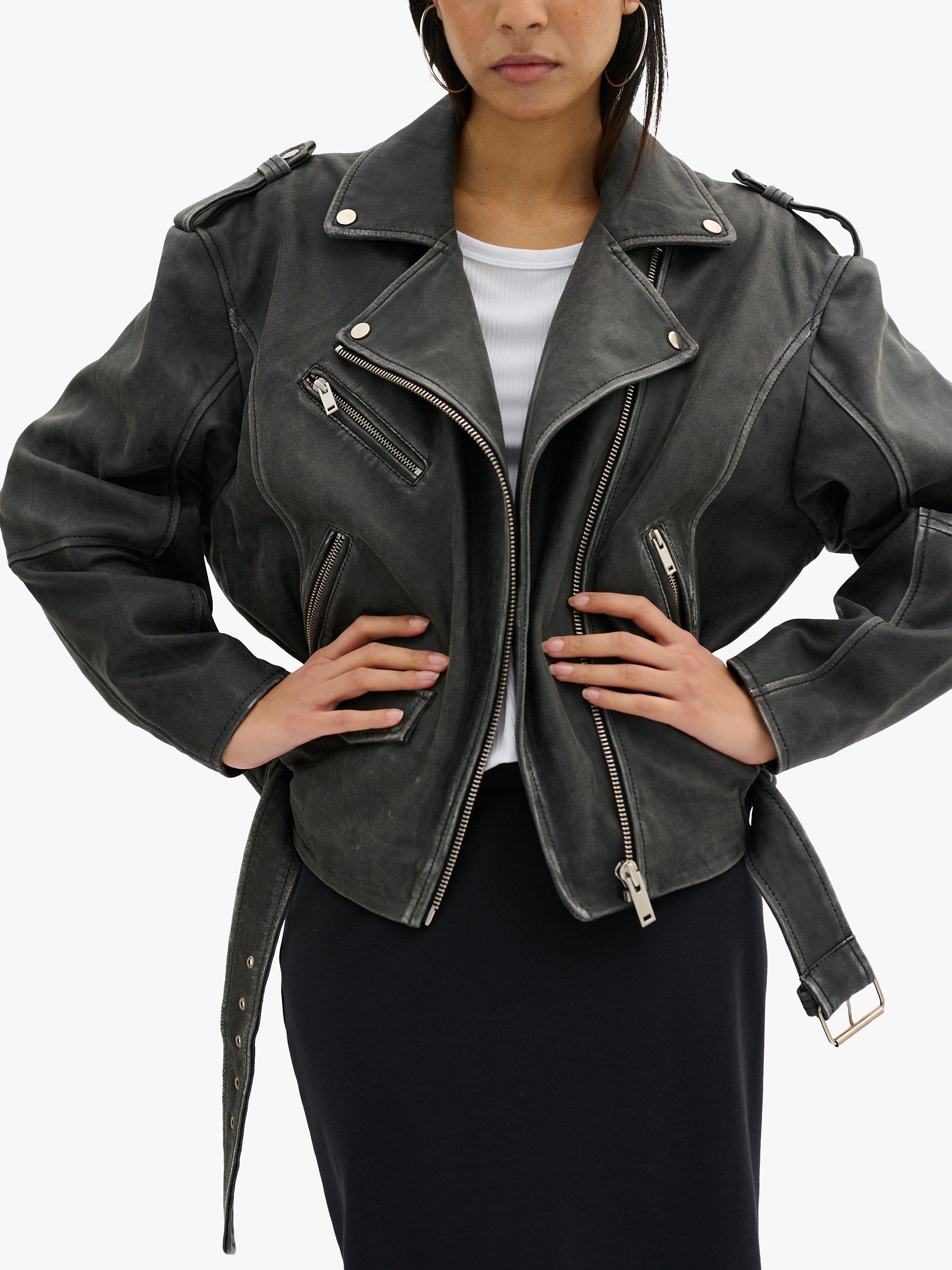 The Gilo jacket is a cool biker jacket made in lamb leather. It has an oblique zipper fastening and notched collar that can be buttoned down. On the front it has oblique zipper pockets, an oblique chest pocket with a zipper, and a small flap pocket on the stomach. The jacket is made with buttoned shoulder tabs and it has a belt at the hem.