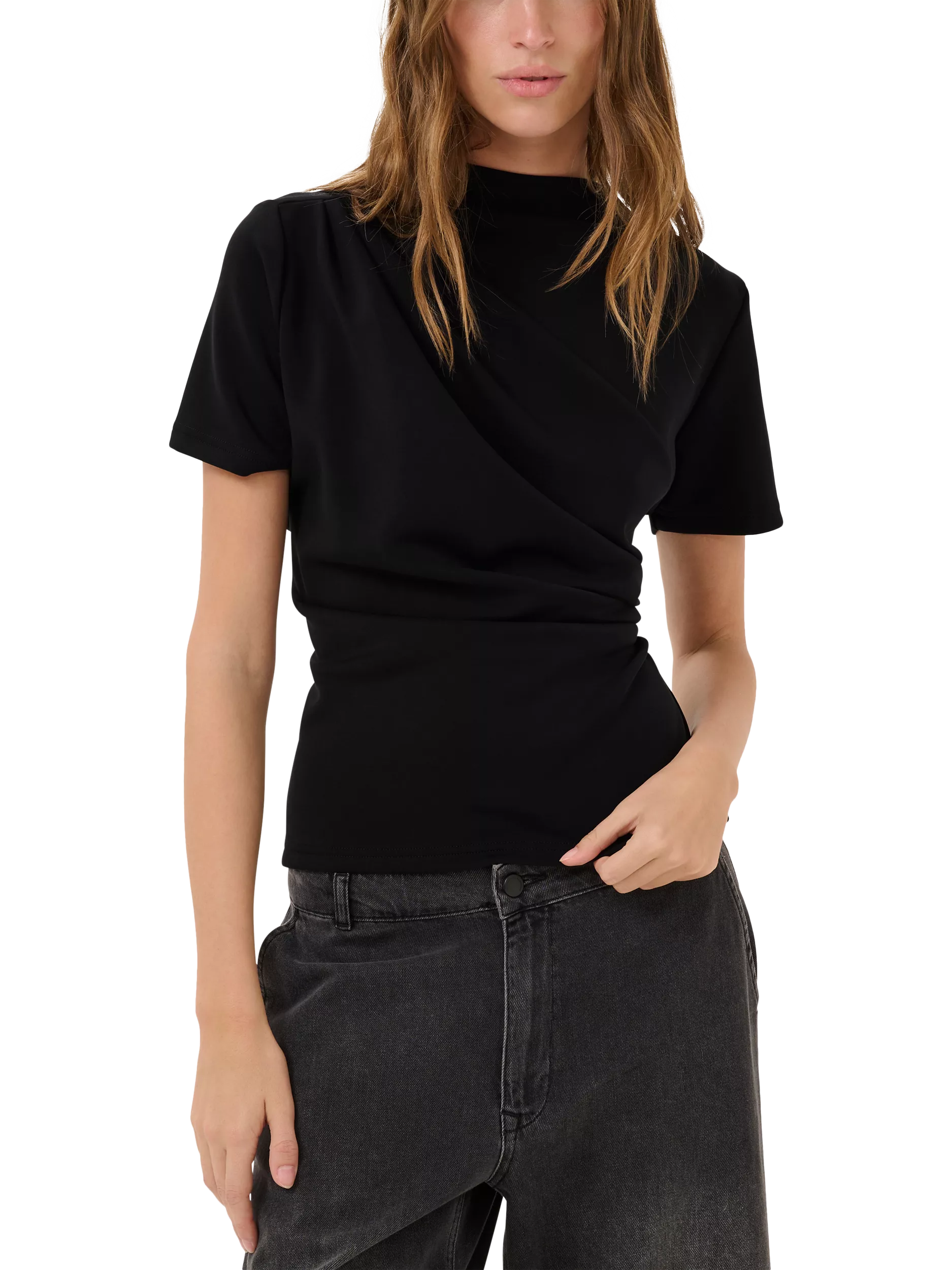 A solo piece or layering staple, this t-shirt by MY ESSENTIAL WARDROBE features a softly draped front. With a high neckline and short sleeves, it is made with durable fabric for longevity of wear.