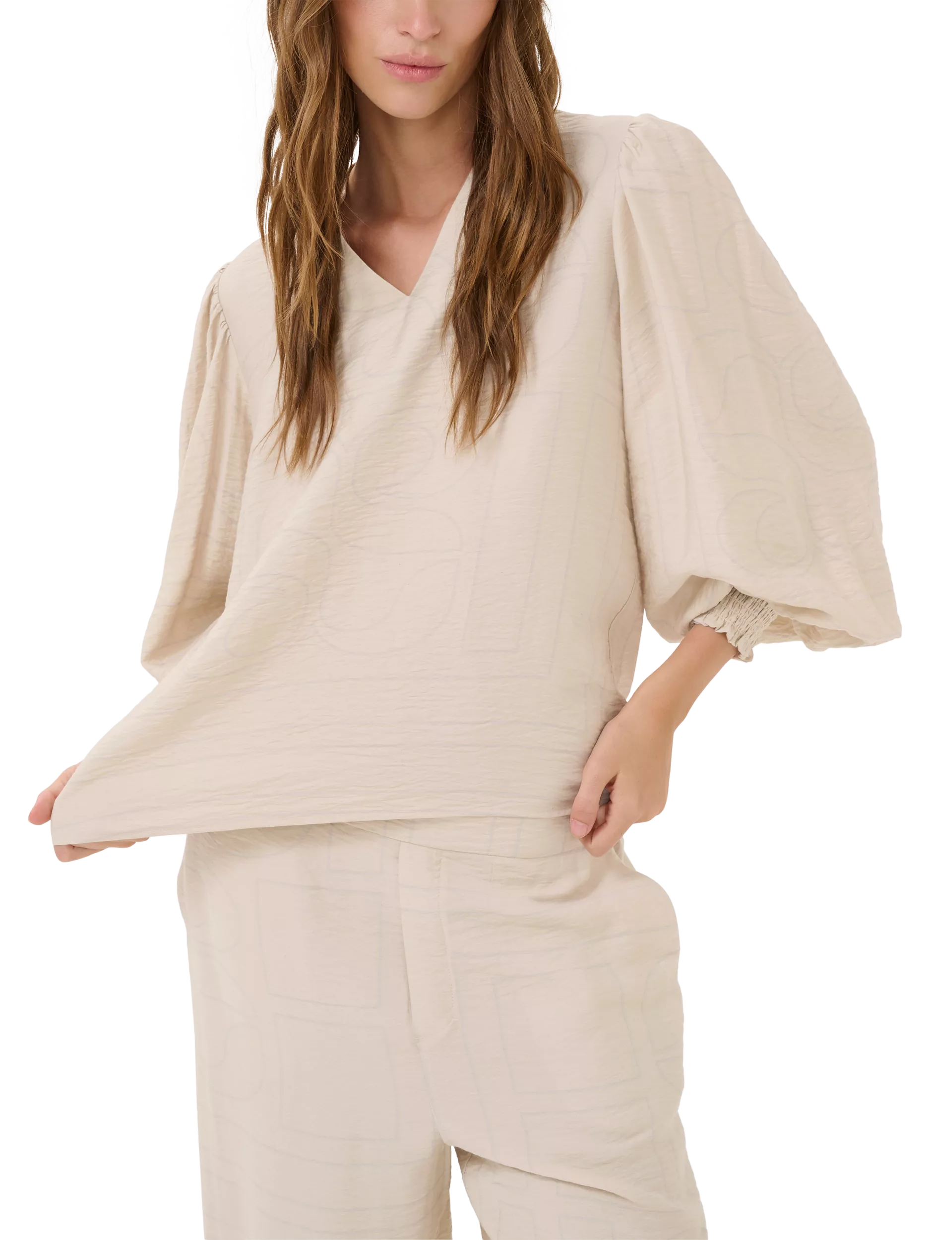With a flattering v-neckline and long balloon sleeves, it is made with light yet robust blended fabric for longevity of wear and will slot seamlessly into your everyday staples. Perfect for any occasion!