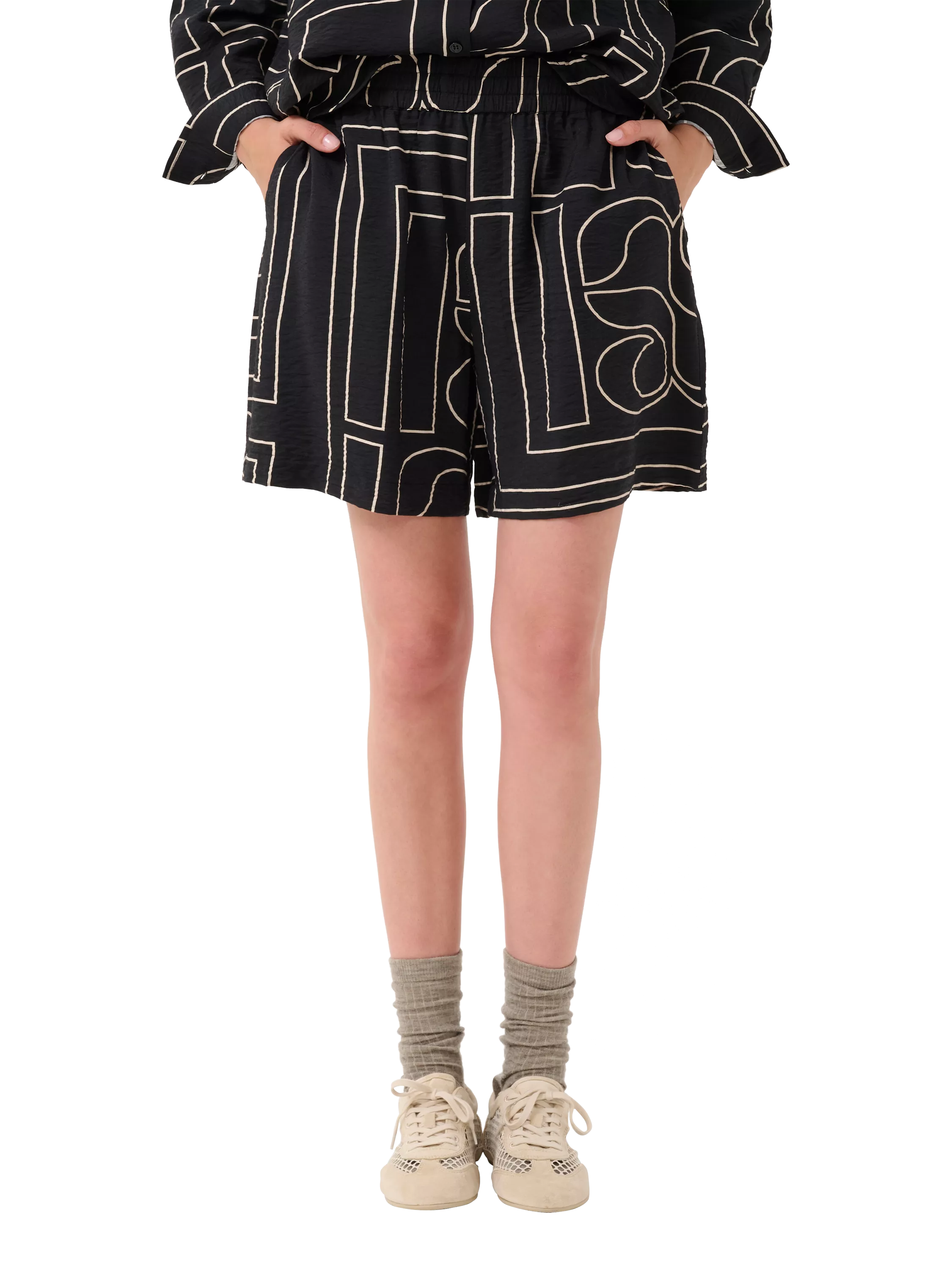 Refreshing your edit with a dash of personality, these stripe print shorts from MY ESSENTIAL WARDROBE are made from an airy viscose blend. For an easy casual style, accent with a Panama hat, an oversized shirt and sandals.