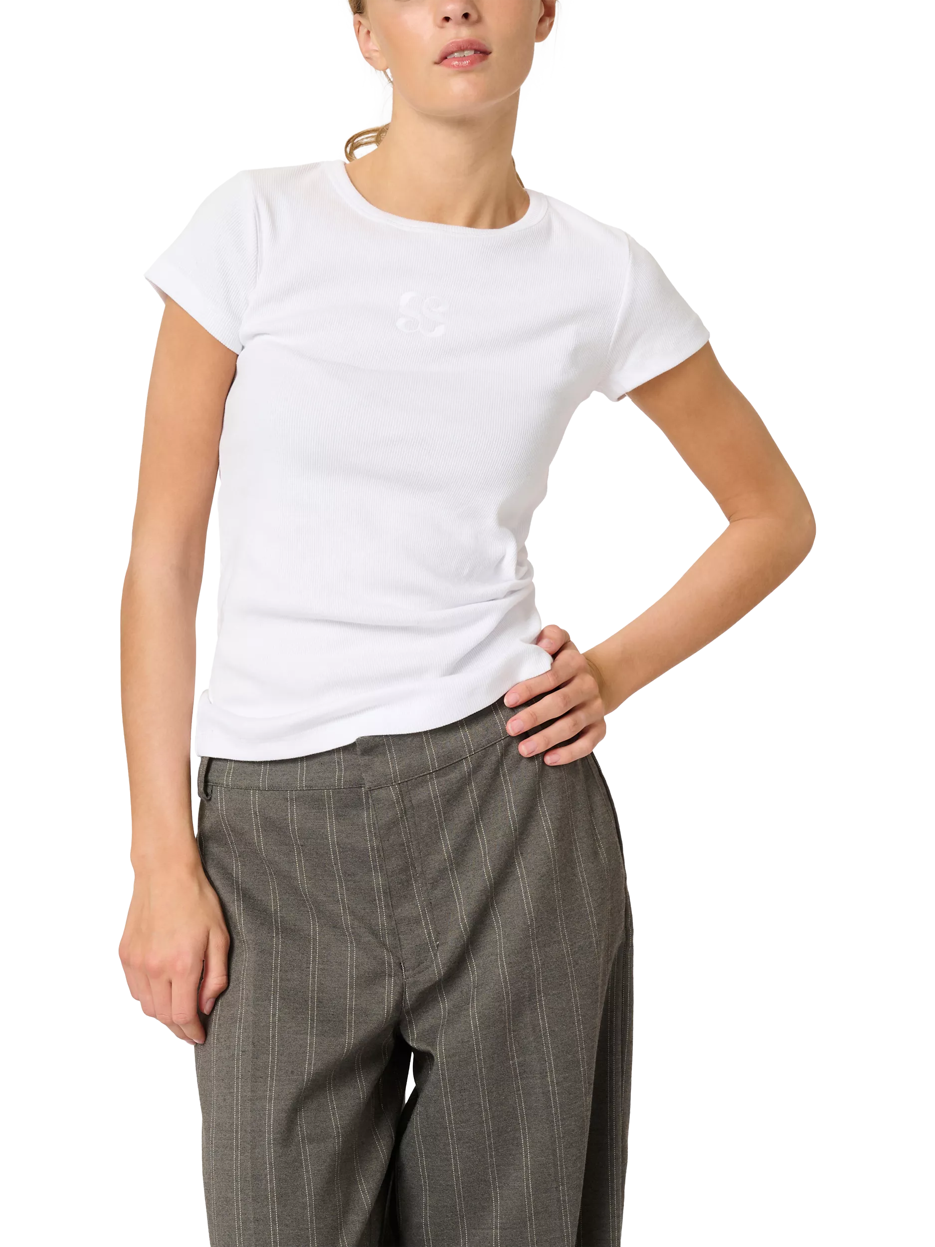 For the casual every day, this t-shirt from MY ESSENTIAL WARDROBE is made from a soft cotton blend with a crew neck and short sleeves.