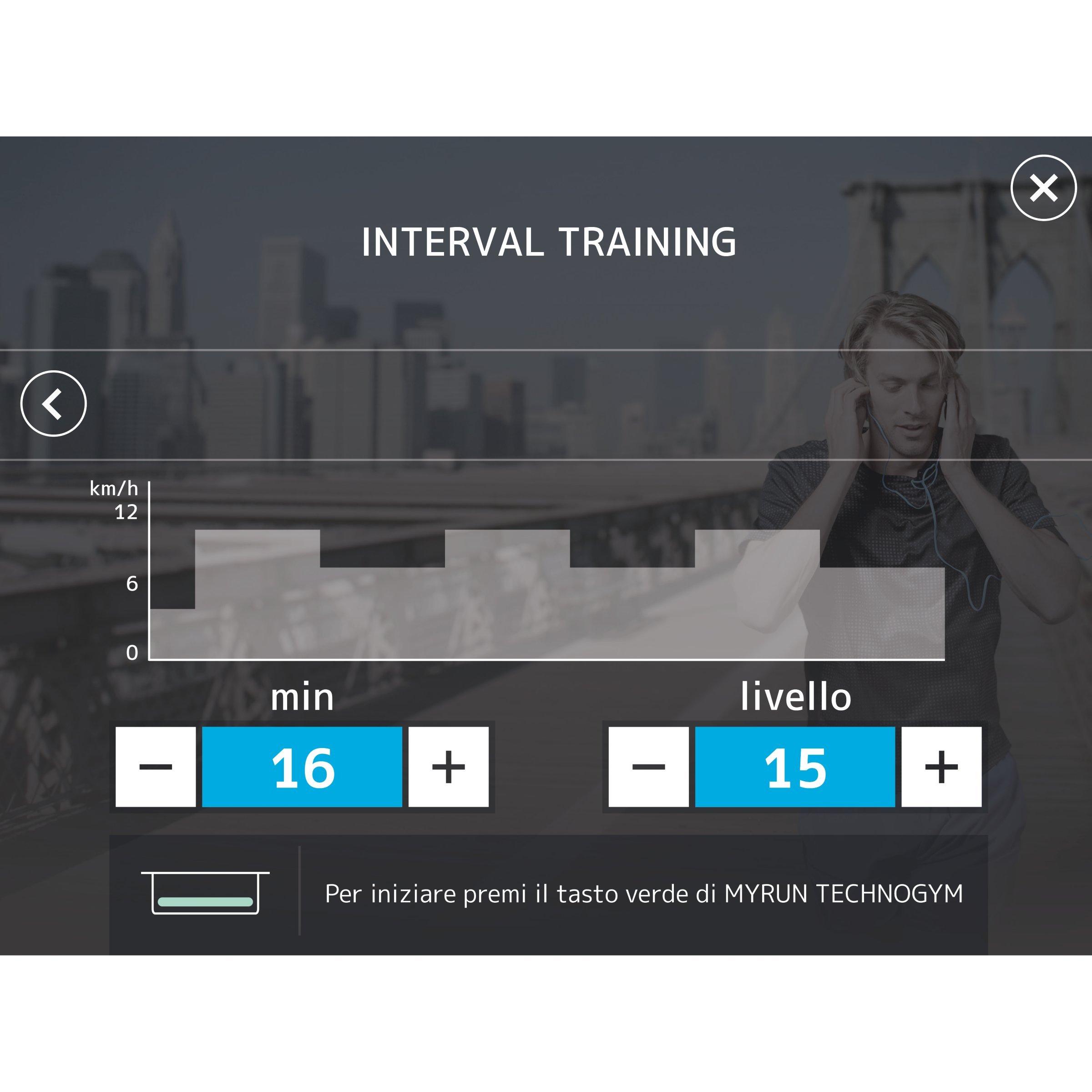 Developed by Technogym, their RUNNING RATE innovation helps you to improve your run, increase your efficiency and reduces your risk of injury by helping you find your ideal step frequency in relation to your speed. Whatever your goals and objectives are, the MYRUN Technogym treadmill has a training programme for you that will help you plan your training sessions and routines.