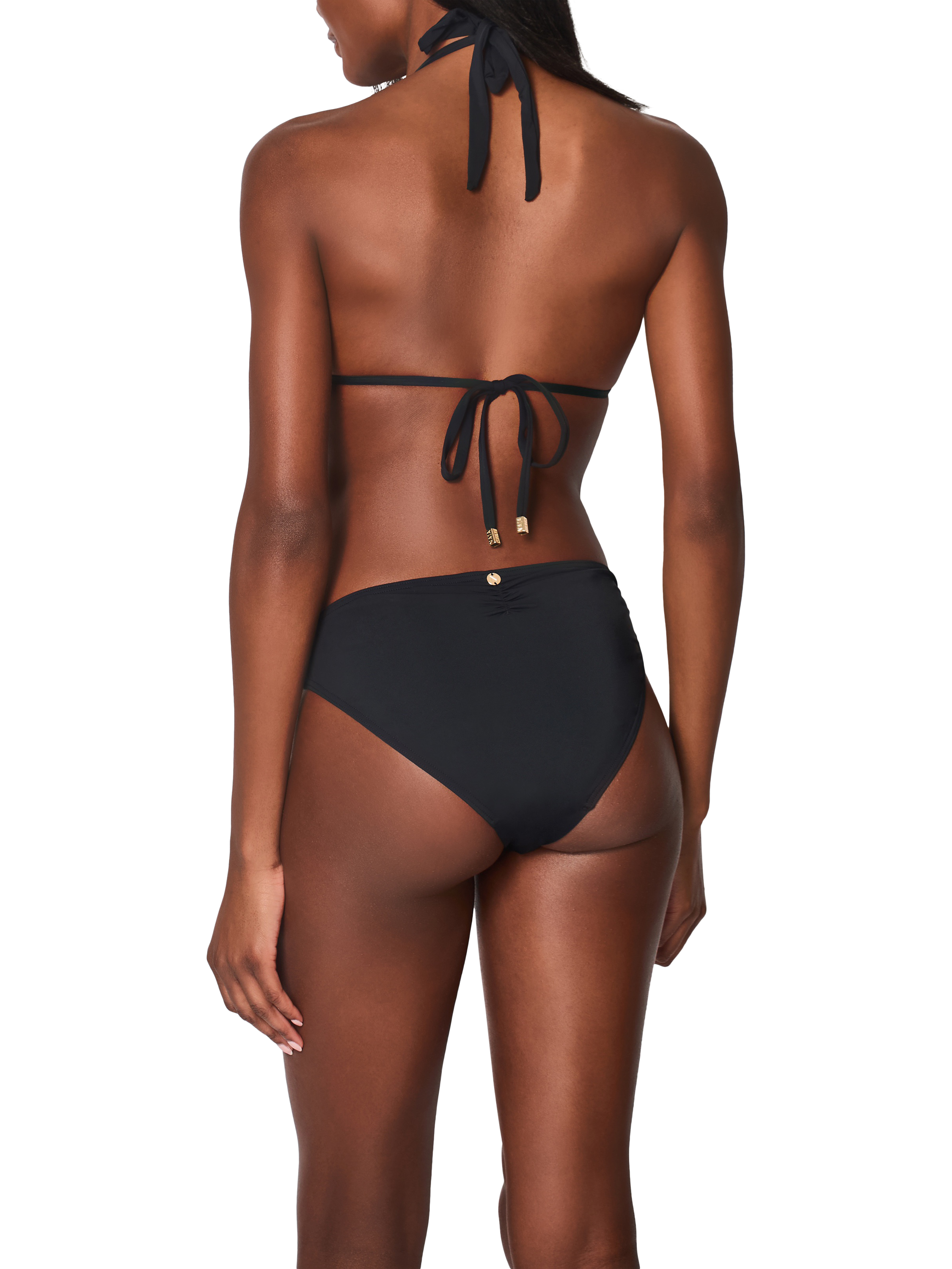 A moderate coverage, pull-on brief with perfectly positioned trim detailing at the hips. Also features a ruched back to accentuate shape.