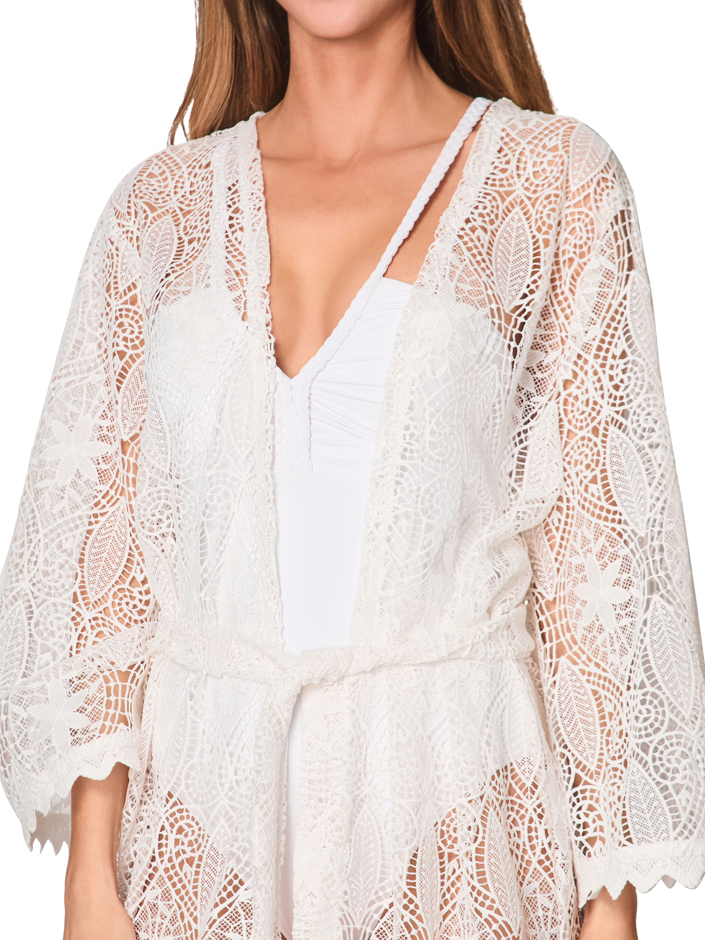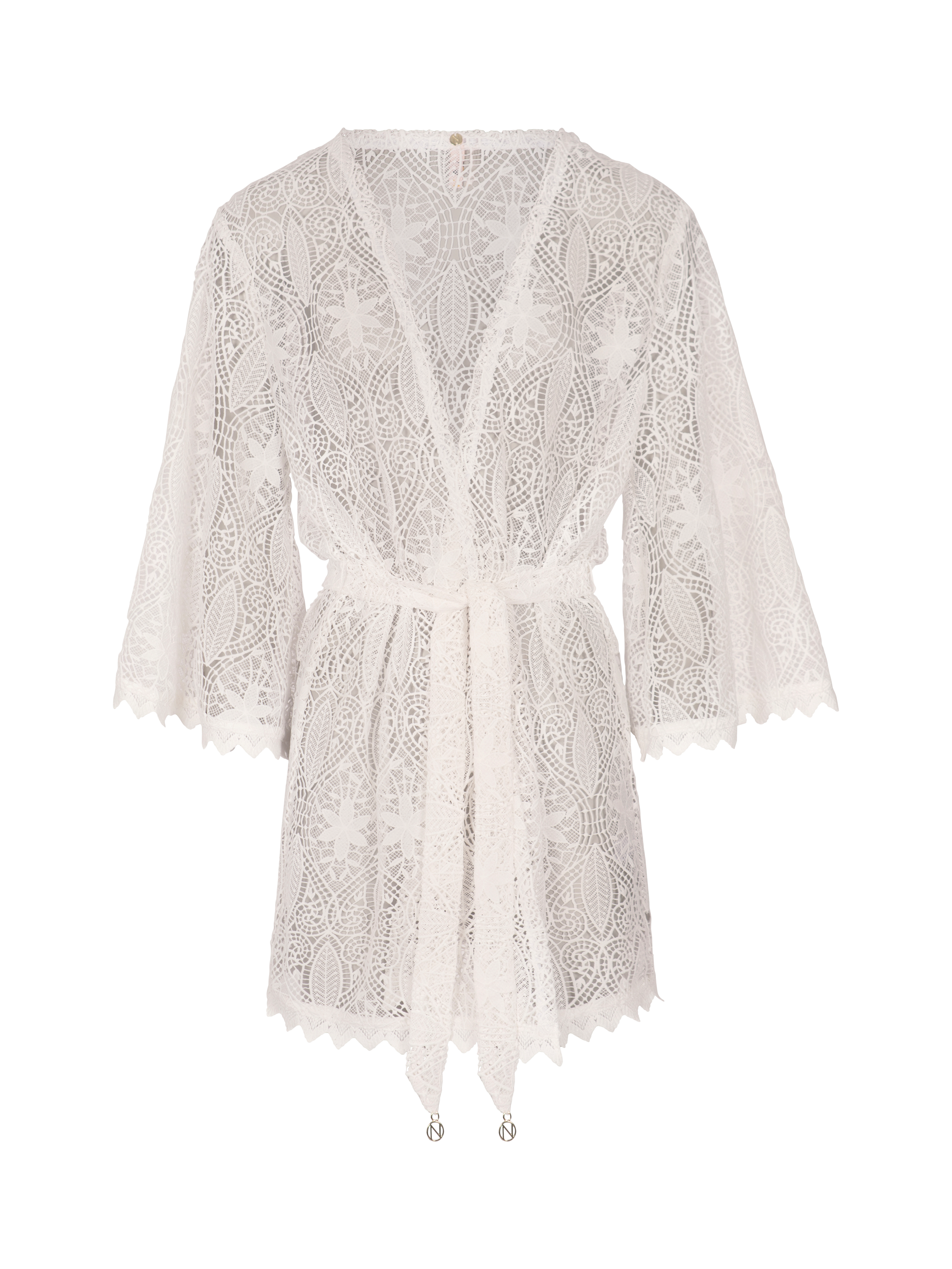 Designed to layer over your favourite NAIA swimwear, her relaxed fit and scalloped lace trim sit perfectly against sun-kissed skin. With glamour and sophistication woven through, her delicate detailing of intricate lace and gold trims will steal your heart, while this versatile piece will carry you from the beach to the bar every time.