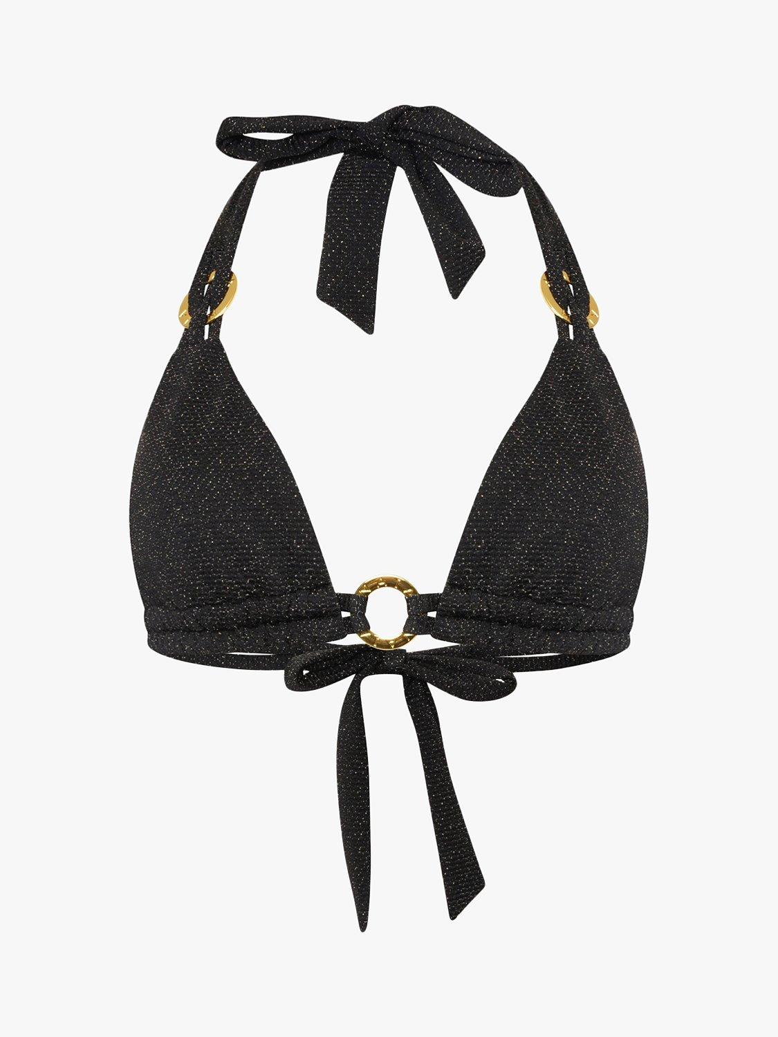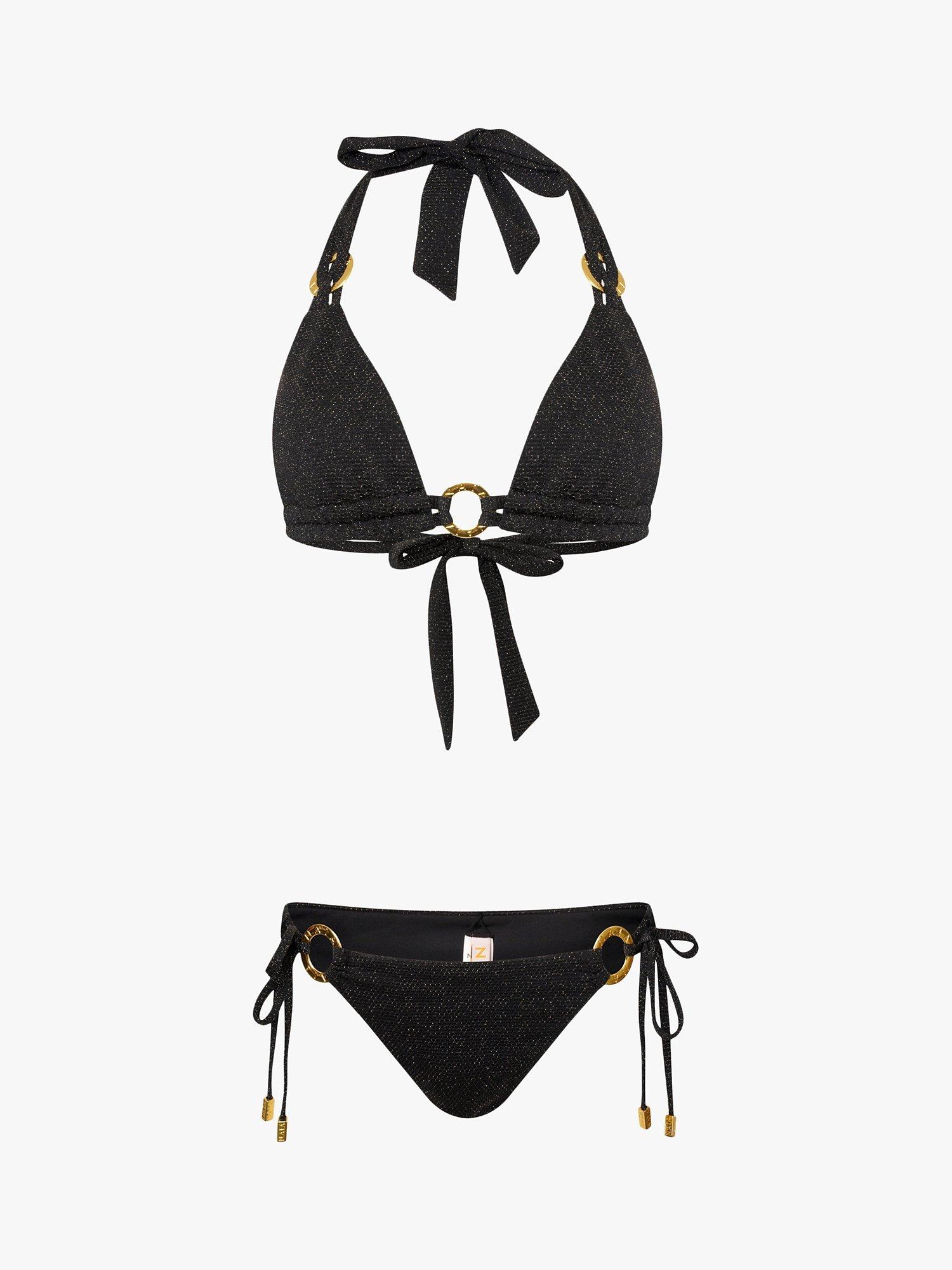 Sparkle under the sun in this stunning Ursula bikini. Subtle flecks of gold cover the style causing you to dazzle in the daylight and dance under the stars. The beautifully woven trims and double under-band provide that little bit of extra support, while the halter neck tie provides a flattering fit. Finished off with the statement NAIA branding.