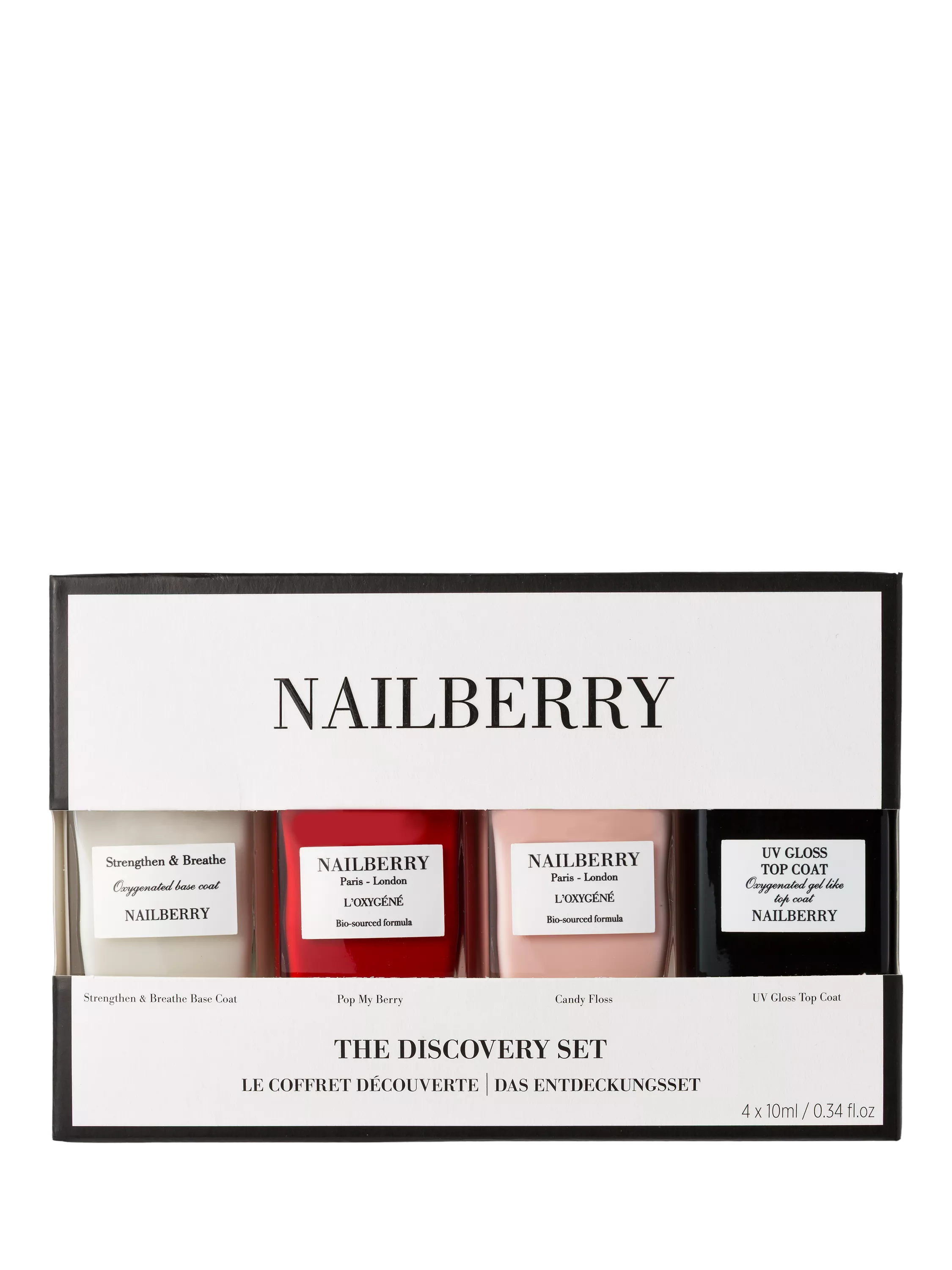 - Strengthen & Breathe Base Coat 10ml Candy Floss 10ml Pop My Berry 10ml Top Coat UV Gloss 10ml