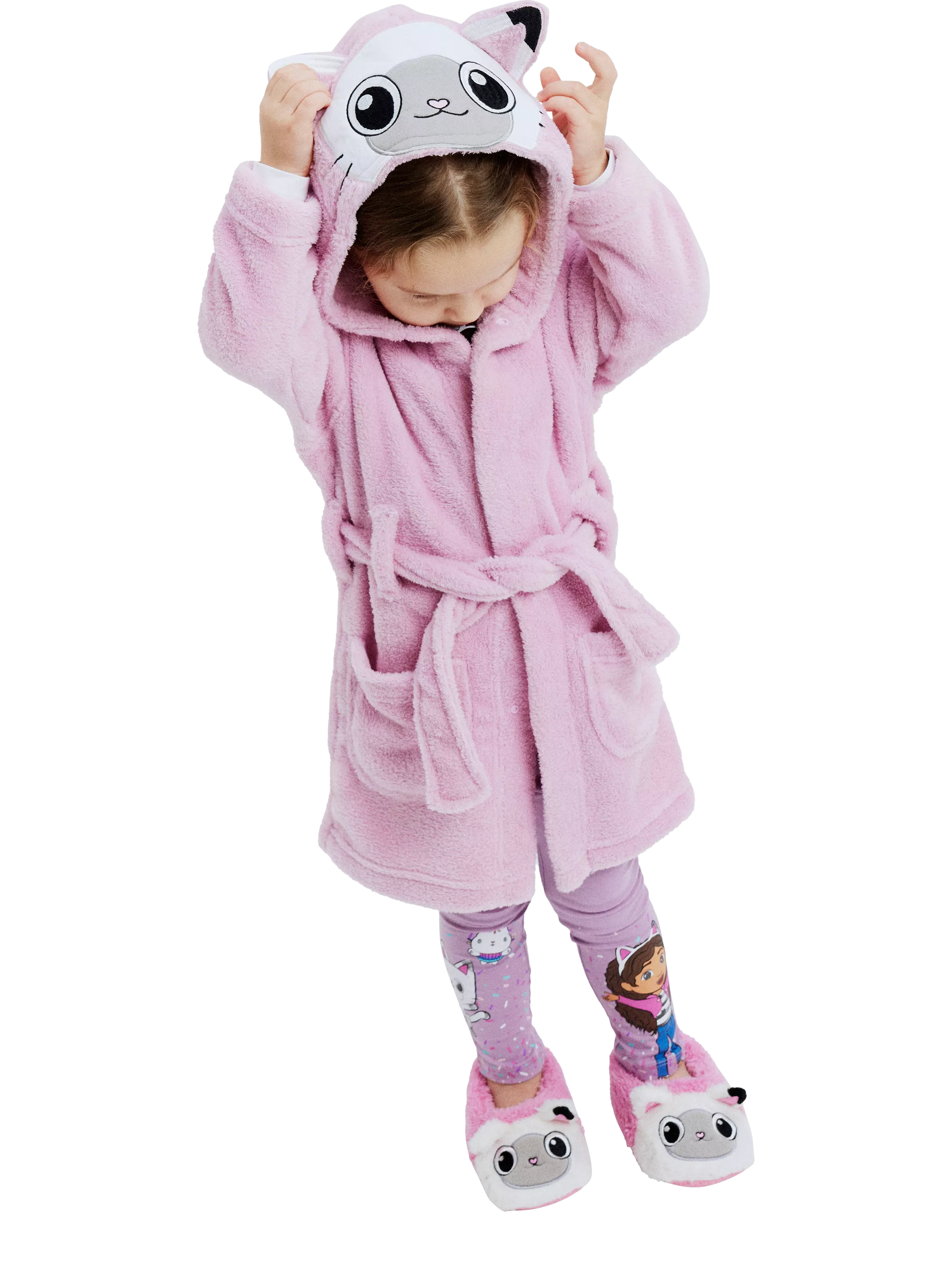 A cosy dressing gown with a novelty hood, tie belt and snap fastening.