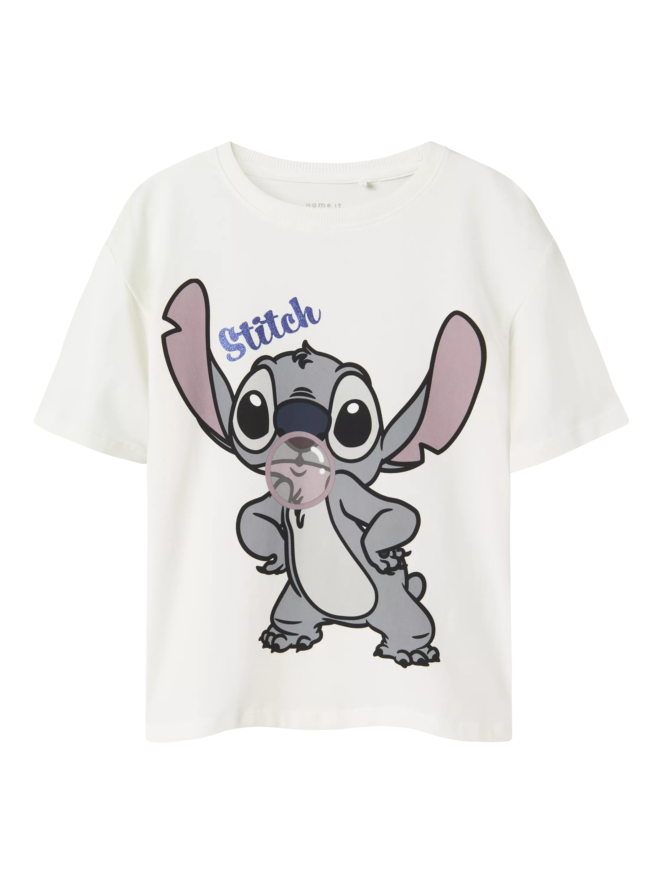 Give your child's wardrobe an update with This Disney Stitch top, perfect for everyday wear. It's Made from soft and stretchy jersey fabric with a rubber character print and glitter detail.