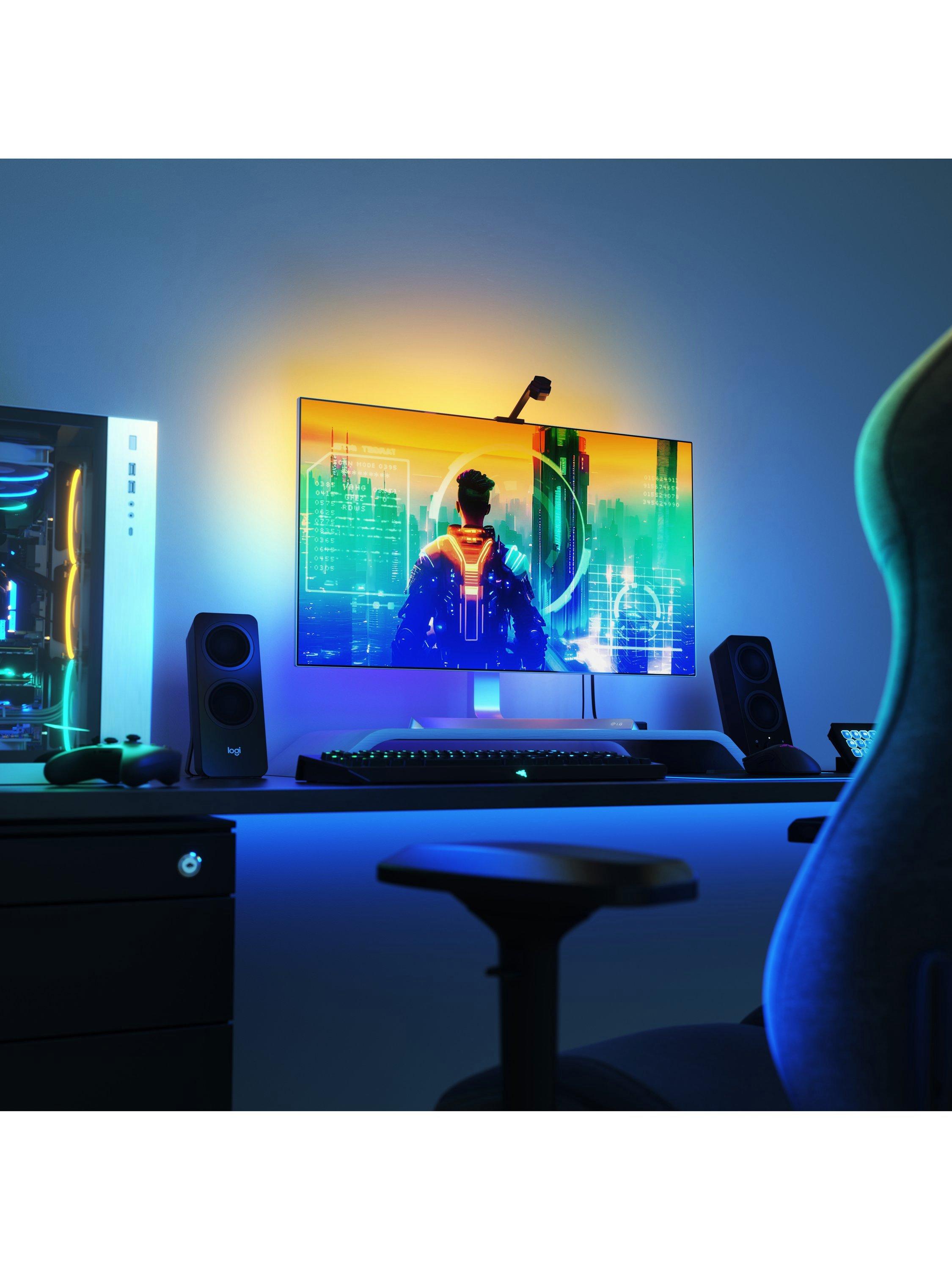 Take your entertainment beyond the screen. Nanoleaf 4D is a screen mirror camera kit that syncs the colours on your screen onto the addressable gradient LED light strip mounted behind it. Experience the ultra-immersive '4D' effect as the vibrant backlighting illuminates your space with the colours from your favourite shows, movies and video games.