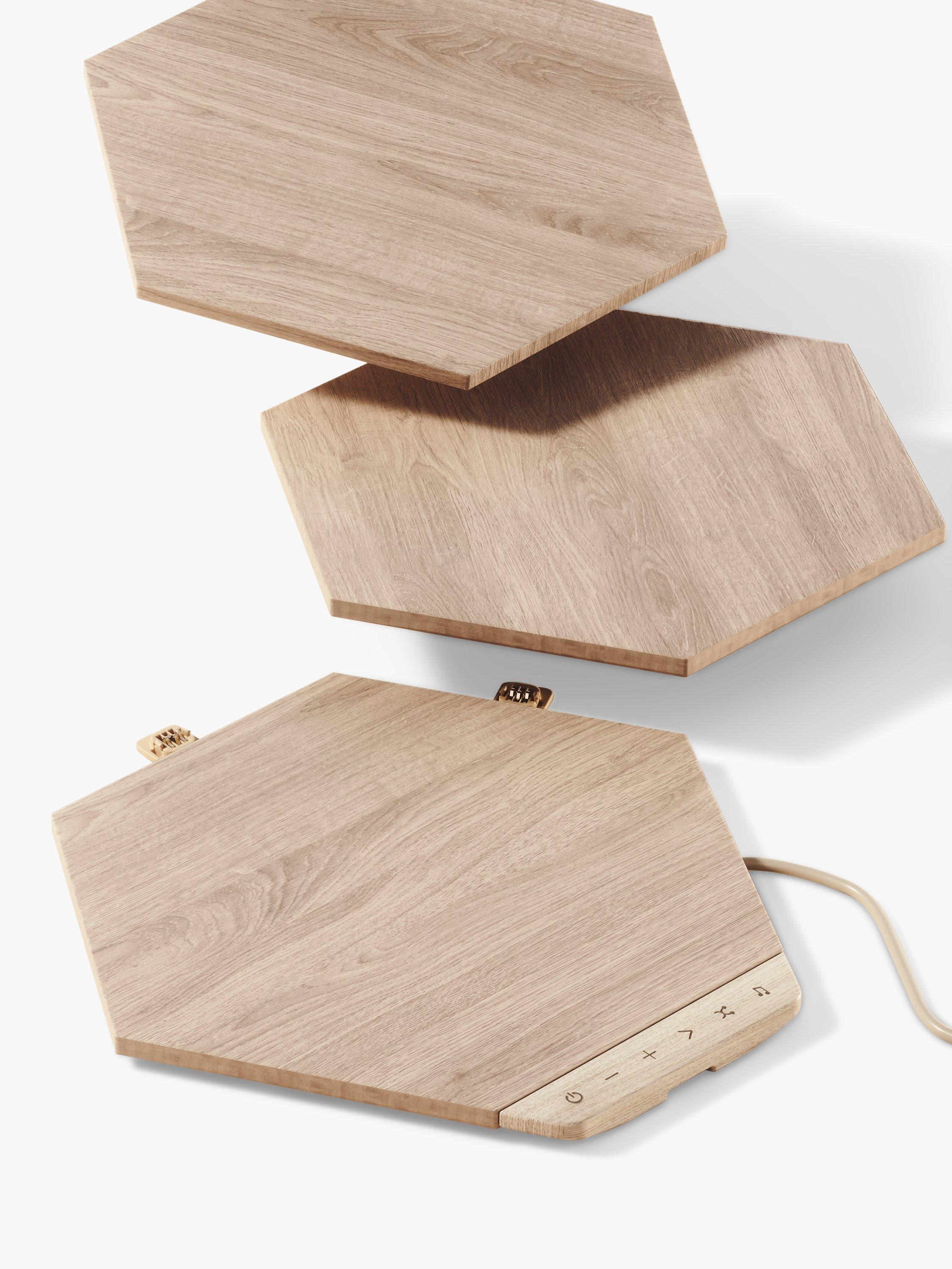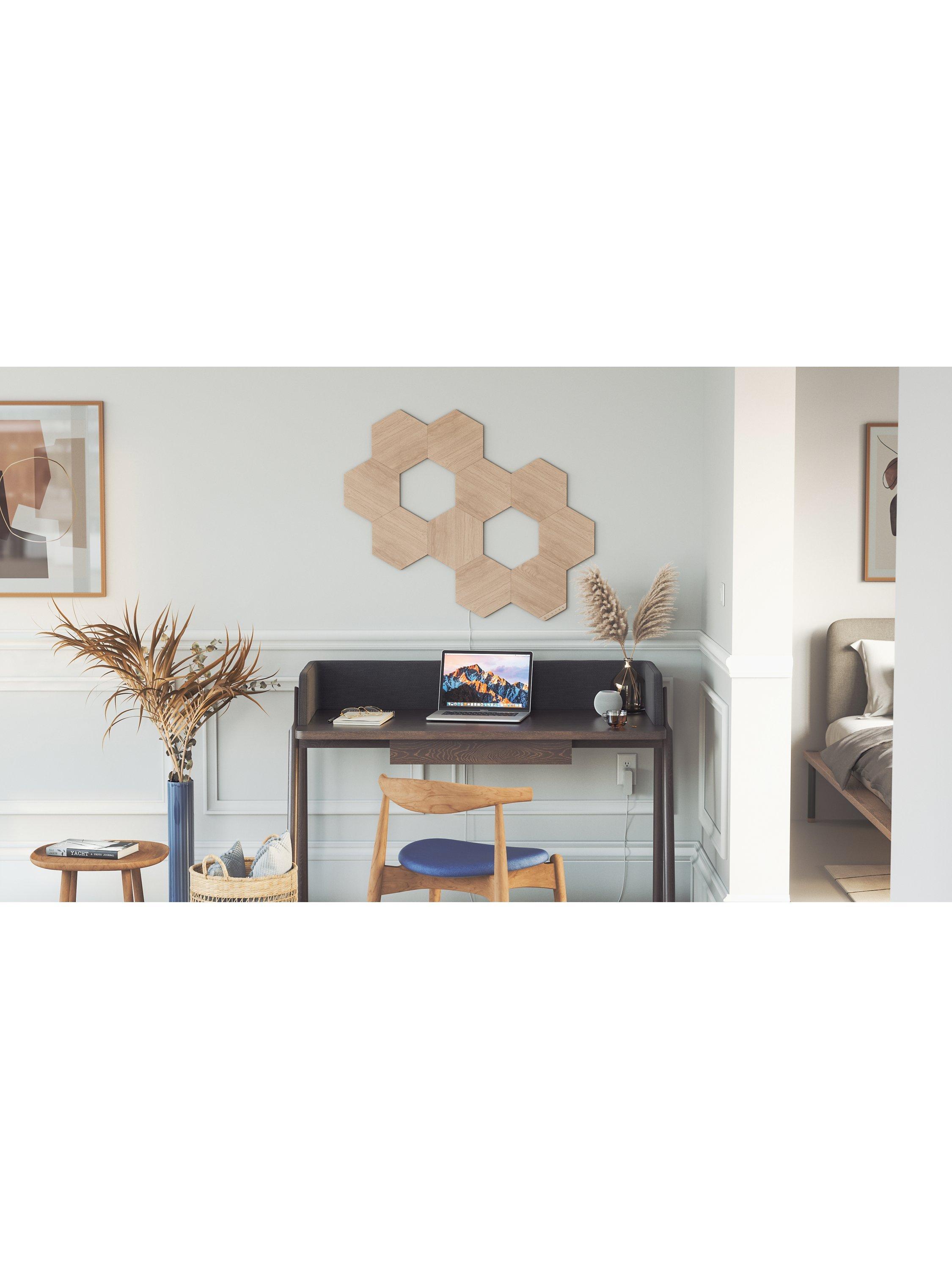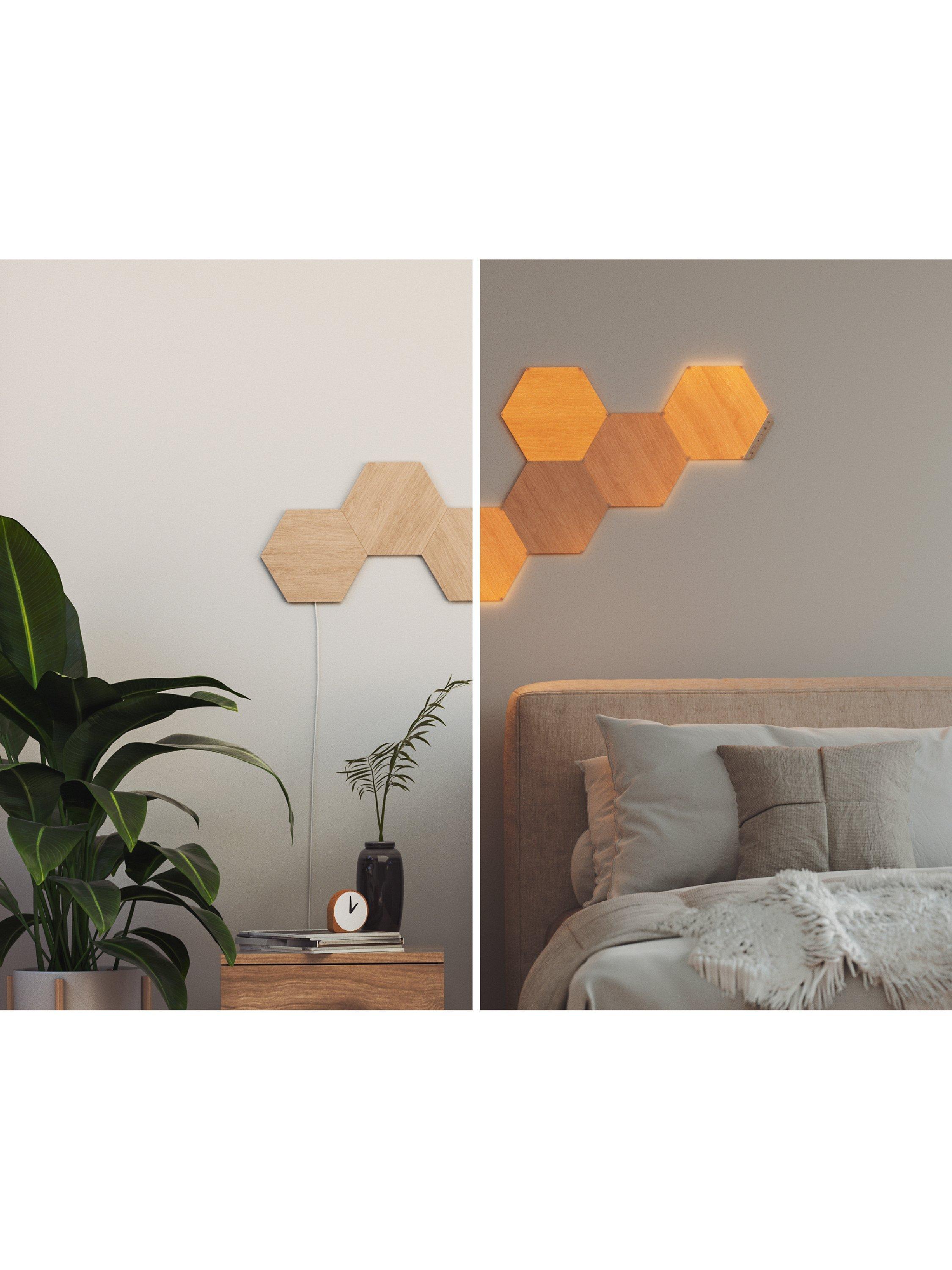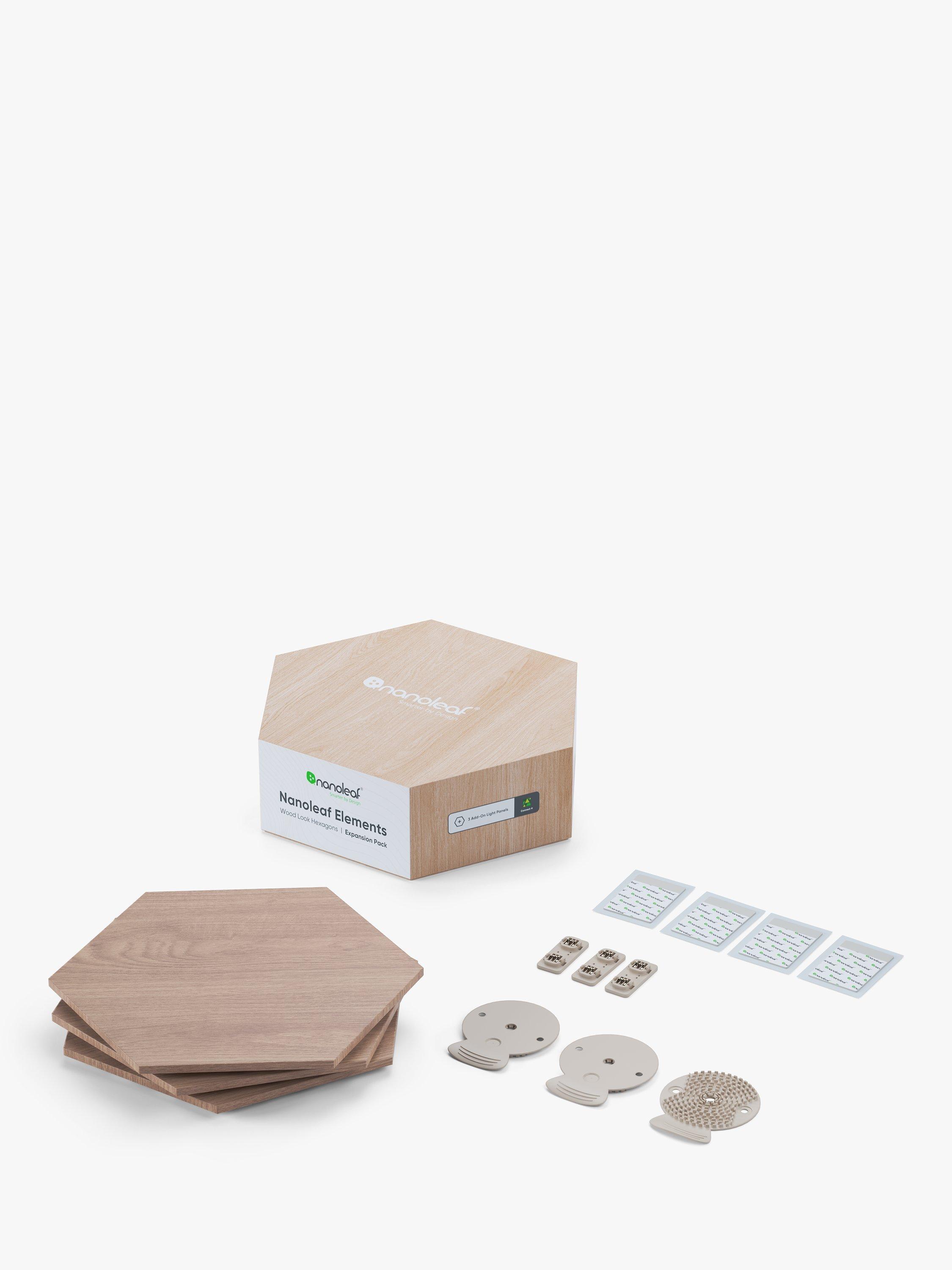 The Nanoleaf Elements Hexagons extension pack offers three additional wood-look, modular LED light panels to further enhance your space. Both beautiful wall art and customisable ambient lighting when it's on or off. Thanks to a combination of smart technology and sleek, ultra-thin design, they're easy to install and mount to the wall using the included adhesive mounting tape. Choose from a range of warm-to-cool lighting options to enhance your space with a natural glow and simply control it using the touch buttons, with additional smart customisations possible using the Nanoleaf App.